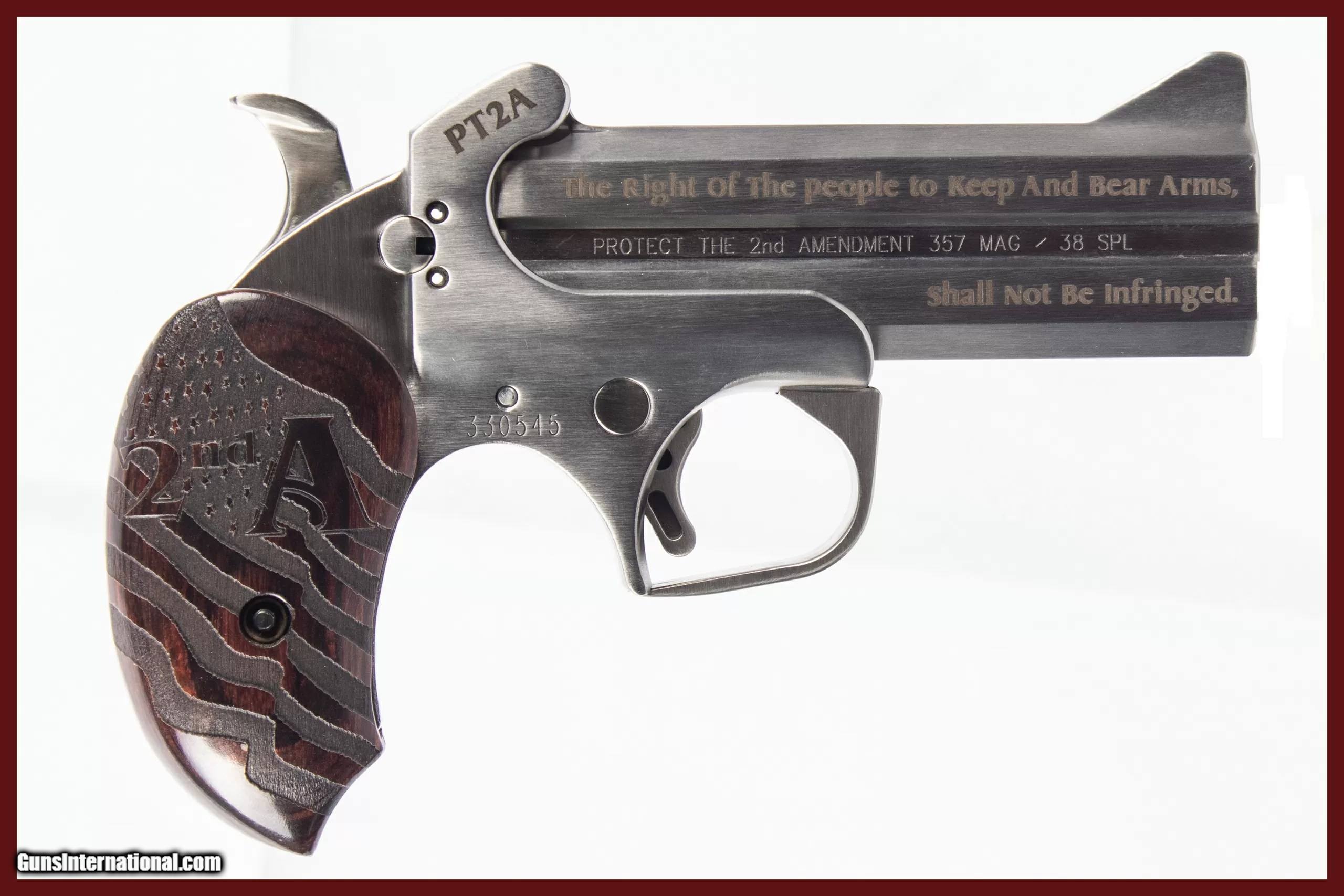 Description: Bond Arms PT2A chambered in 357 Magnum and 38 Special with a 4 inch barrel and a bright & shiny bore. The NRA grading condition for this USED firearm is Excellent. Dury's Lifetime Warranty: All firearms purchased from Dury’s Gun Shop, NEW or USED, are covered by a lifetime warranty. We will repair or replace, at our discretion, any firearm purchased from Dury’s Gun Shop, Inc. for as long as it is owned by the purchaser. This warranty is not transferable. WE BUY GUNS! NO COLLECTION TOO BIG OR SMALL FOR OUR GUNS INTERNATIONAL CUSTOMERS ALL OF OUR FIREARMS CAN BE PURCHASED DIRECTLY FROM OUR DURY'S GUNS SITE ! SOLD Manufacturer: Bond Arms Model: PT2A Caliber Info: 357 MAG Barrels: 4inches |