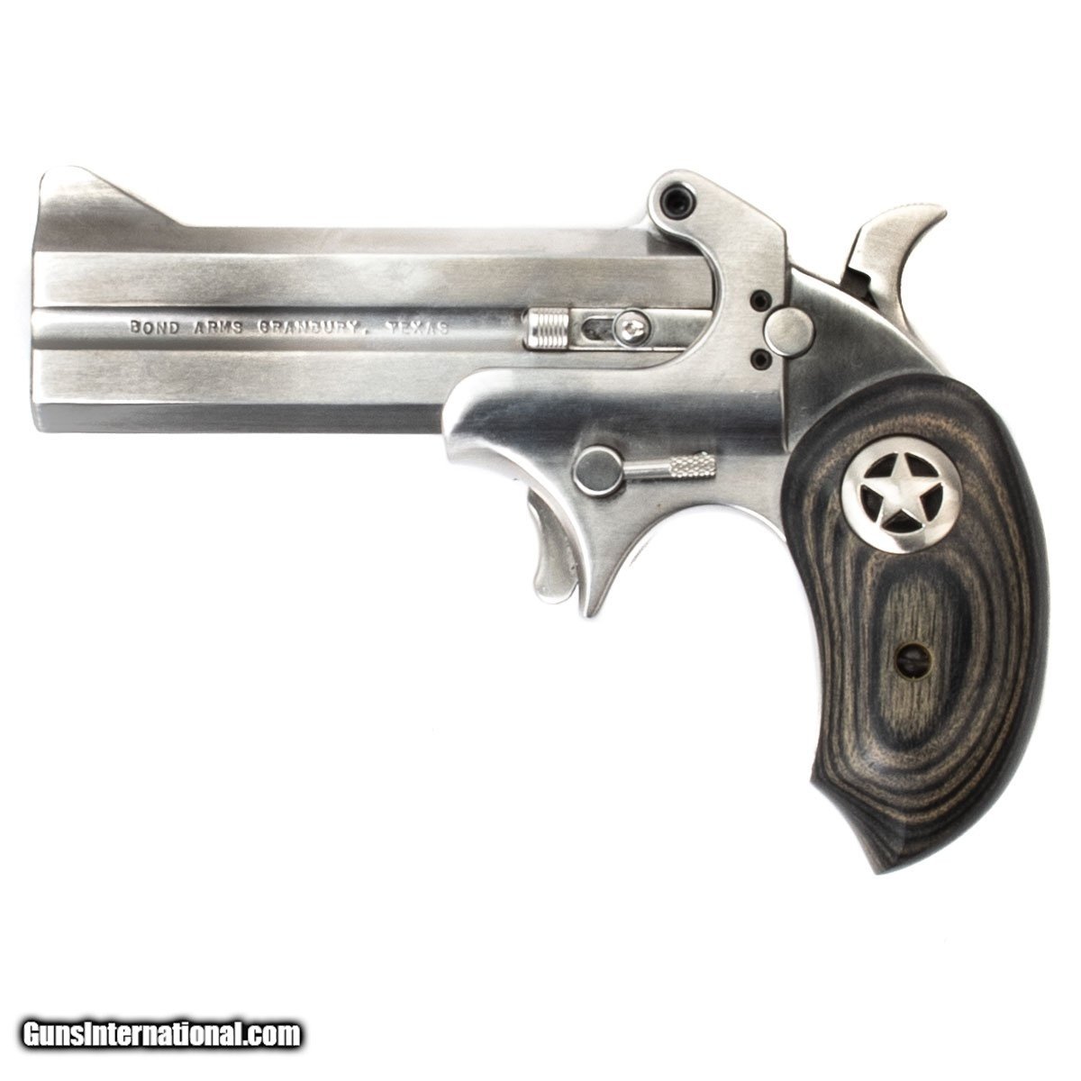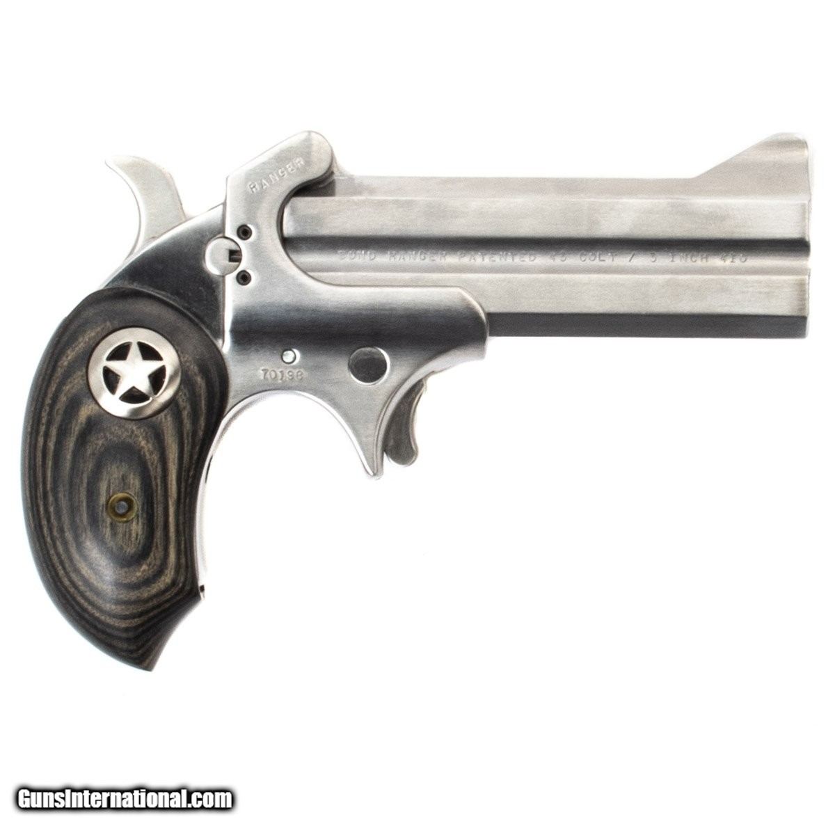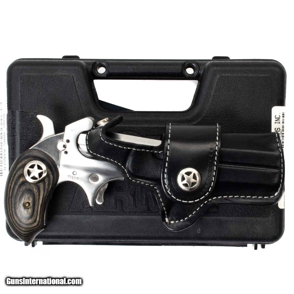 This Bond Arms Derringer comes with the original case, owner‚s manual, a safety, wooden grips, and a right hand OWB leather holster.