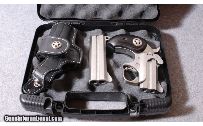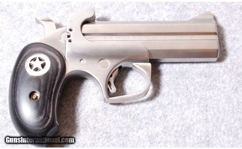 Description: Ranger II frame with a 2.5" .357/.38 and a 4.25" .45 colt / .410 barrel set. Along with the hard case is a Bond Arms Black holster.Nice little set. SOLD Caliber Info: .38/.357 Mag & .45 colt/.410 Metal Condition: Very Good Wood Condition: Very Good Bore Condition: Very Good Barrels: 2 barrels 2.5" & 4.25 Triggers: Factory Trigger Stock: Dark black laminate Weight: 1 lb. Sights: Blade and top strap groove Extras: 1 extra barrel,1holster, 1 hard case Item Location: Rapid City, SD |