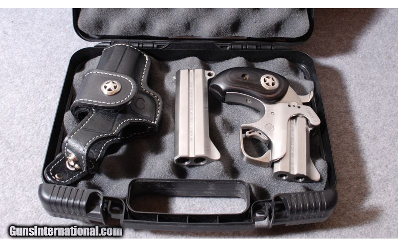 Description: Ranger II frame with a 2.5" .357/.38 and a 4.25" .45 colt / .410 barrel set. Along with the hard case is a Bond Arms Black holster. Nice little set. .357 Magnum SOLD Item Location: Rapid City, SD |