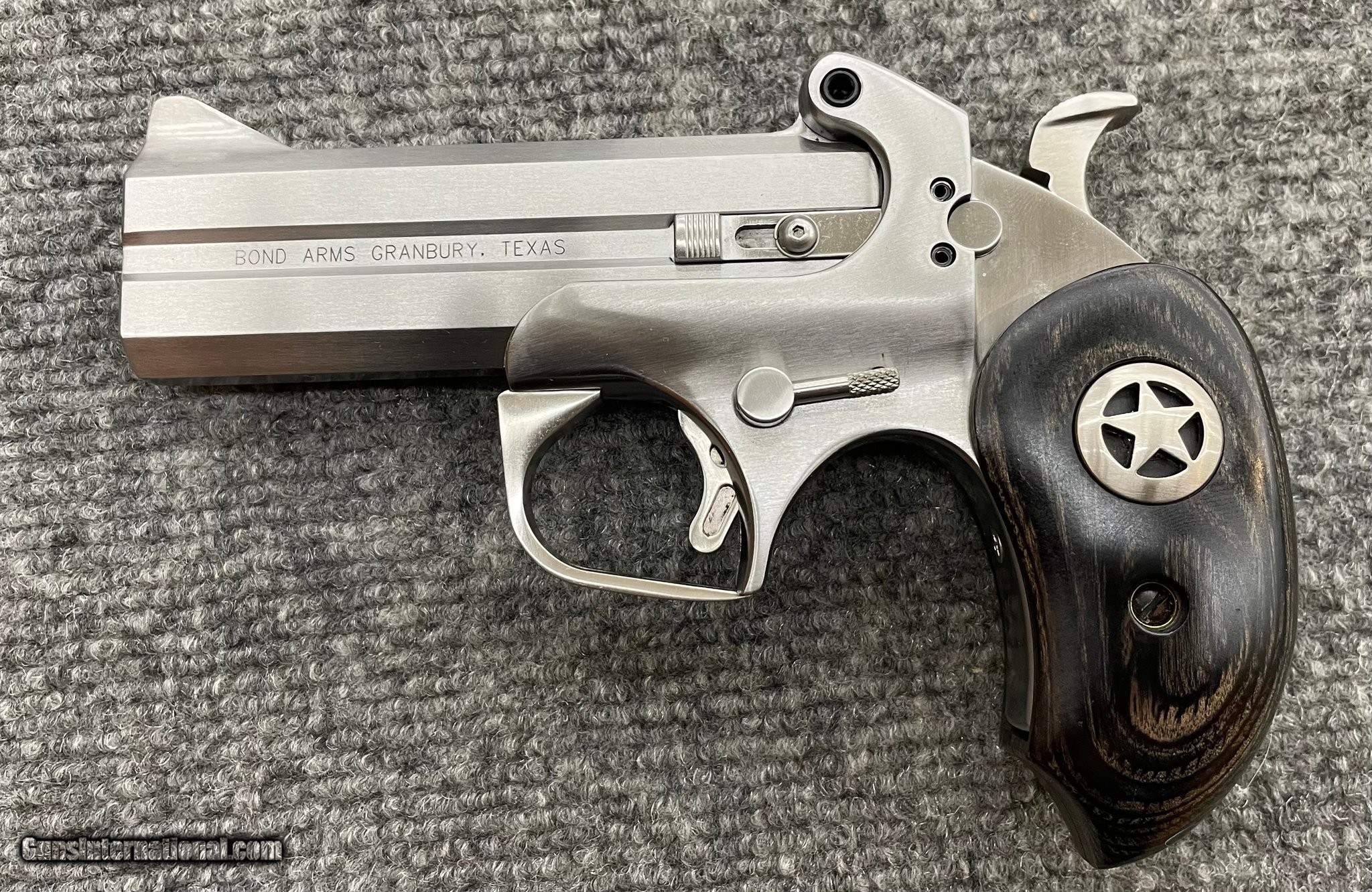 Description: Guns Listing ID: 608423 The Bond Arms Ranger II is a well-regarded, compact derringer praised for its solid build, interchangeable barrels (accepting various calibers like .45 Colt and .410 shotshells), and unique features like a removable trigger guard, extended grip, making it a fun, versatile, and potent close-range self-defense or backup firearm despite its small size. This firearm is exactly as it appears in the photos. This listing is for the Bond Arms Ranger II and case. Purchase with confidence today!!!! Manufacturer: BOND ARMS Model: RANGER II Caliber Info: .45 colt / .410 Condition: Used - Non-Certified Barrels: 4.25" BARREL Action: OVER/UNDER Finish: silver and walnut Price: $549.99 Contact Seller |