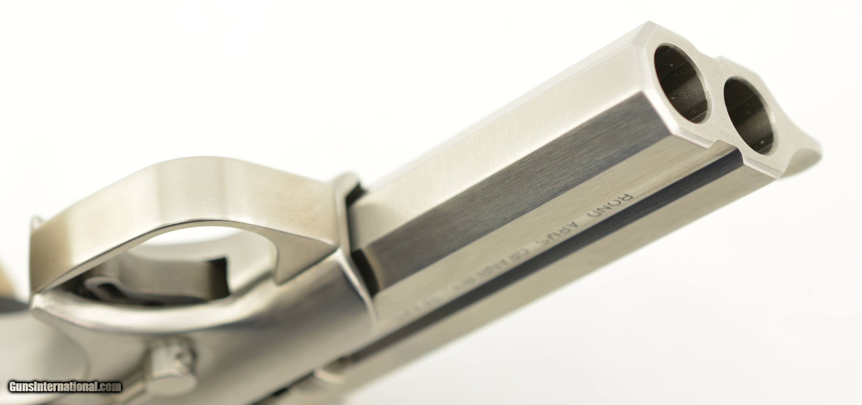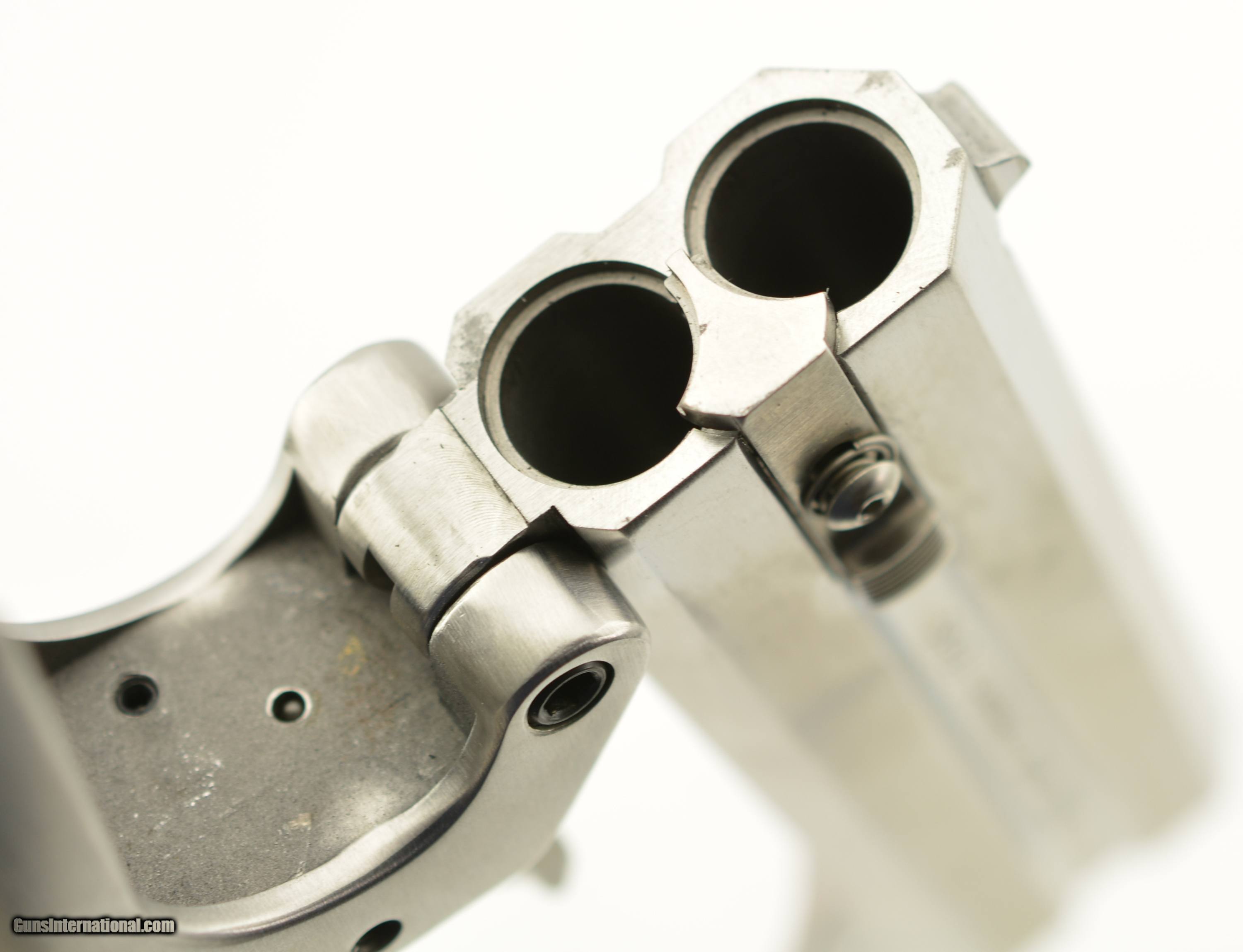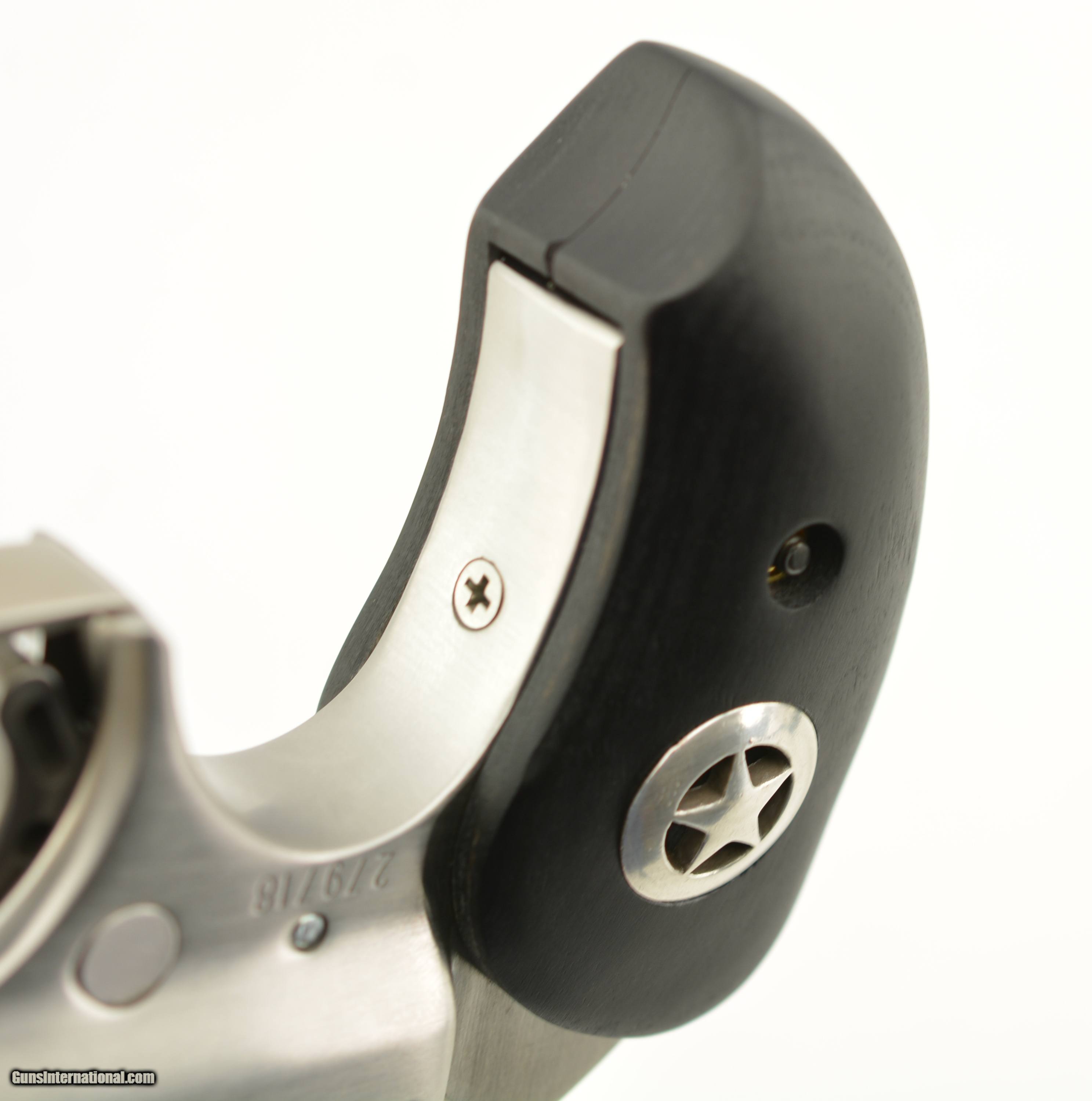 Description: Serial #279718, .45 Colt / .410 (3 inch), 4 ¼ inch barrels with bright, excellent bores. This is the Ranger II model over/under Derringer manufactured by Bond Arms in Granbury, Texas featuring Sheriff Star grips and polished stainless trigger guard. The gun is in excellent condition retaining virtually all, 98-99% of the original polished steel frame and barrels with light use marks. The hardwood grips with inlay star shield are likewise excellent. FFL SOLD Manufacturer: Bond Arms Model: Derringer Caliber Info: .45 Colt / .410 Gauge Info: .45 Colt / .410 |