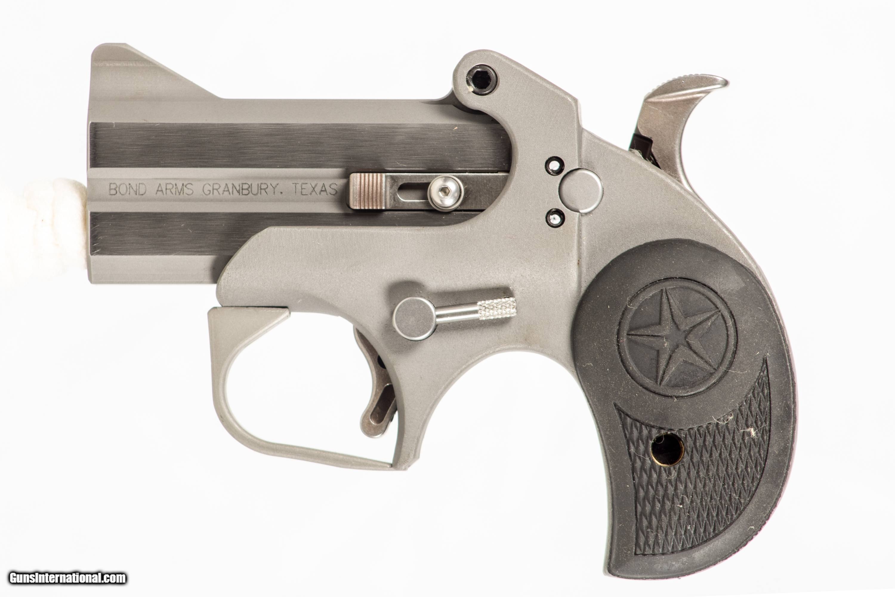 Bond Arms Rough n Rowdy chambered in 45 Colt/410 Gauge with 3 inch barrels and bright & shiny bores. This gun is in excellent condition and is covered by Dury's Lifetime Warranty.