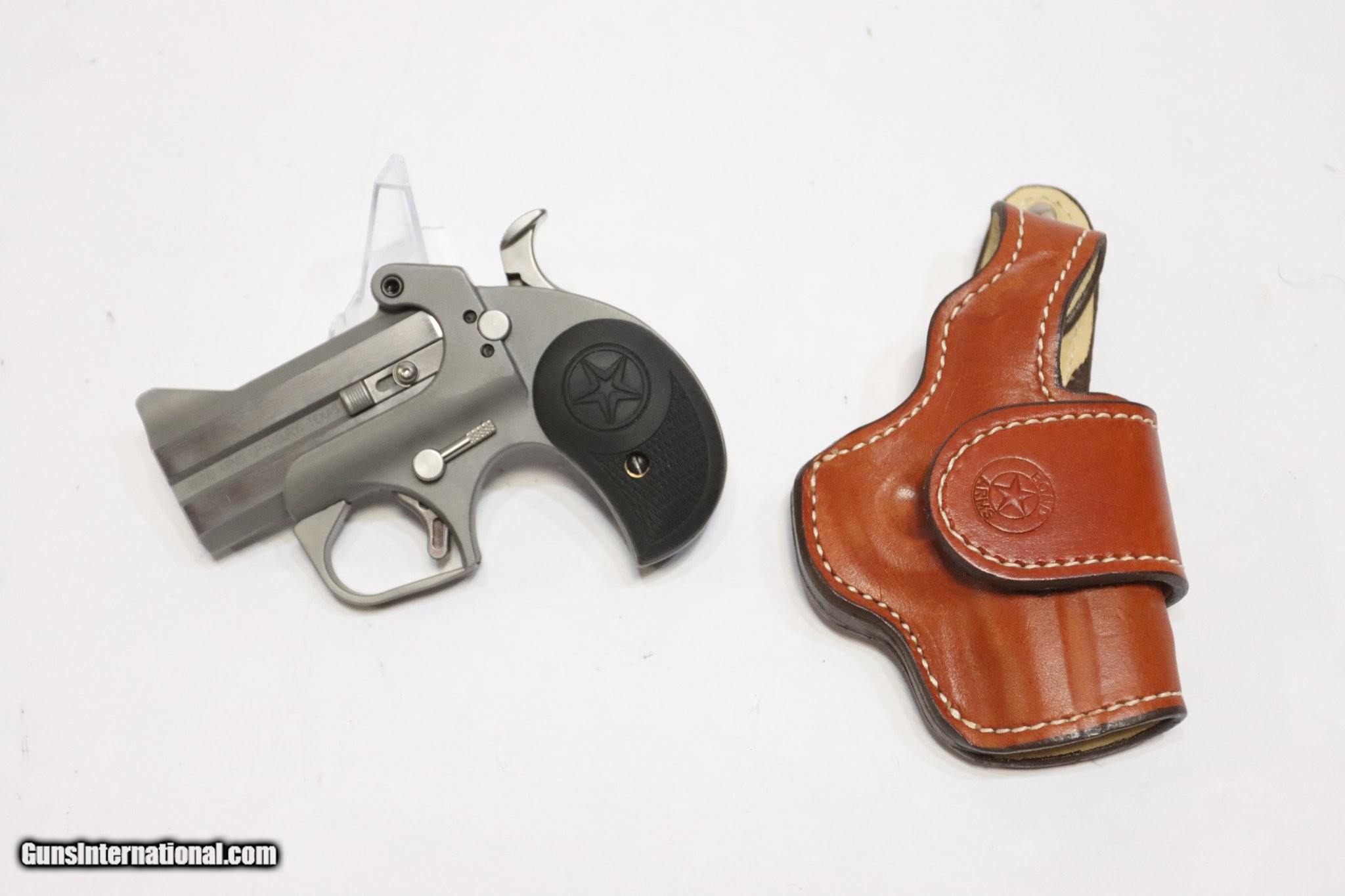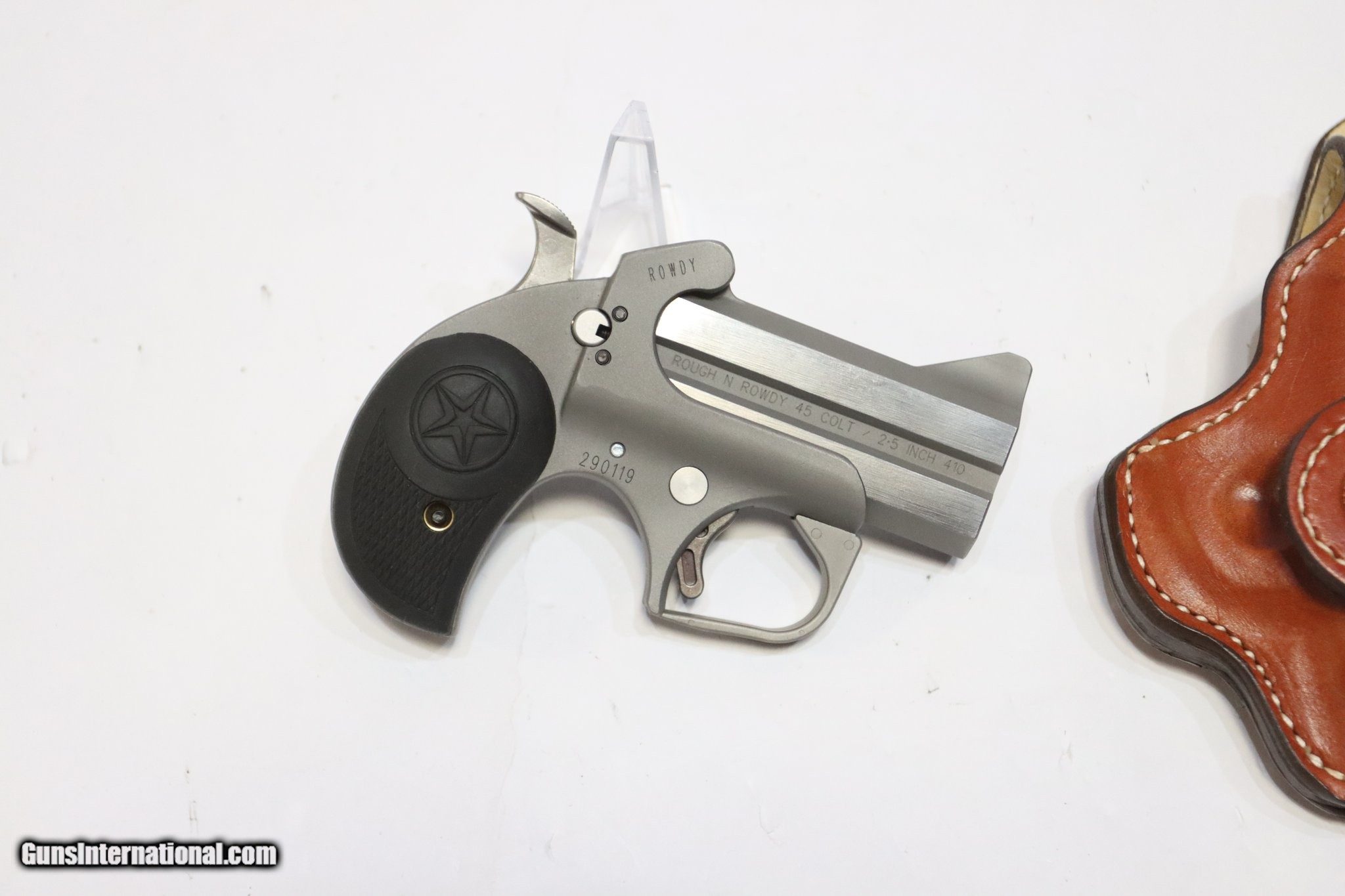Description: Guns Listing ID: 595083 A compact, double-barrel derringer-style pistol built from stainless steel, the Rough n’ Rowdy features Bond Arms’ rugged “Rough Series" finish for durability and affordability. It offers interchangeable barrels, a rebounding hammer, and cross-bolt safety, making it a sturdy, no-nonsense option for close-range defensive carry. Manufacturer: BOND ARMS Model: ROUGH N ROWDY Caliber Info: .45 LC Condition: Used - Non-Certified Barrels: 2" BARREL Action: SEMI AUTOMATIC Finish: black & stainless Price: $299.99 Contact Seller |