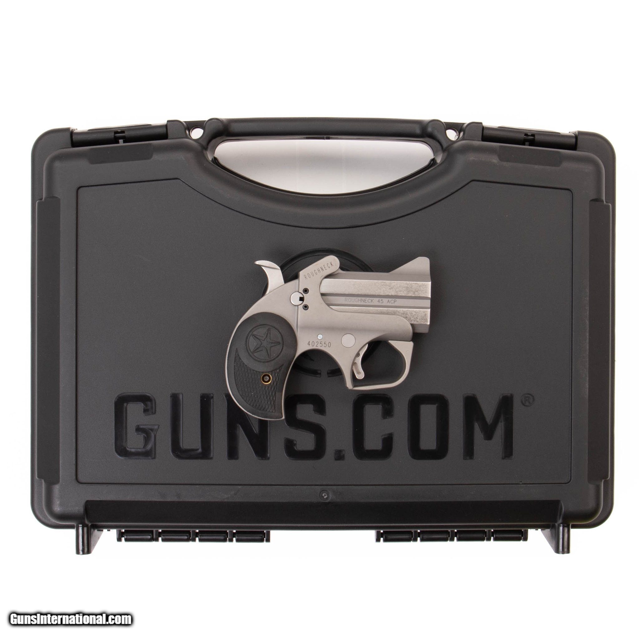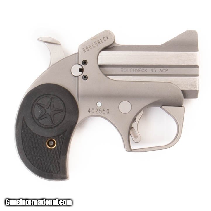 Description: Guns Listing ID: 486573 This Bond Arms Roughneck is in excellent condition! It shows only normal wear and blemishes. The owner‚‚s manual is included. Get the best bang for your buck when you get a Certified Used Firearm . When you see the Certified Used stamp on any of our firearms, you can be confident that you‚‚re getting exactly what you want – a gun only in very good to excellent condition and held to the highest quality standard. All Certified Used Guns come with a ‚‚no questions asked‚‚ return policy . PLUS, ALL CERTIFIED USED GUNS SHIP F SOLD Manufacturer: BOND ARMS Model: ROUGHNECK Caliber Info: .45 ACP Condition: Used - Certified Barrels: 2.50 Action: OVER/UNDER Finish: matte stainless Weight: 1.2 |