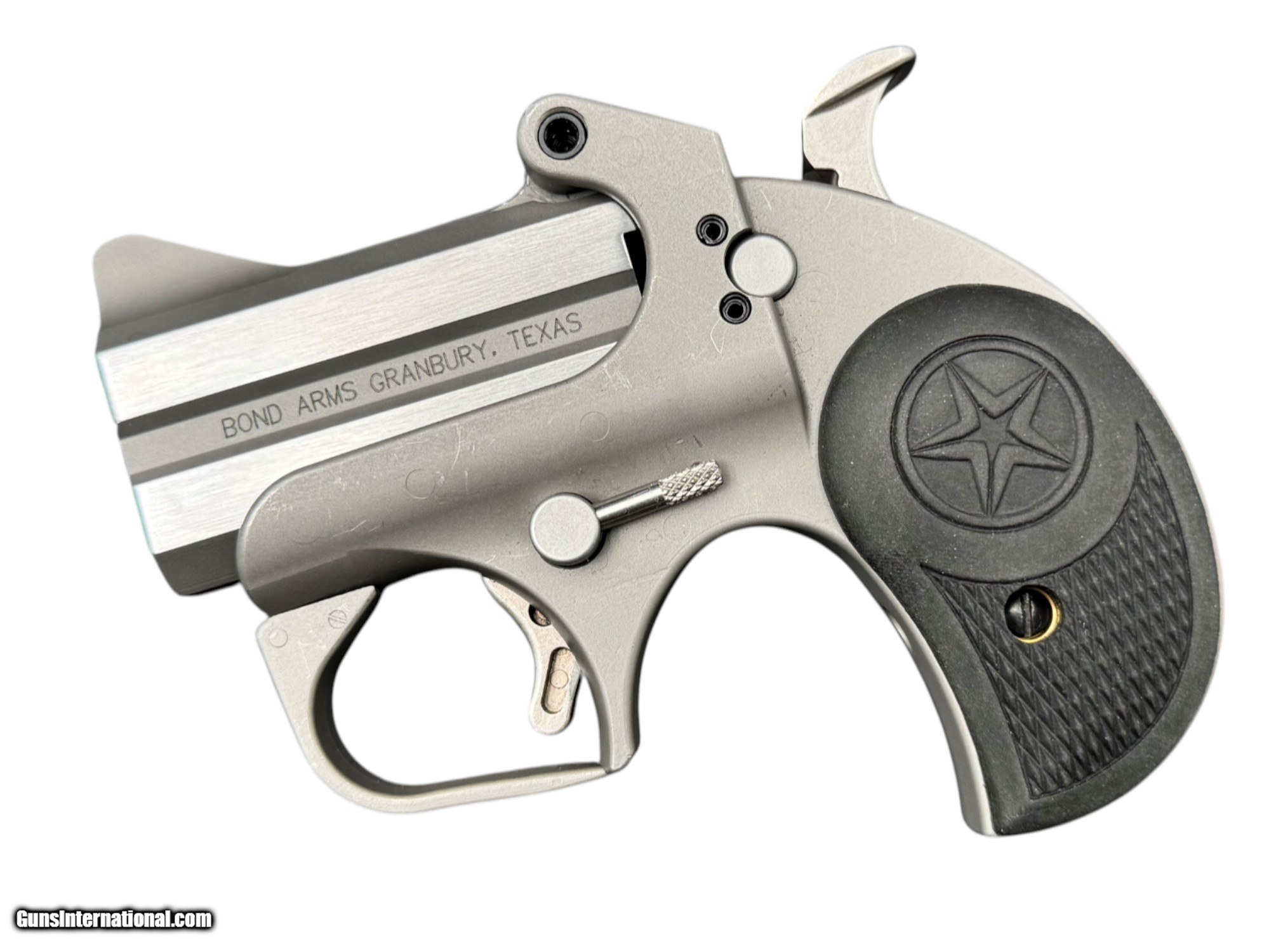 Description: Guns Listing ID: 551457 Bond Arms Roughneck – .45 ACP – 2\" Barrel – No Box Small frame, big bite. The Bond Arms Roughneck is a no-nonsense double-barrel pistol chambered in .45 ACP — designed for close-range confidence with a heavy-hitting attitude. Built from stainless steel, this compact bruiser features a 2\" barrel and break-action simplicity with a single-action trigger. Caliber: .45 ACP Barrel Length: 2\" Capacity: 2 Rounds Includes: Firearm only, no box Condition: Good – Shows light use, fully functional Ideal for deep carry or backup with a punch far above its weight class. SOLD Manufacturer: BOND ARMS Model: ROUGHNECK Caliber Info: .45 ACP Condition: Used - Non-Certified Barrels: 2 BARREL Action: OVER/UNDER Finish: black & stainless |