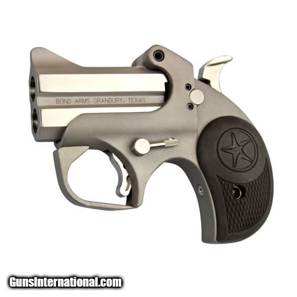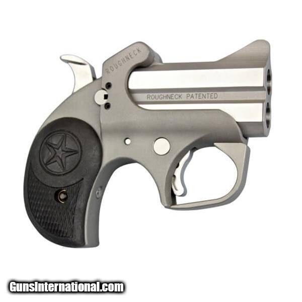 Description: Manufacturer: Bond Arms Inc. Model: Roughneck Derringer SKU: BEBARN35738 Caliber: .357 Mag / .38 Special Barrel Length: 2.5" Capacity: 2 Rounds Material: Stainless Steel Finish: Matte Stainless Grips: Black Rubber Sights: Blade Front, Fixed Rear Overall Length: 4.5" Weight: 19 oz The compact, yet rough-looking, Roughneck is a new type of Bond Arm gun. It’s built with a 2.5" barrel chambered for 9mm, 357/38 or 45ACP. Works best with smoothed lined holsters. Features: