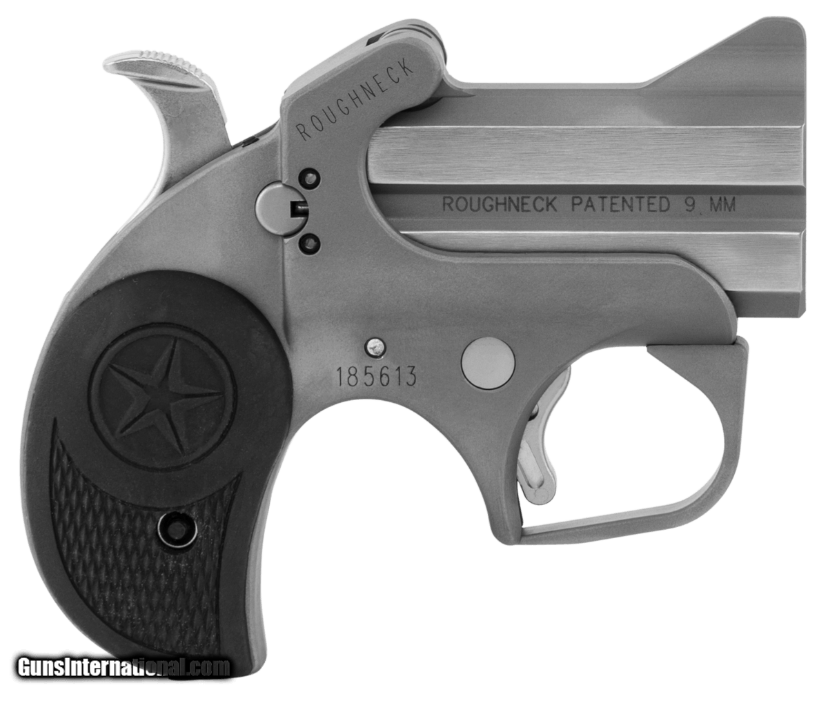 Description: Guns Listing ID: 25029 Roughneck is compatible with all standard Bond Arms barrels for easy caliber conversions. The pistol has stainless steel double-barrel and frame, the barrels and trigger are polished and the frame is sand blasted. Features- patented rebounding hammer, retracting firing pins, cross-bolt safety and spring-loaded, cammed locking lever. SOLD Manufacturer: BOND ARMS Model: ROUGHNECK Caliber Info: 9MM LUGER (9X19 PARA) Condition: new Barrels: 2.5 BARREL |