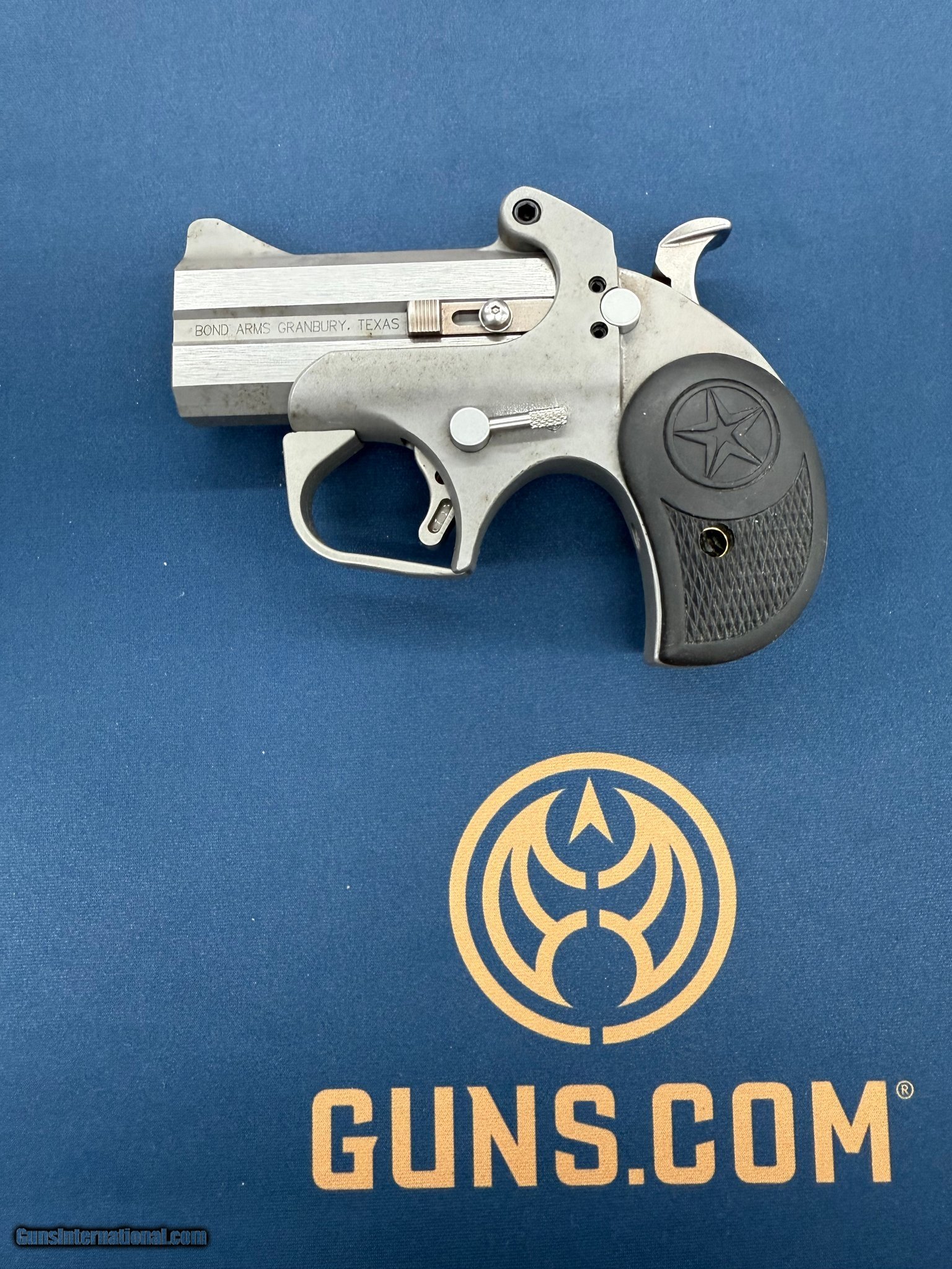 Description: Guns Listing ID: 525621 Bond Arms Rowdy 45/410 derringer in good condition. Comes with original box. SOLD Manufacturer: BOND ARMS Model: ROWDY Caliber Info: .45 LC/.410 GA Condition: Used - Non-Certified Barrels: 3 BARREL Action: OVER/UNDER Weight: 1.4 LBS. |