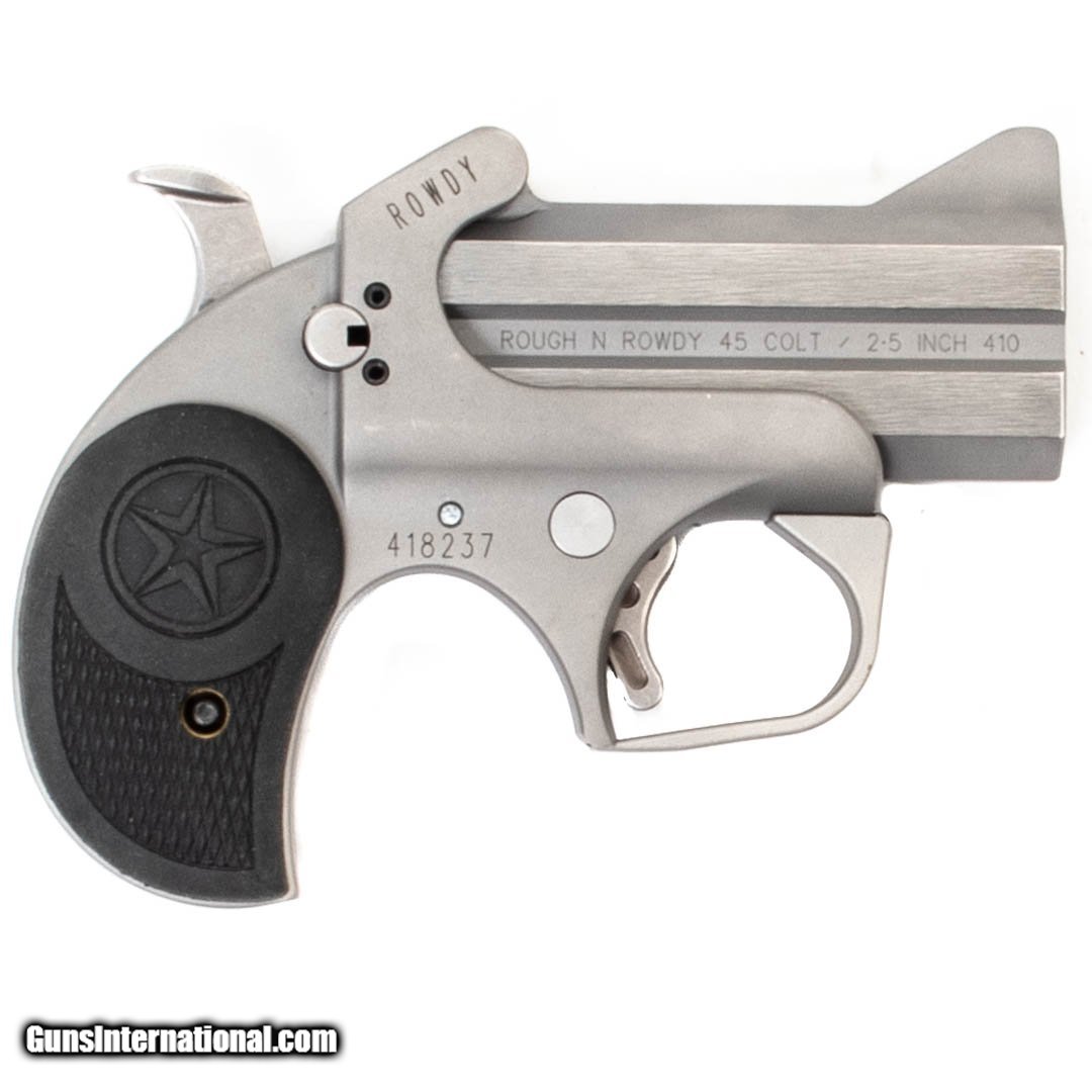 Description: Guns Listing ID: 532129 This Bond Arms Derringer comes with the original box, owner‚‚s manual, integrated sights and extractors only. Get the best bang for your buck when you get a Certified Used Firearm . When you see the Certified Used stamp on any of our firearms, you can be confident that you’re getting exactly what you want – a gun only in very good to excellent condition and held to the highest quality standard. All Certified Used Guns come with a ‘no questions asked’ return policy . PLUS, ALL CERTIFIED USED GUNS SHIP FREE SOLD Manufacturer: BOND ARMS Model: ROWDY Caliber Info: .45 LC/.410 GA Condition: Used - Certified Barrels: 3.00 Action: OVER/UNDER Finish: stainless Weight: 1.2 |