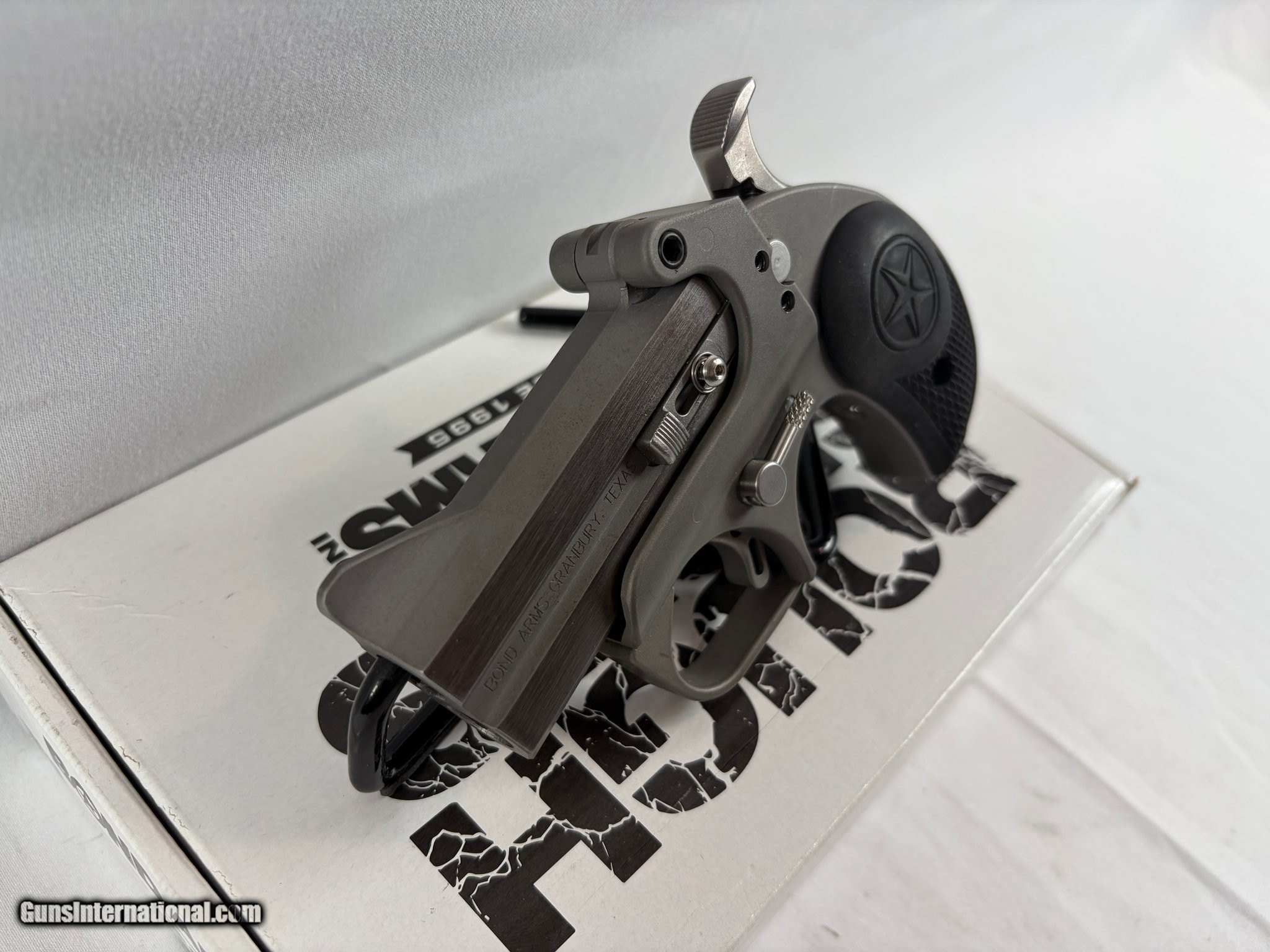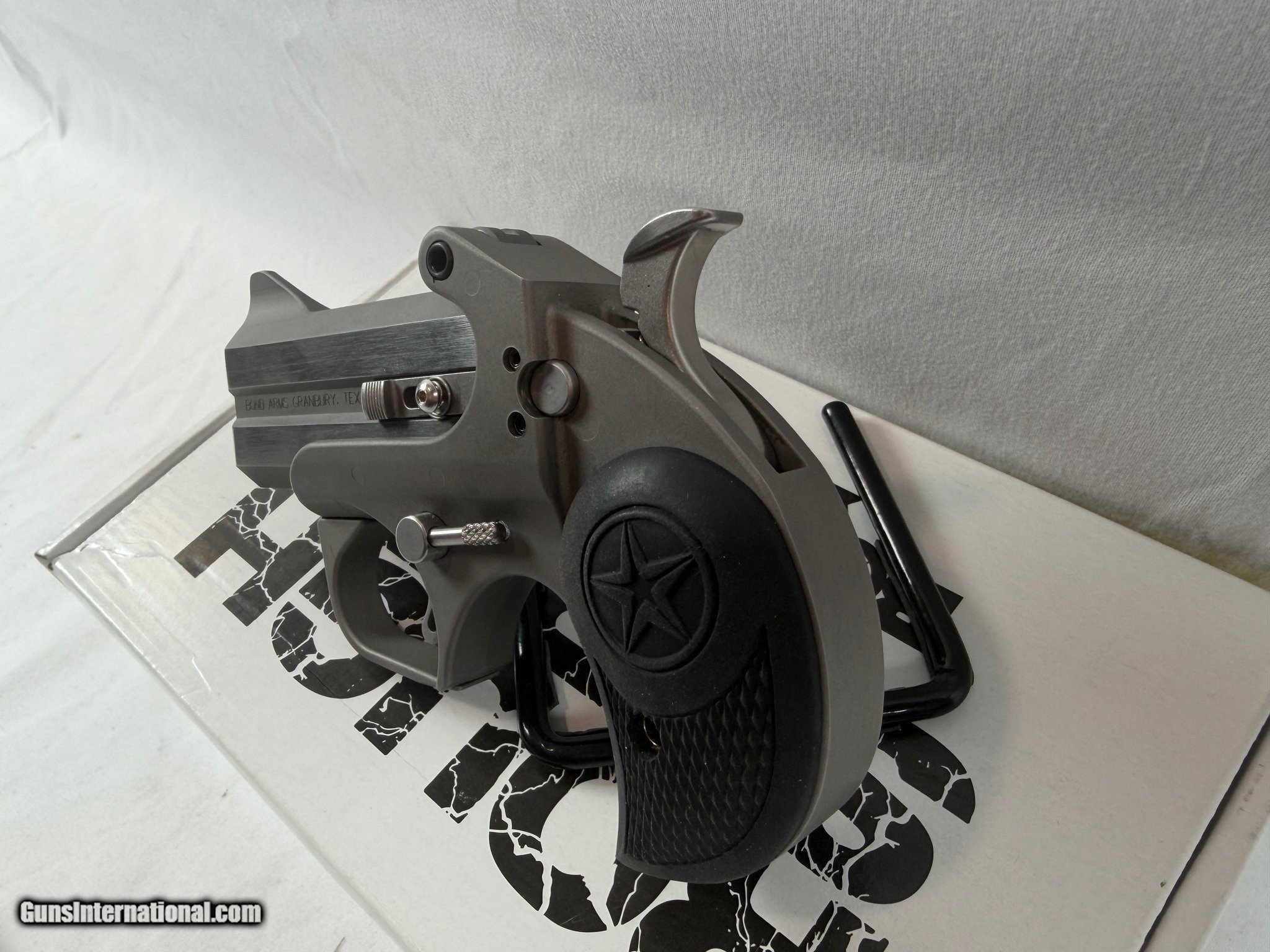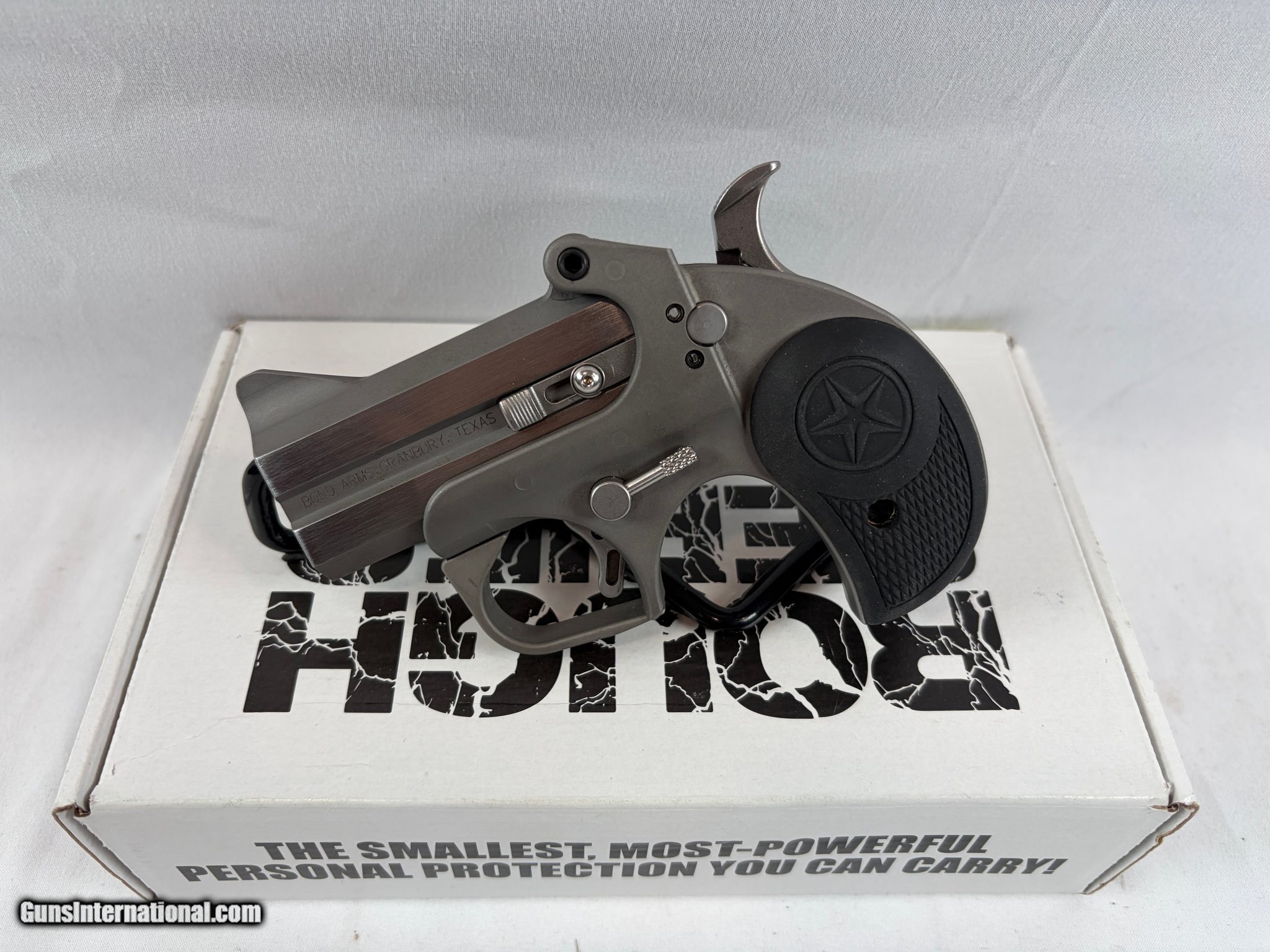 Description: Guns Listing ID: 608486 Bond Arms Rowdy – .45 LC / .410 GA – Very Good Condition Description: Offered here is a Bond Arms Rowdy chambered for .45 Long Colt / .410 bore. This compact derringer is built with Bond Arms’ legendary stainless steel construction and is designed for reliability, durability, and simple defensive use. The Rowdy features a 3\" barrel, a rugged double-barrel break-action design, and a comfortable grip that provides solid control despite its compact size. It’s a popular choice for those looking for a unique, ultra-compact firearm with big-bore capability. Features: Chambered in .45 LC / .410 GA Double-barrel derringer design 3\" barrel Stainless steel construction Compact and rugged defensive platform Includes: Factory box Manufacturer: BOND ARMS Model: ROWDY Caliber Info: .45 LC/.410 GA Condition: Used - Non-Certified Barrels: 3" BARREL Action: OVER/UNDER Weight: 1.4 LBS. Price: $269.99 Contact Seller |