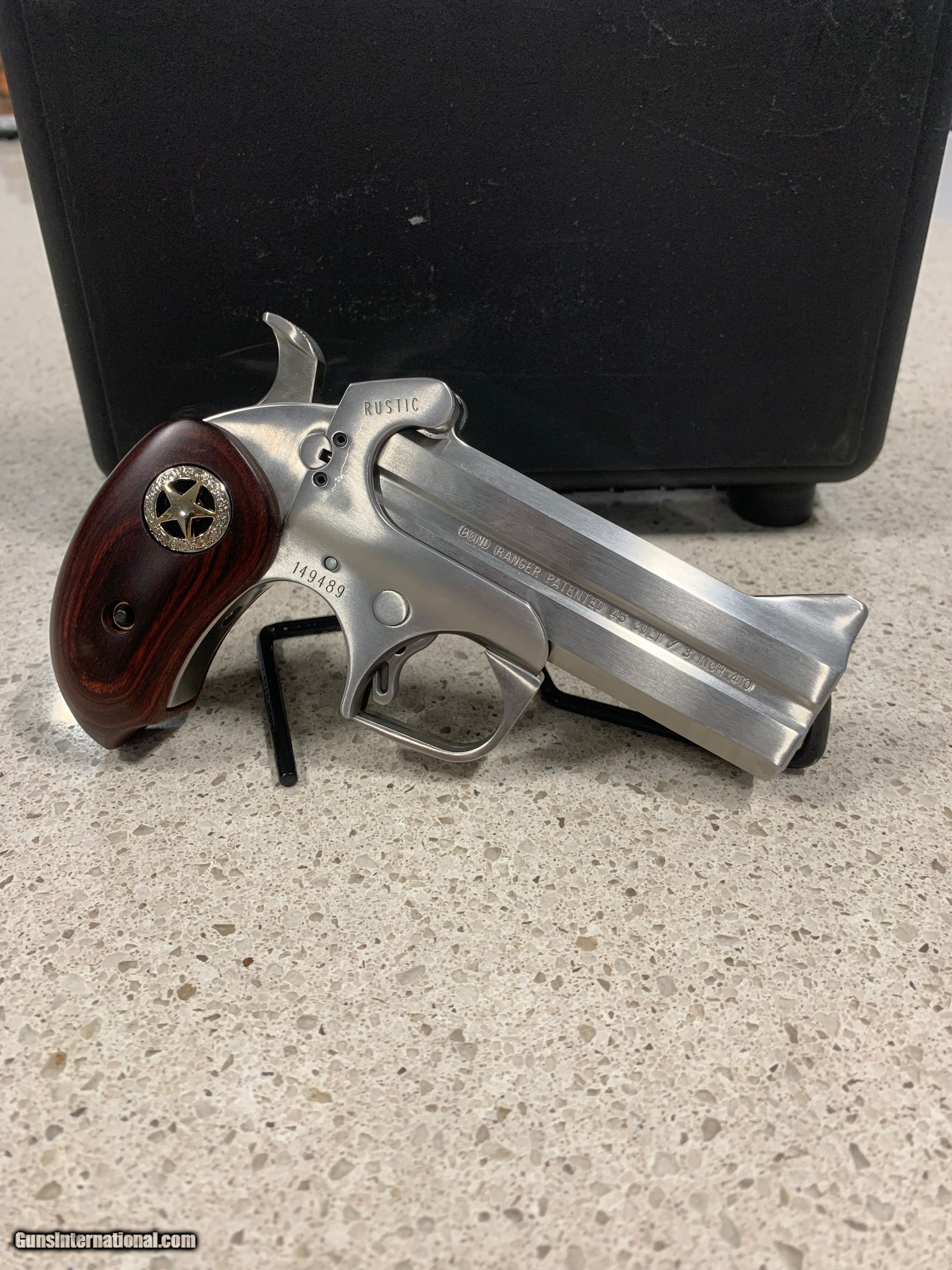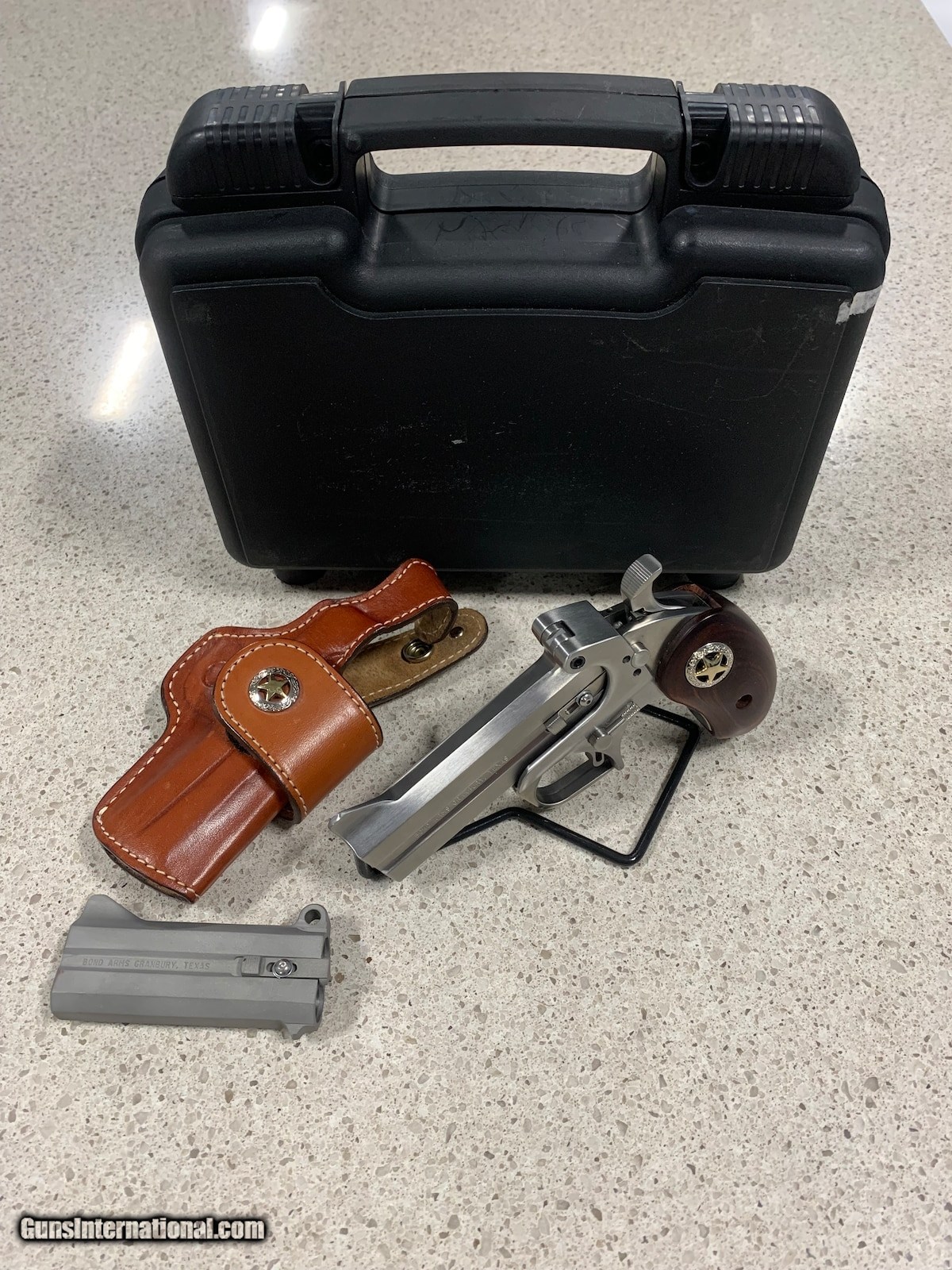 Description: Guns Listing ID: 517821 BOND ARMS RUSTIC RANGER WITH HARD CASE, SECOND BARREL, AND LEATHER HOLSTER. SOLD Manufacturer: BOND ARMS Model: Rustic Ranger Caliber Info: .45LC/410 GA Condition: Used - Non-Certified Barrels: 4.25" barrel Finish: STAINLESS |