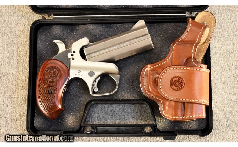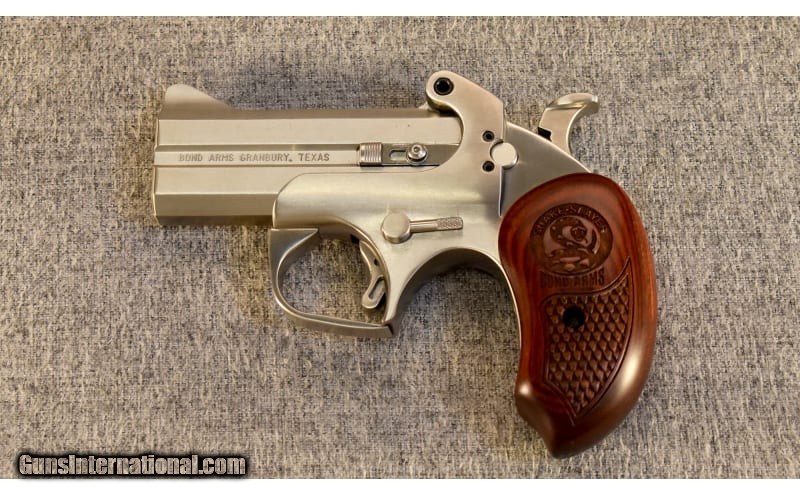 Description: This is a pre-owned Bond Arms Snake Slayer in .45 Colt/.410 gauge with the factory box and Bond Arms holster .45 Colt/.410 Bore SOLD Chambers: 3" .410 chamber Metal Condition: Very good with a few small scratches Wood Condition: Very good with a few small scratches Bore Condition: Clean with bright lands Barrels: 3.5 Triggers: SA Butt Pad: Checkered rosewood grips Weight: 1 lb. 4 Oz. Sights: "Ramp front, integral U-notch rear Item Location: Glendale, AZ |