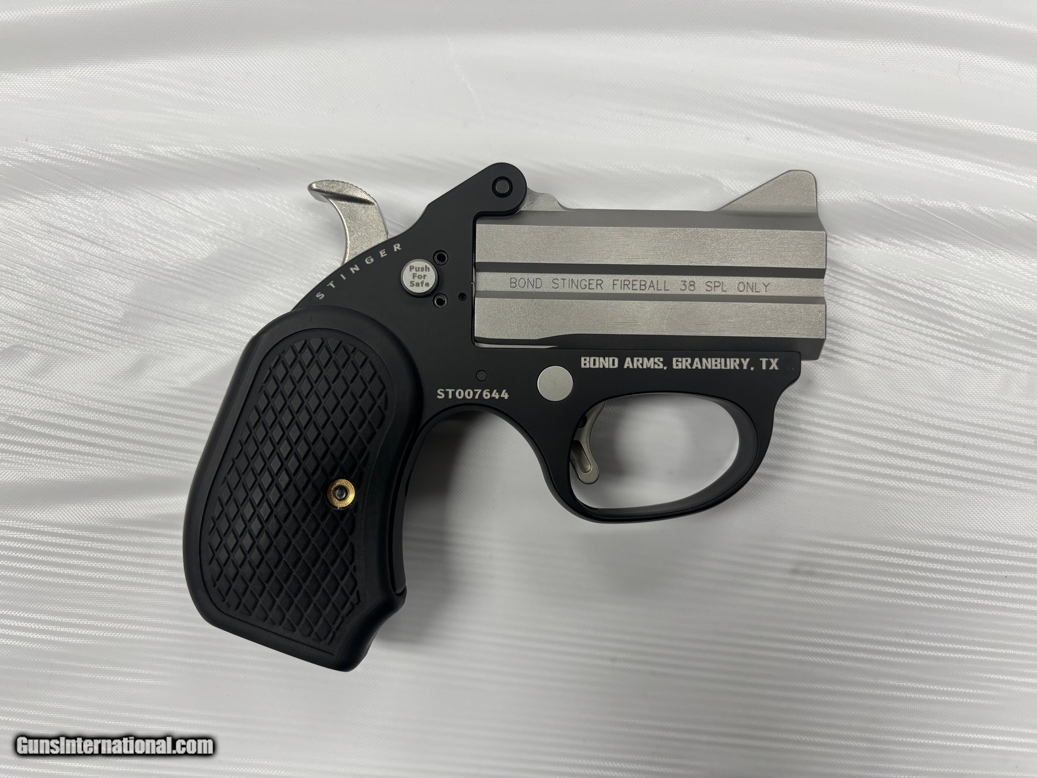 Description: Guns Listing ID: 501967 In very good condition, comes with a box, take a look at the pictures for reference! SOLD Manufacturer: BOND ARMS Model: STINGER FIREBALL Caliber Info: .38 SPL Condition: Used - Non-Certified Barrels: 3 Action: OVER/UNDER Finish: black and silver |