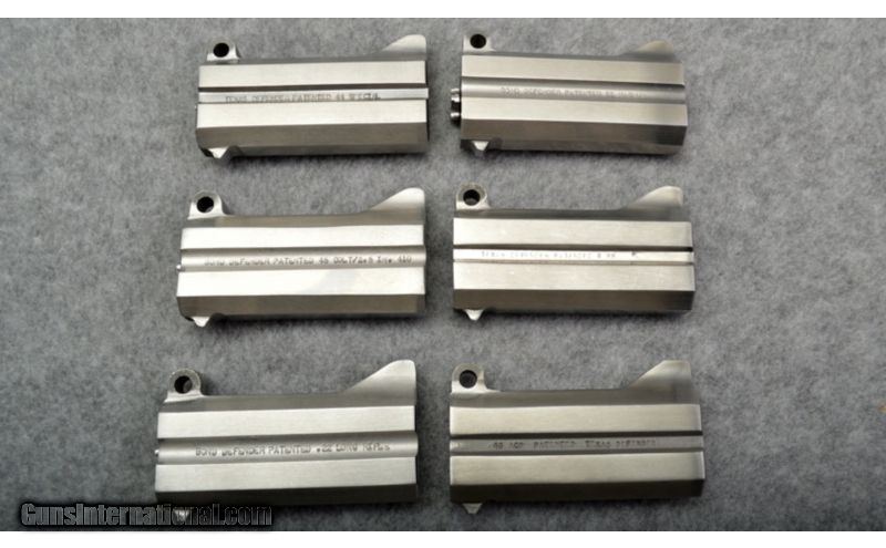 Description: SOLD Caliber Info: .357 Magnum/.38 Spl. .44 Spl. .45 Colt/2 ½ In. .410 .25 Long Rifle .45 ACP 9mm .22 Magnum Chambers: 2 ½ Inch for the .410 barrel Metal Condition: Excellent with a few light usage/handling marks. Wood Condition: Excellent with a few light handling marks. Bore Condition: Excellent, bright and sharp Barrels: 3 ½ Inches 6 barrels Weight: 20 Oz. Sights: Fixed front blade and fixed rear notch Extras: 6 additional barrels and box included. Item Location: Farmington, UT |
