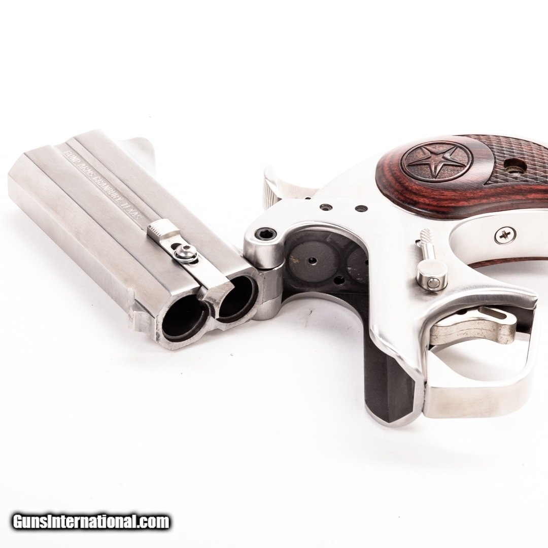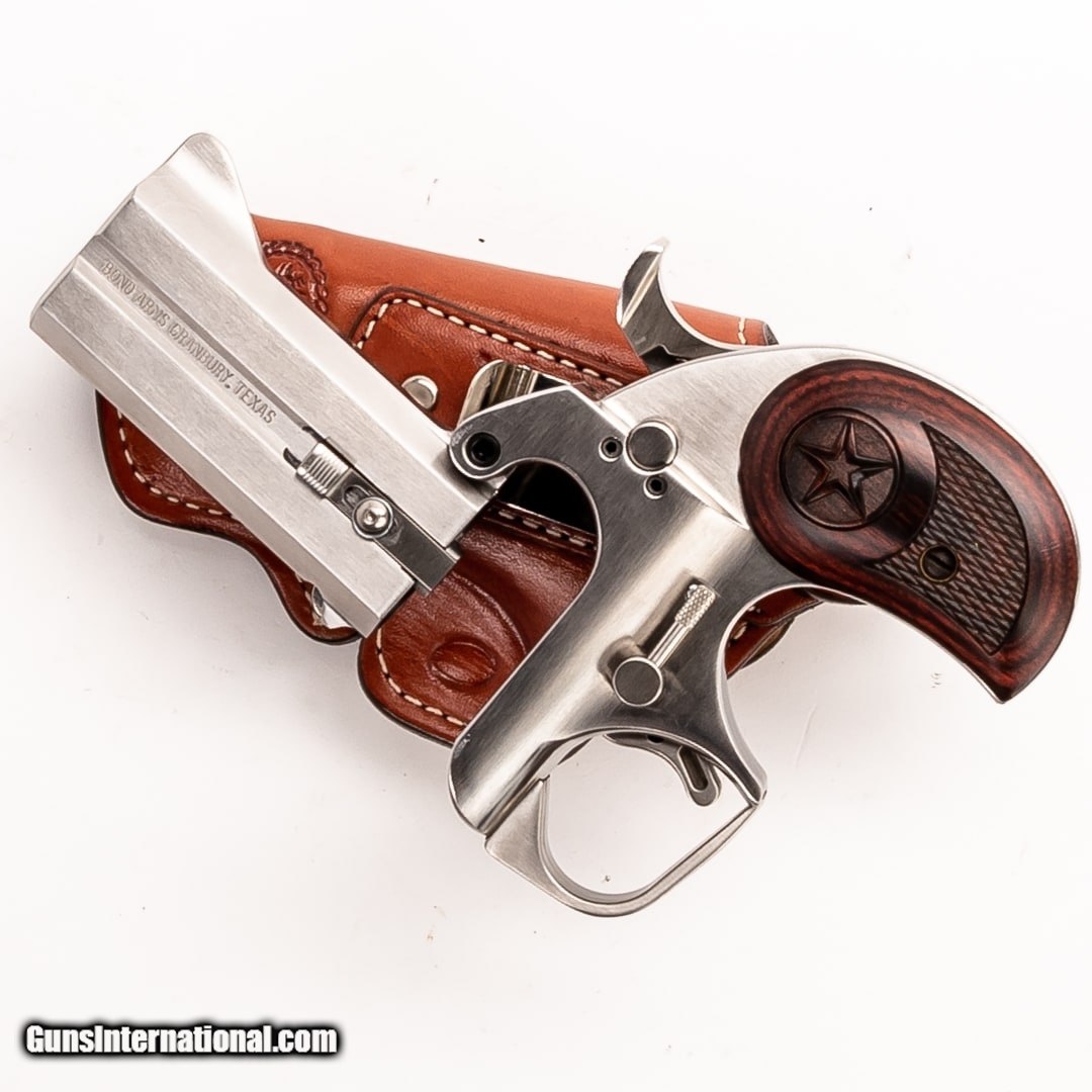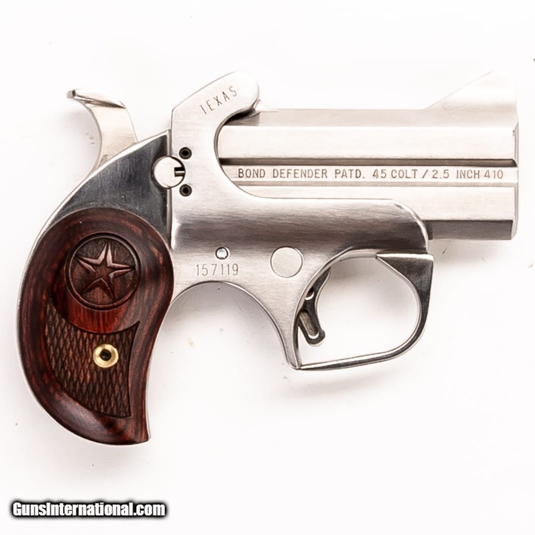 Description: Guns Listing ID: 346581 The Bond Arms Texas Defender is a double barrel derringer chambered in .45LC/.410 gauge. It is an easy to conceal handgun perfect for everything from daily carry to snake defense. The original case and a Bond Arms right hand leather holster are included. SOLD Manufacturer: BOND ARMS Model: TEXAS DEFENDER Caliber Info: .45 LC/410 GA Condition: Used - Certified Barrels: 3 BARREL Finish: STAINLESS |