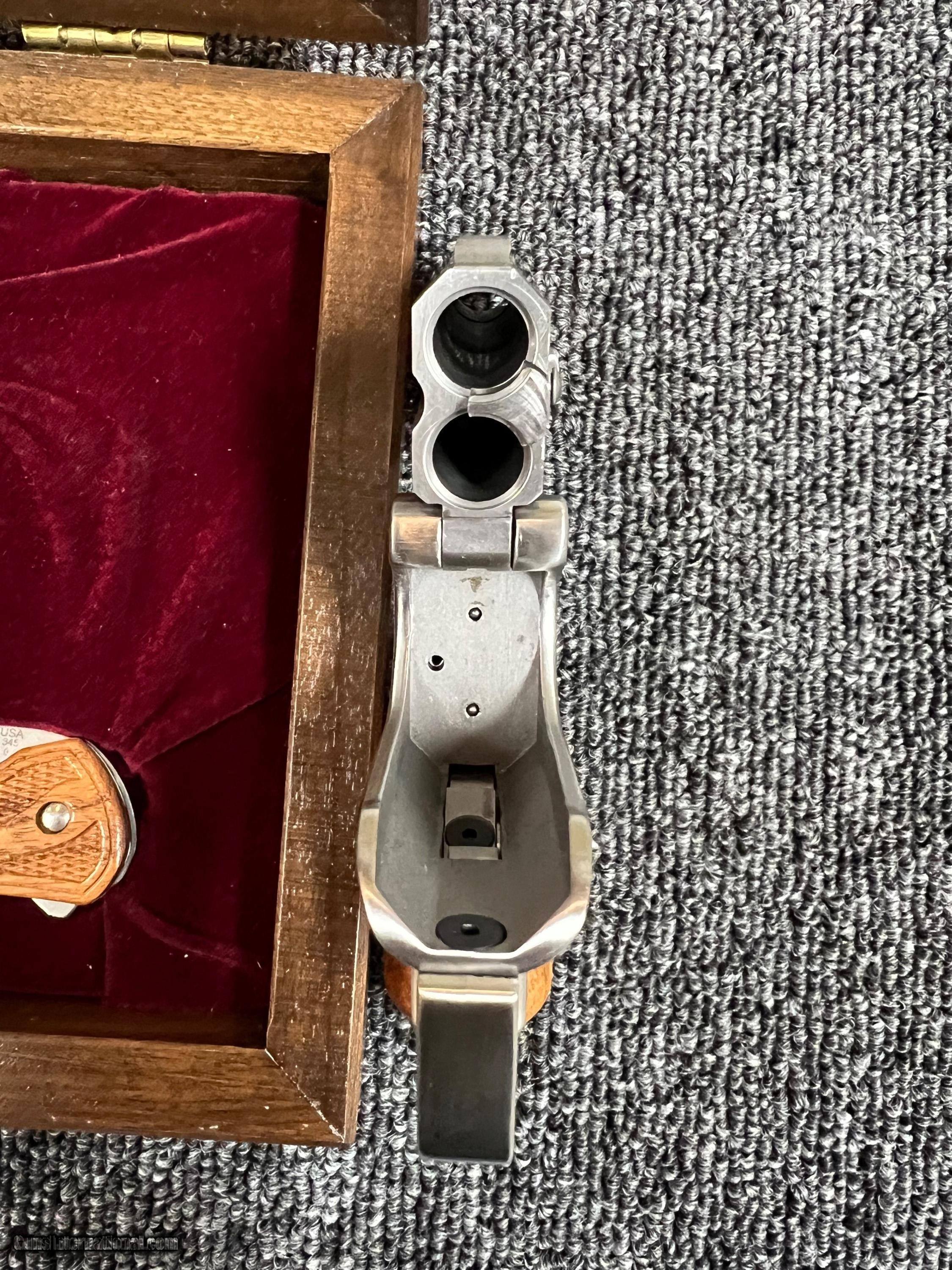 Description: Bond Arms "Texas Ranger" 200th anniversary special edition. Chambered in 45colt/410. 3.5" stainless barrels with gold inlay "1823-2023". Frame has slight wear on left side of receiver as pisctured. Barrels are clean and shiny. Wood grips are in excellent condition. Comes with wood/glass presentation box as well as matching buck knife. $880....buyer pays shipping and insurance Email: johnsonsgunsyahoo Phone: 517-265-2545 Used firearm : johnsonsguns W. Johnson Service Inc. 3654 N. Adrian Hwy. Adrian, MI 49221 SOLD Handgun Caliber: .45 Colt Shotgun Gauge: .410 Gauge Manufacturer: Bond Arms Model: Texas Ranger Barrel Length: 3.5 Condition: Excellent |