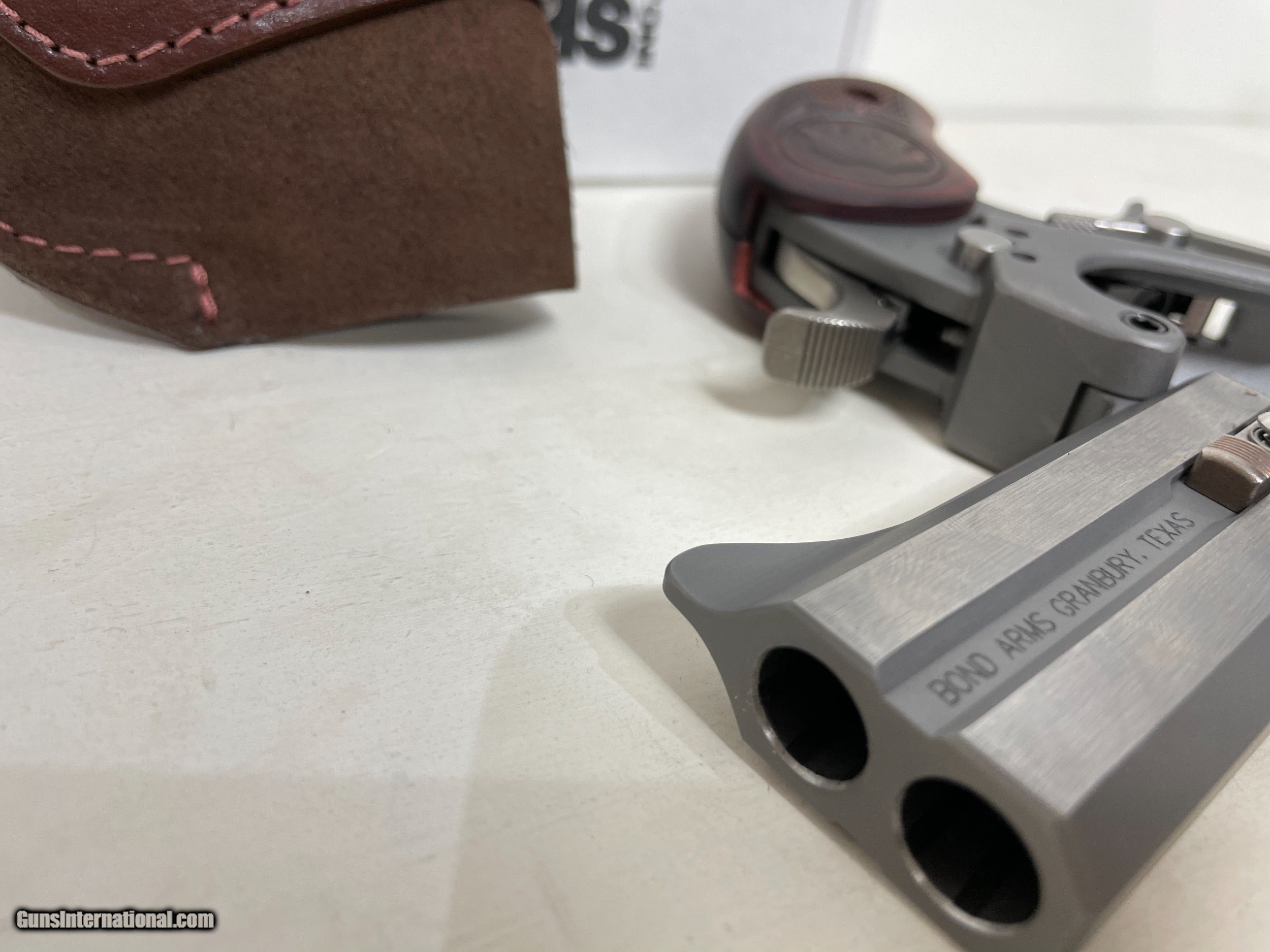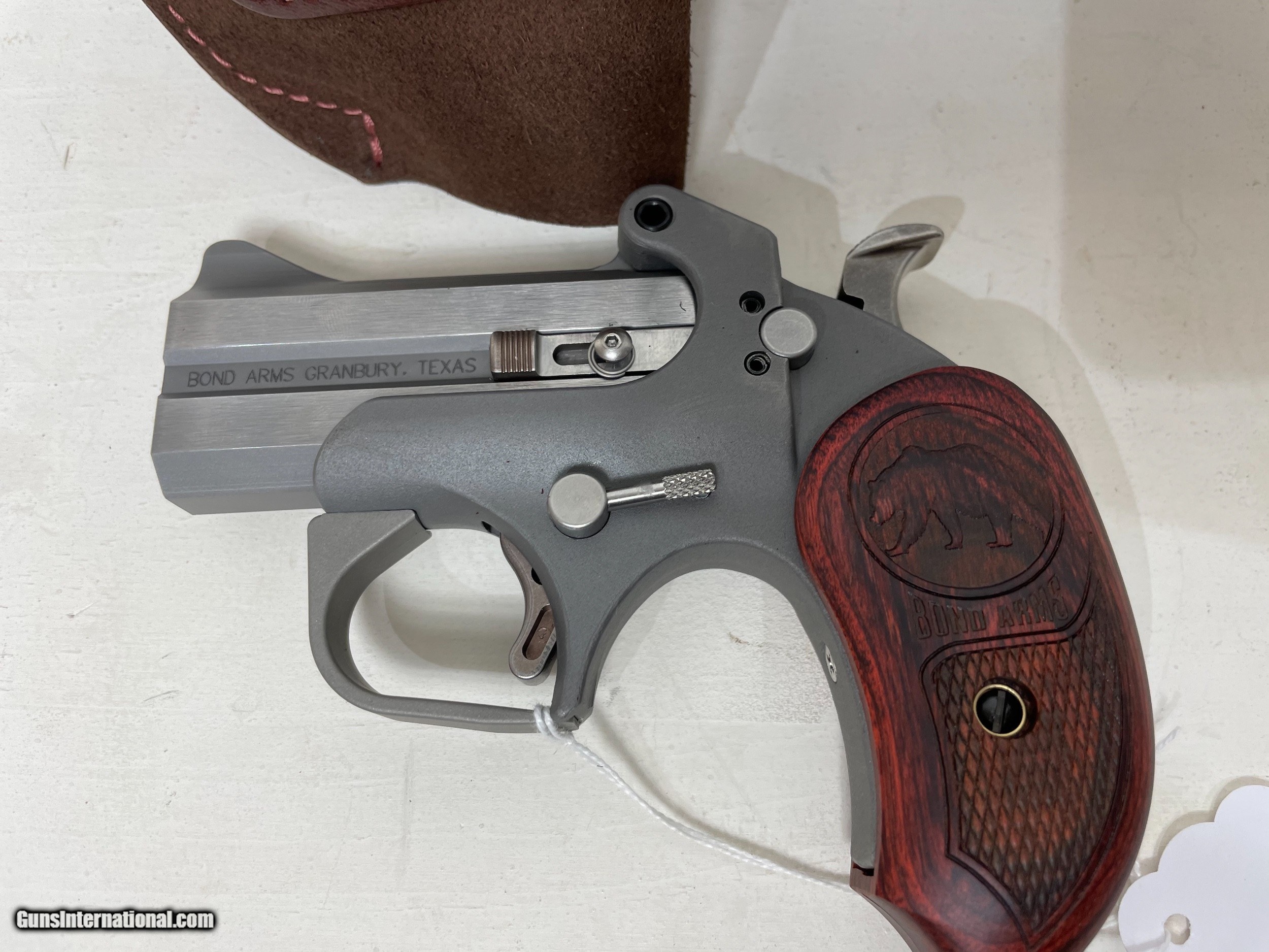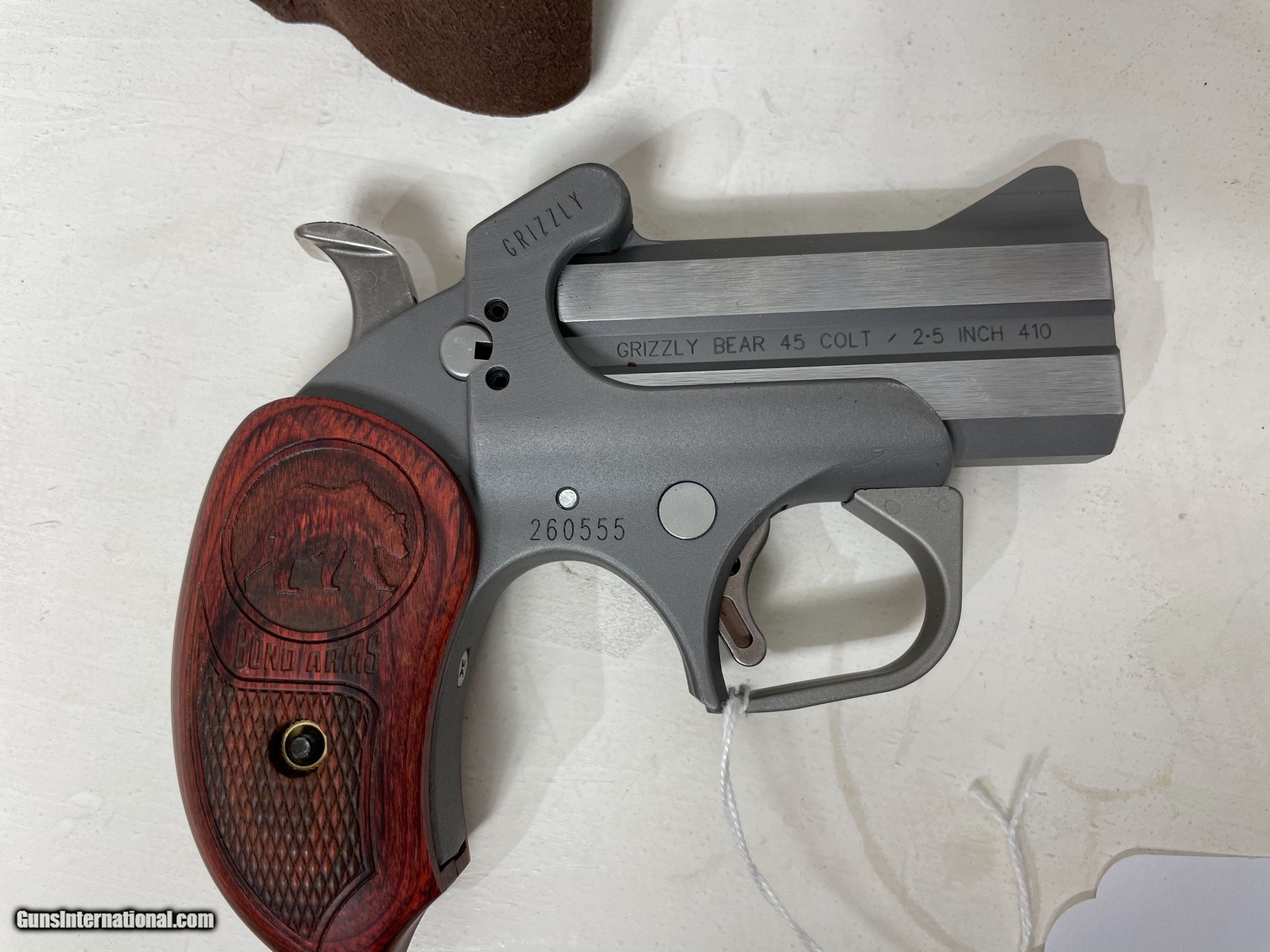 Description: The compact, yet rough-looking, Grizzly is a new type of Bond Arm gun. It’s built with a 3″ barrel chambered for 45LC/.410. Works best with smoothed lined holsters. Features: