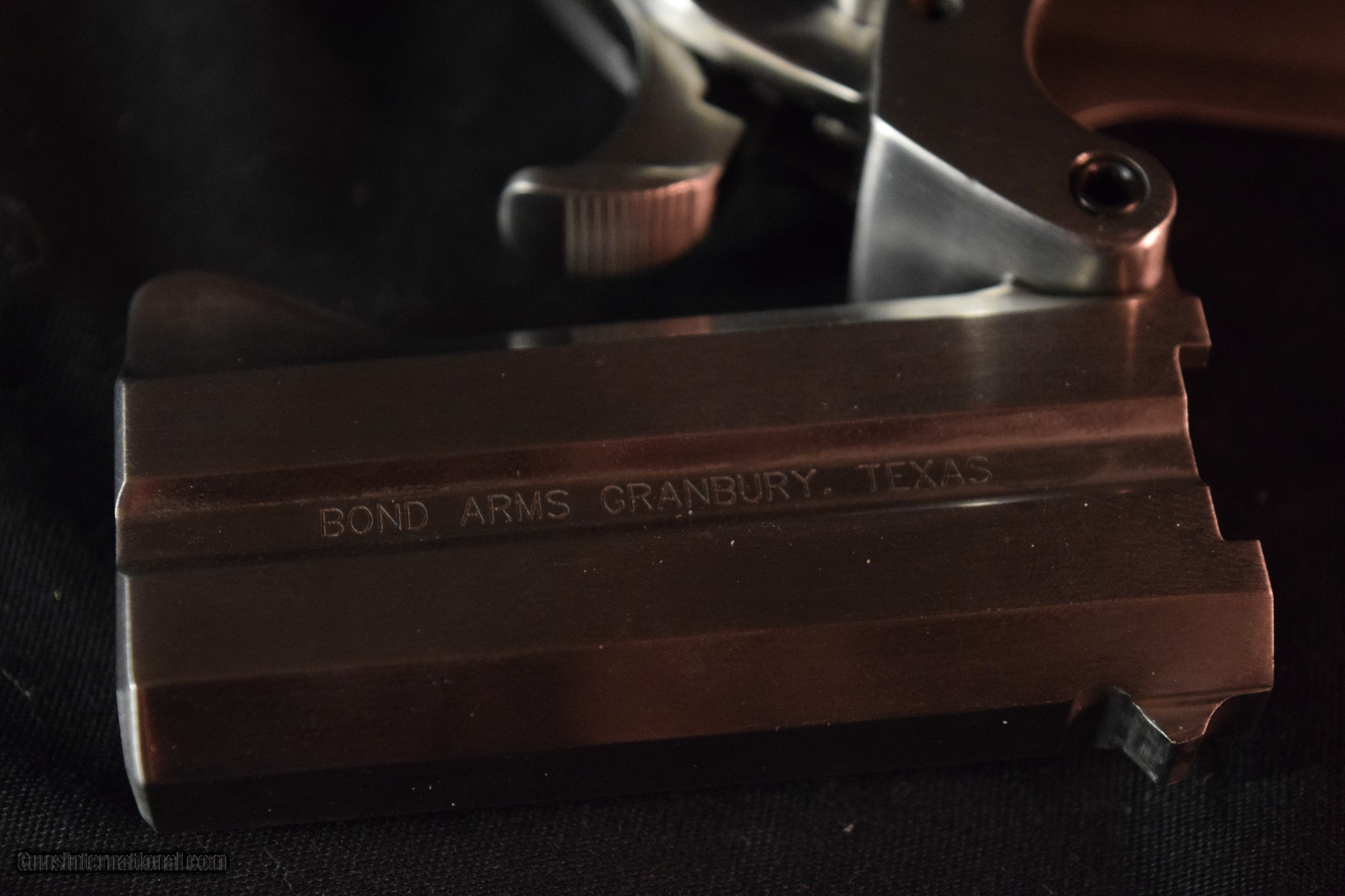 Description: The compact, yet rough-looking, Roughneck is a new type of Bond Arm gun. It’s built with a 2.5″ barrel chambered for 9mm, 357/38 or 45ACP. Works best with smoothed lined holsters. This item comes with the original case. Overall the condition is excellent with little to no wear present. Pre-Owned - Bond Arms Texas Derringer .45 ACP 2.5"