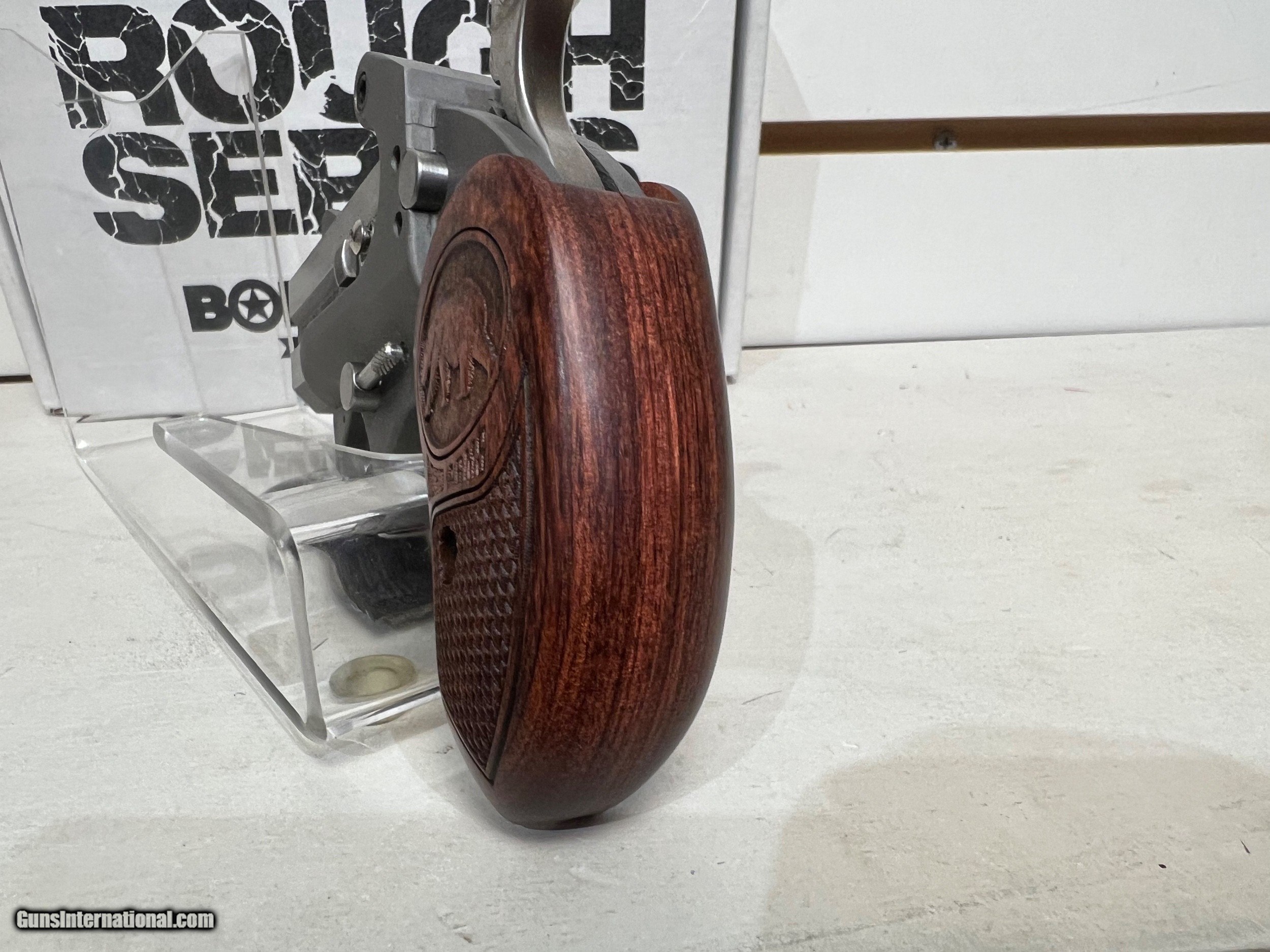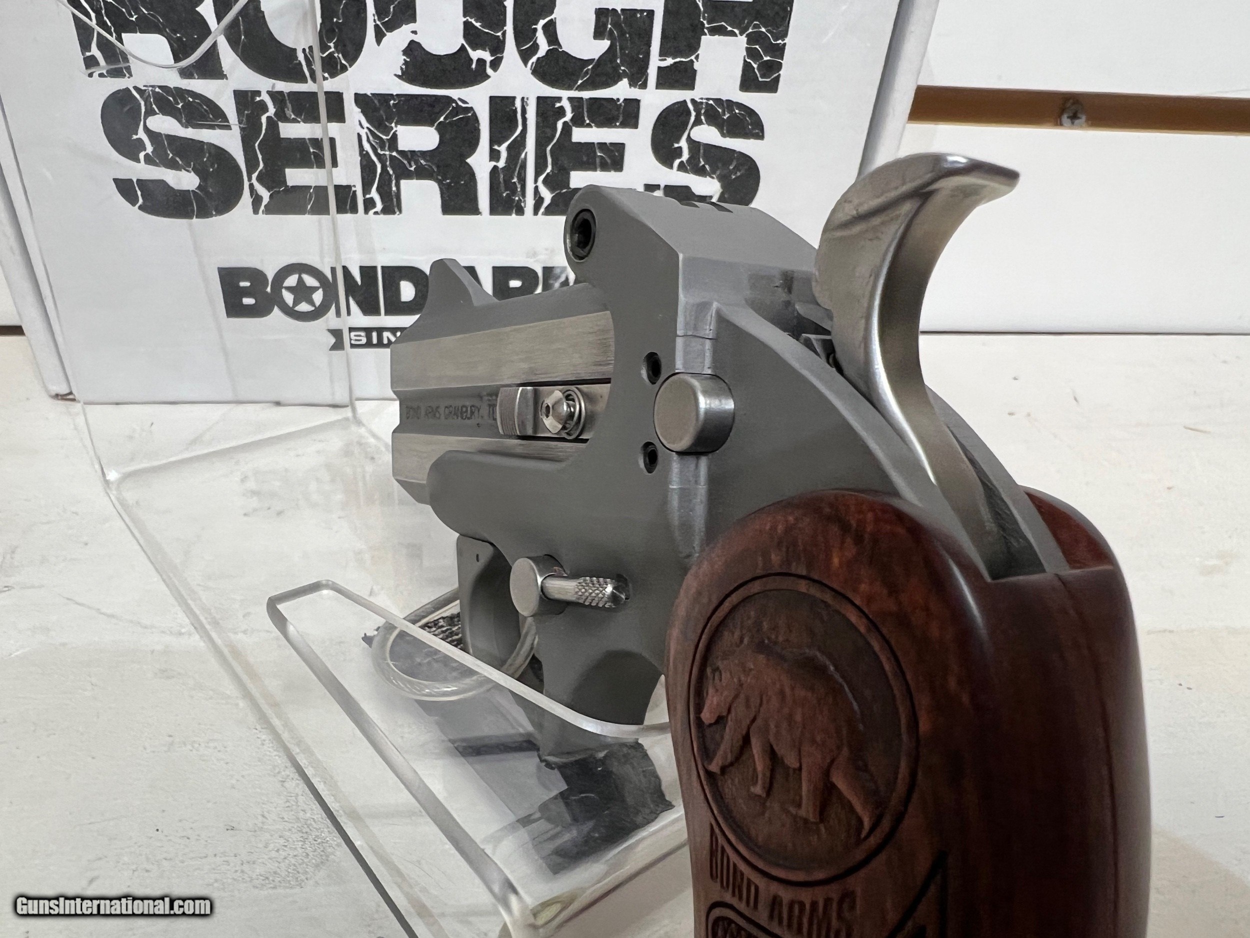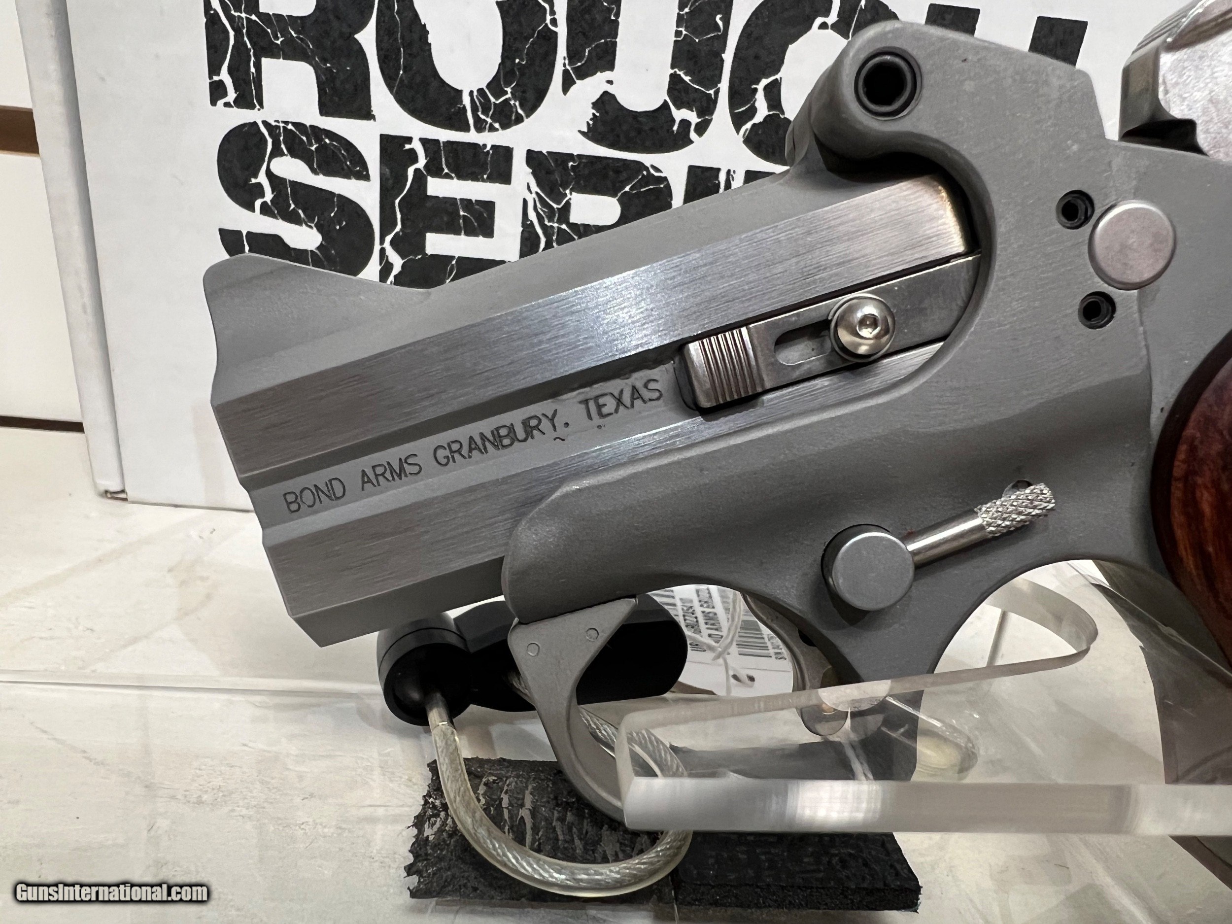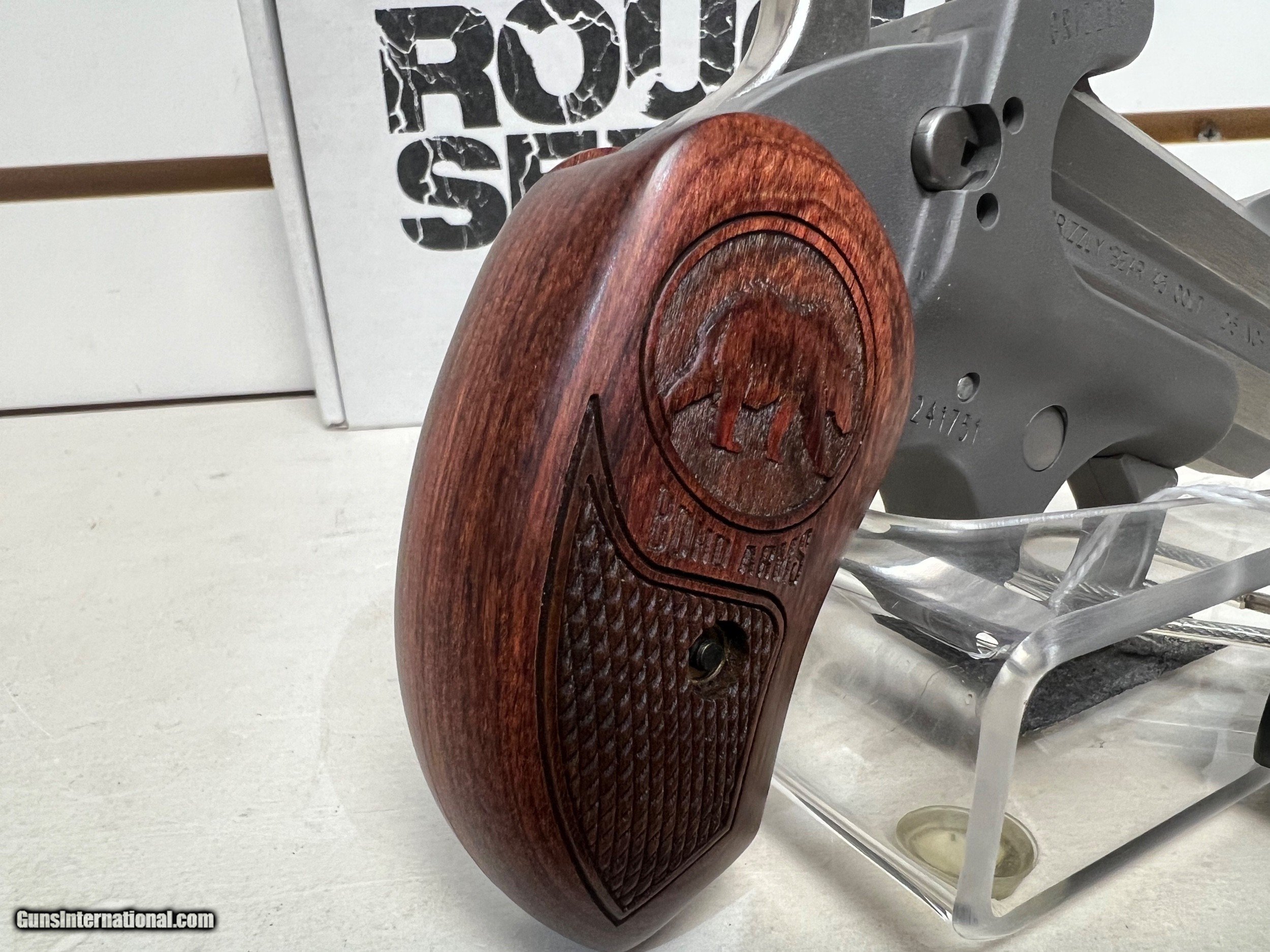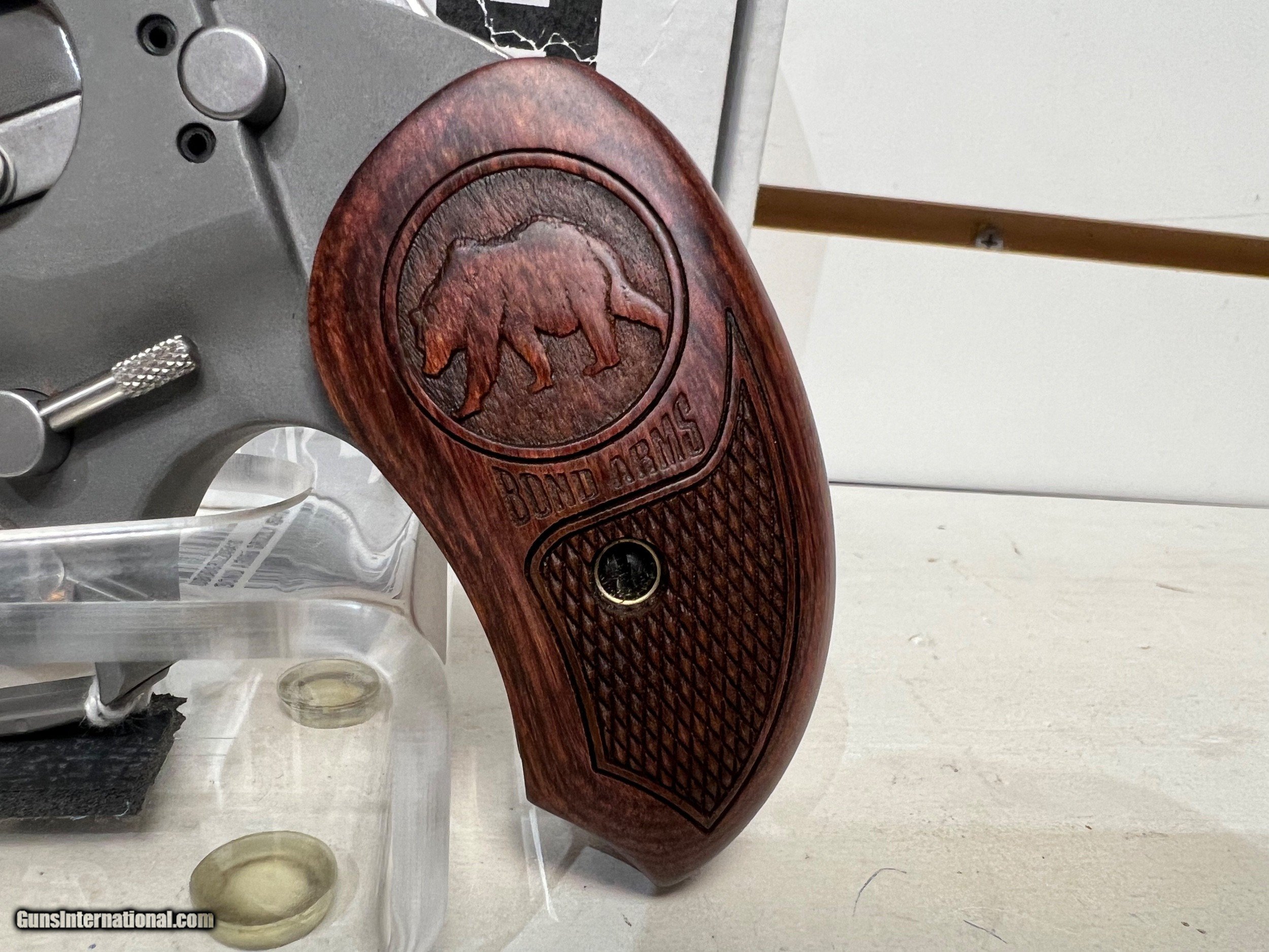 Description: Bond Arms Grizzly 45/410 With Box Model #:BAGR MSRP:$377.00 Caliber.45LC/.410 Barrel Length3" Grip MaterialRosewood Grip SizeExtended SightsFront blade, fixed rear Length5" Weight20 ounces Trigger GuardYes SOLD Manufacturer: Bond Arms Model: Grizzly Serial Number: 241751 Barrel Length: 3 |