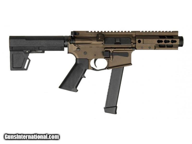Description: Guns Listing ID: 663822 Brigade Manufacturing 9mm Battle Pistol Billet Receiver Model. Complete with Proprietary Lightweight U-Loc Rail System & adjustable KaK Pistol Brace and Recessed Faux Can / Muzzle Enhancer. Midnight Burnt Bronze Cerakote Finish. 5.5\" 1:10 Twist Nitride Finish Barrel with 5\" Free Float U-Rail which accepts both Keymod and M-Lok attachments. Mil-Spec AR-15 Trigger and Mil-Spec AR-15 Charging Handle. Accepts Glock style magazines. Comes with 1-33rd OEM Glock magazine. Limited Lifetime Warranty from Brigade Manufacturing. SOLD Manufacturer: BRIGADE MFG. Model: BM-9 Caliber Info: 9MM LUGER (9X19 PARA) Condition: new Barrels: 5.5" barrel Finish: MIDNIGHT BRONZE |