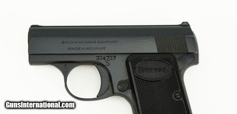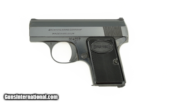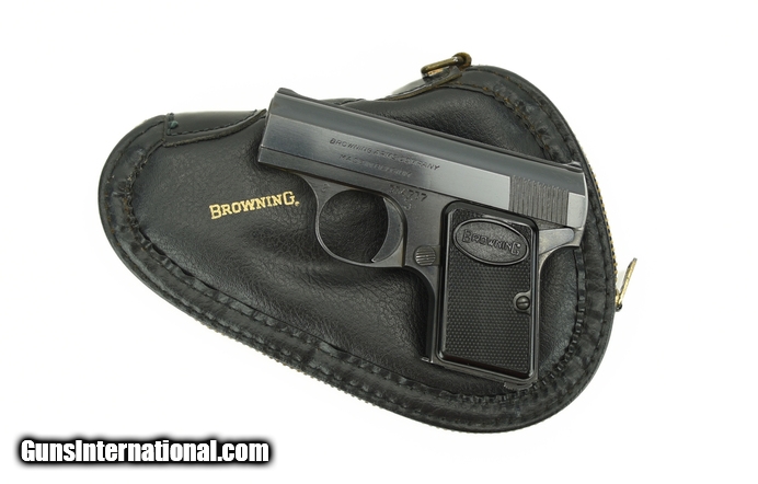 Description: Browning Baby Auto .25 caliber pistol. Belgian made Baby Browning near excellent condition with some edge wear. Comes in Browning pouch. SOLD |