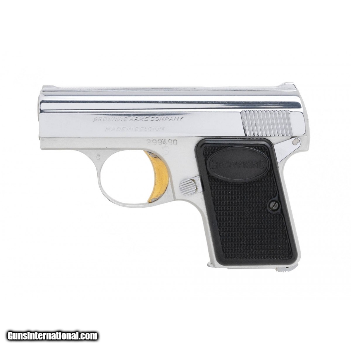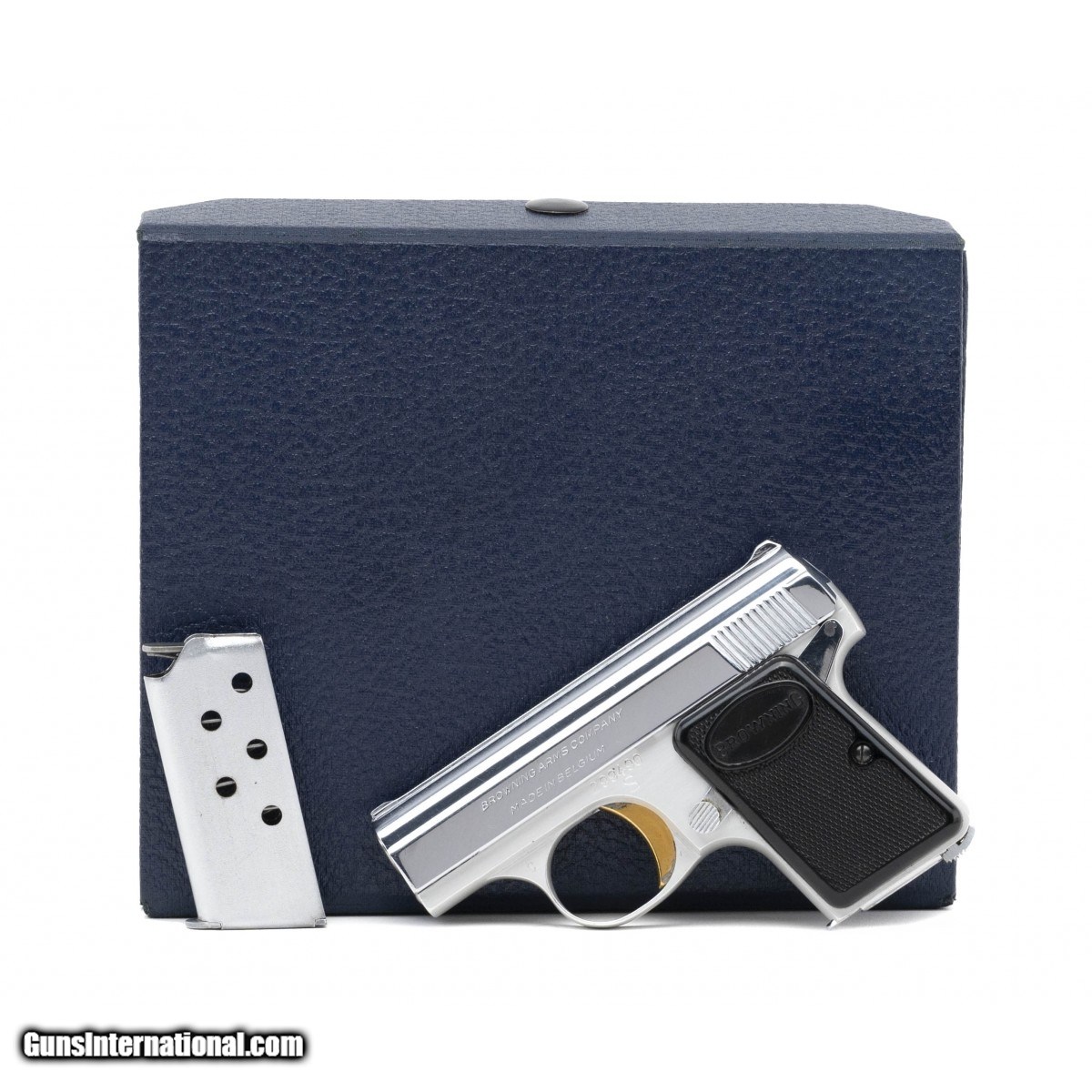 Description: " Scarce lightweight model with alloy frame and nickel plated slide. Excellent overall condition with a custom box and extra magazine. SOLD |