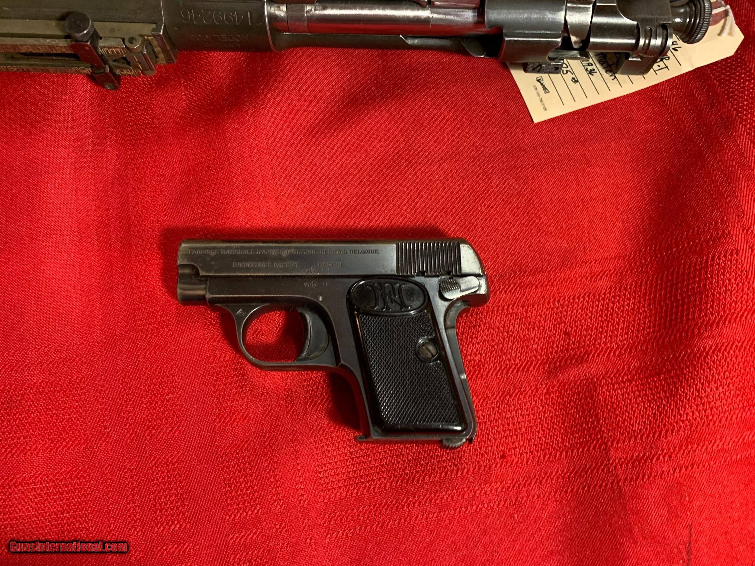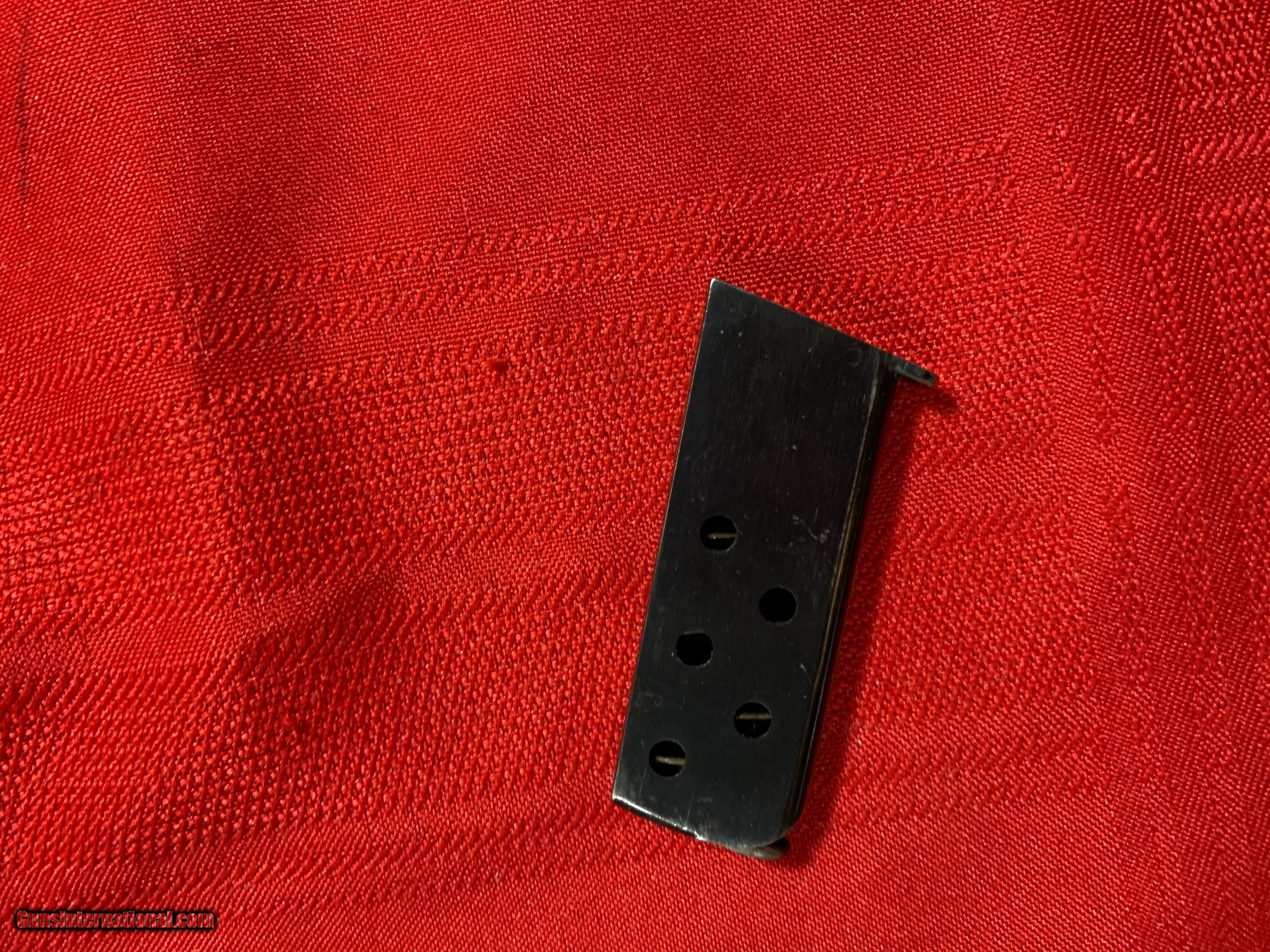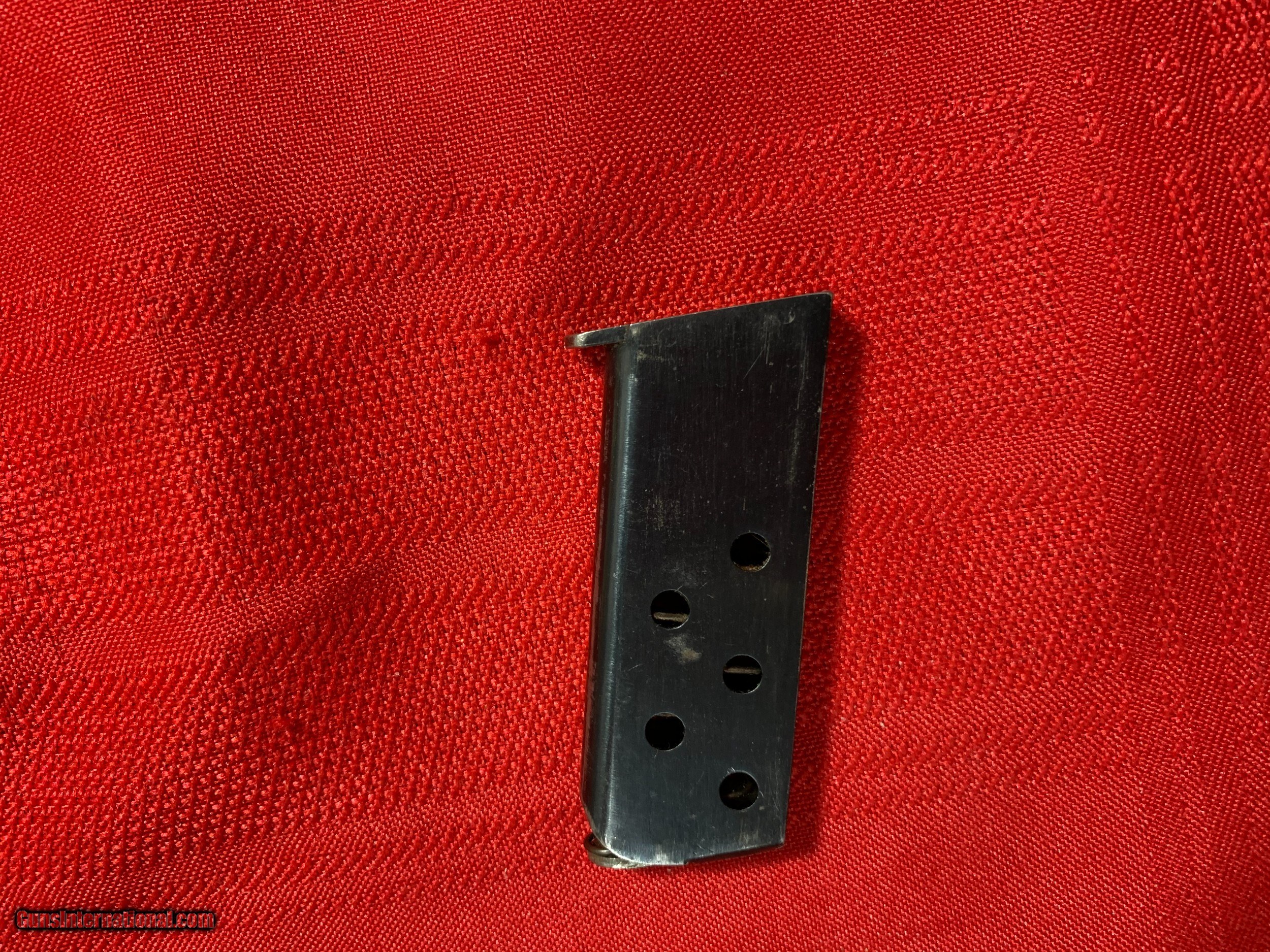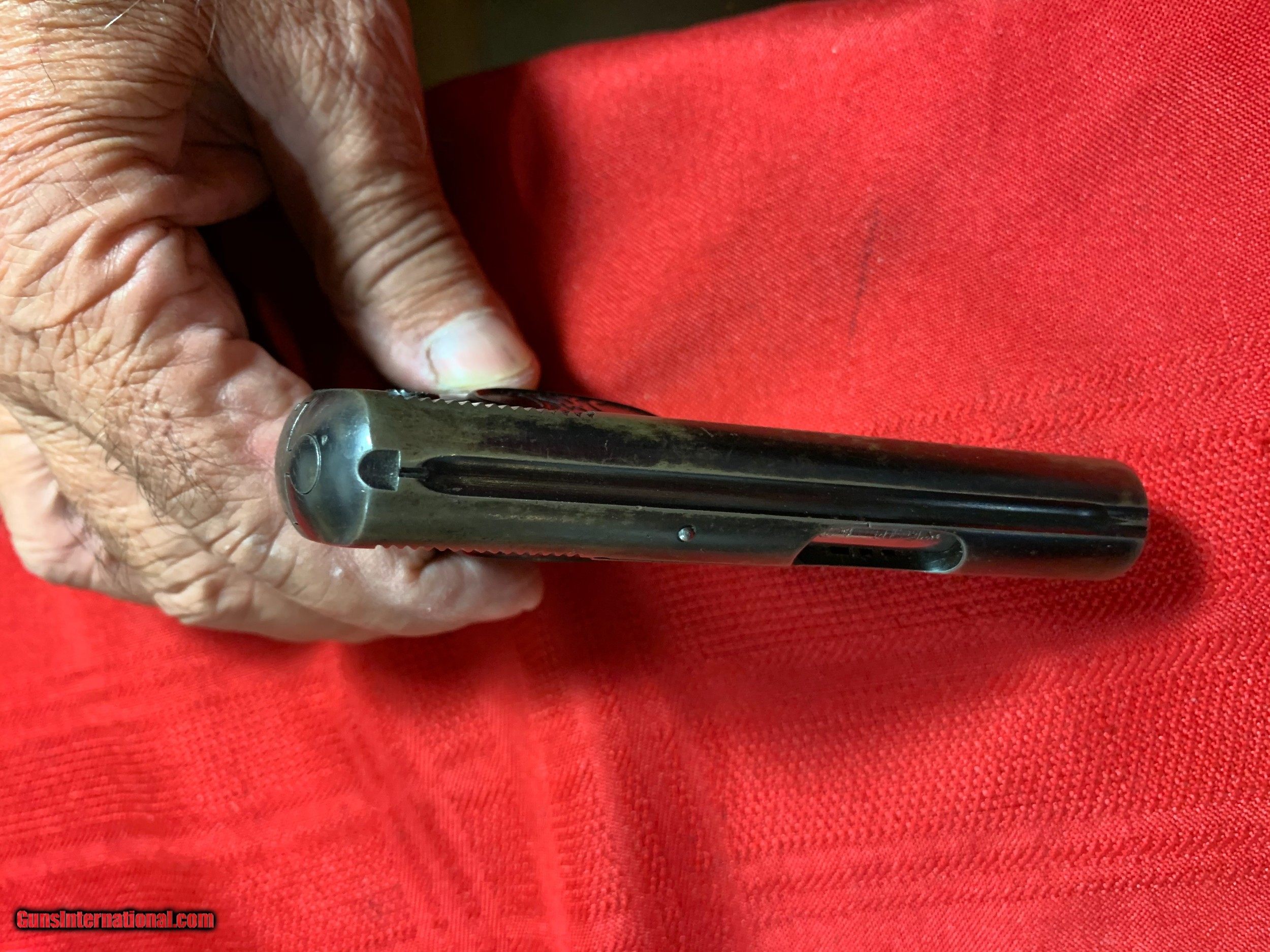 Description: Lots of pretty ones out there but this one is a user. Put it in your pocket and don,t worry if pocket change touches it. Mechanically sound and not too ugly. Good bore. Original Magazine. SOLD Curio/Relic: Yes Handgun Caliber: .25 ACP (6.35mm Browning, 6.35×16mmSR) |