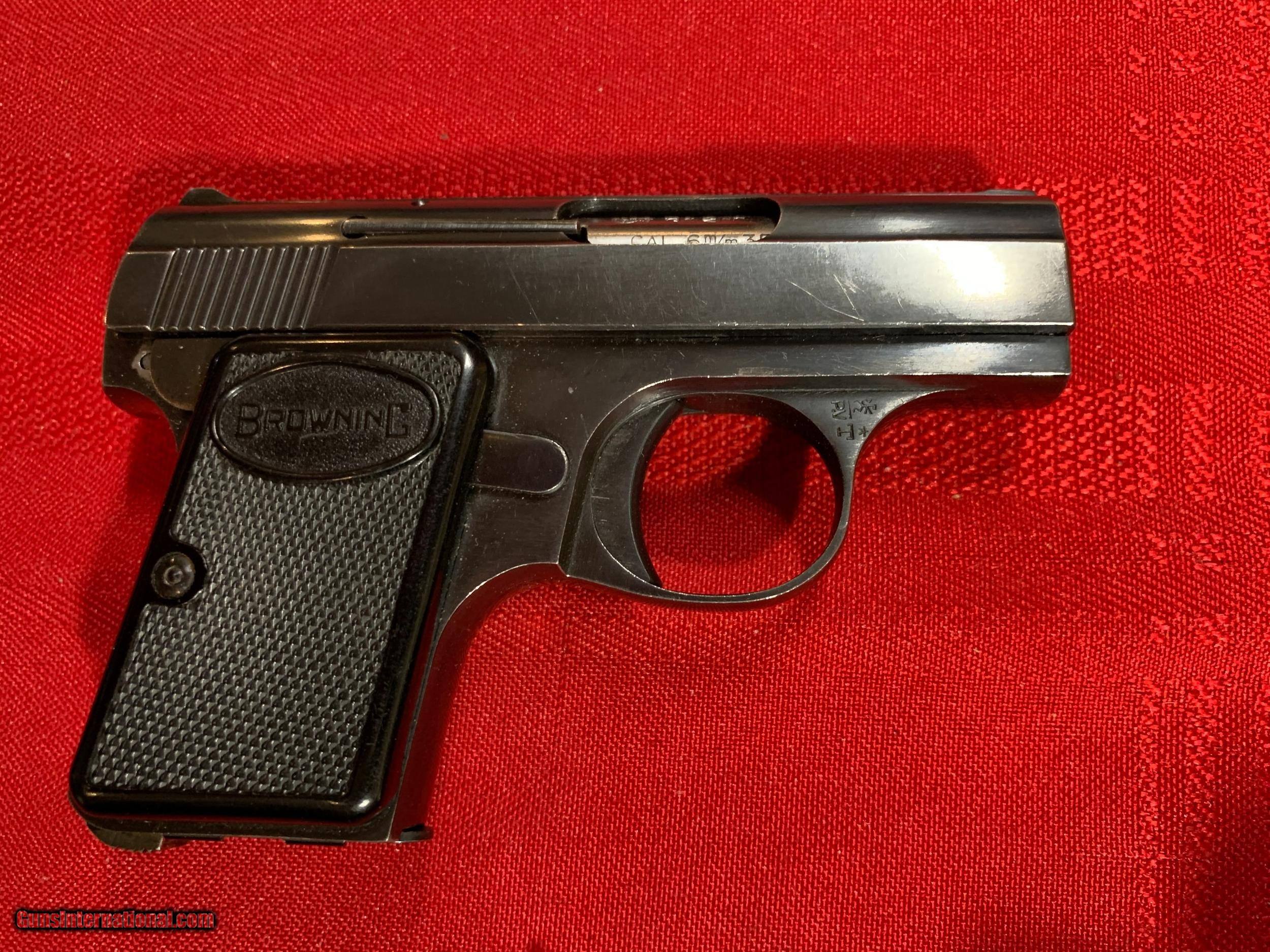Description: Baby 25 ACP. Nice bluing. Perfect grips. clean all over. SOLD Curio/Relic: Yes Handgun Caliber: .25 ACP (6.35mm Browning, 6.35×16mmSR) |