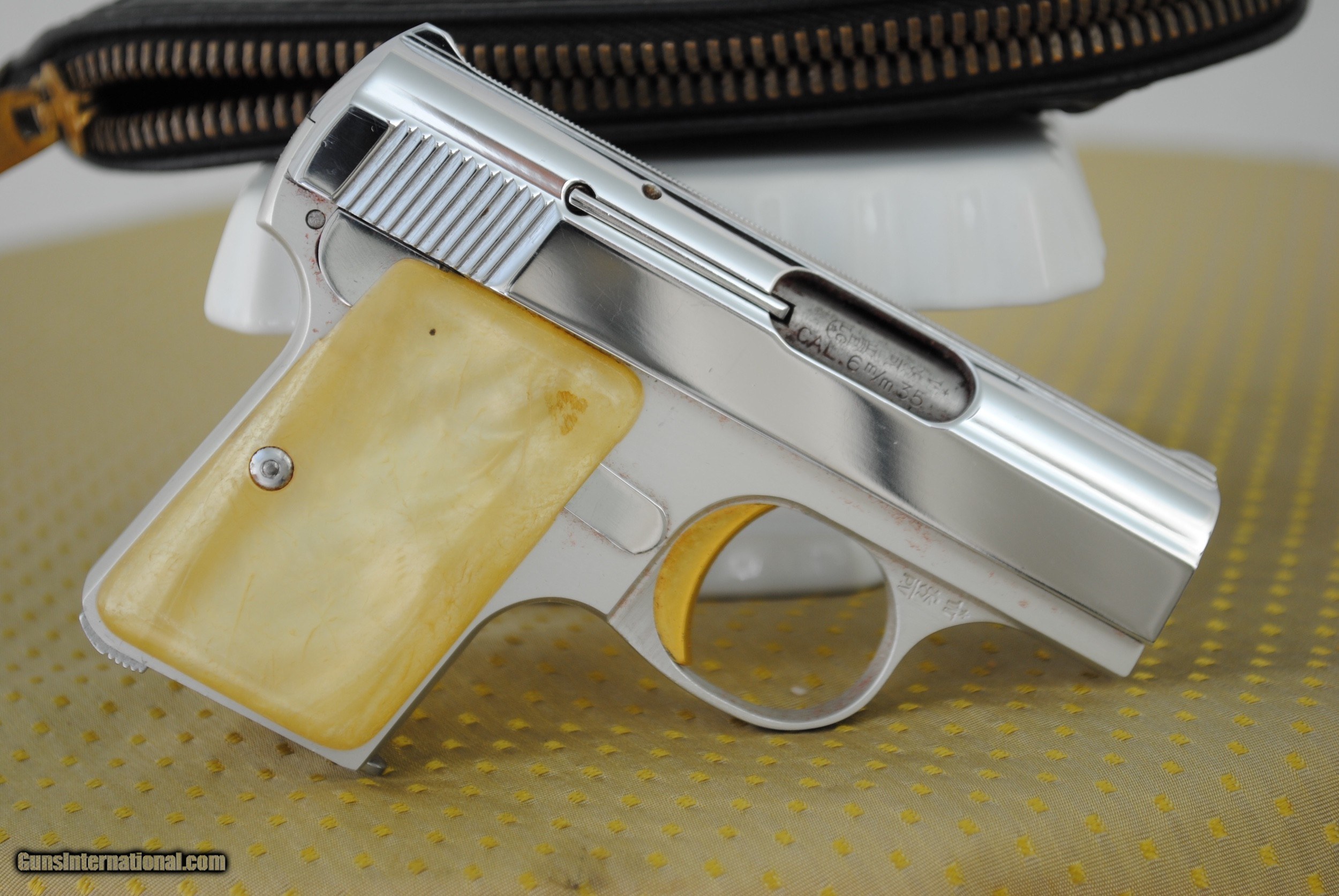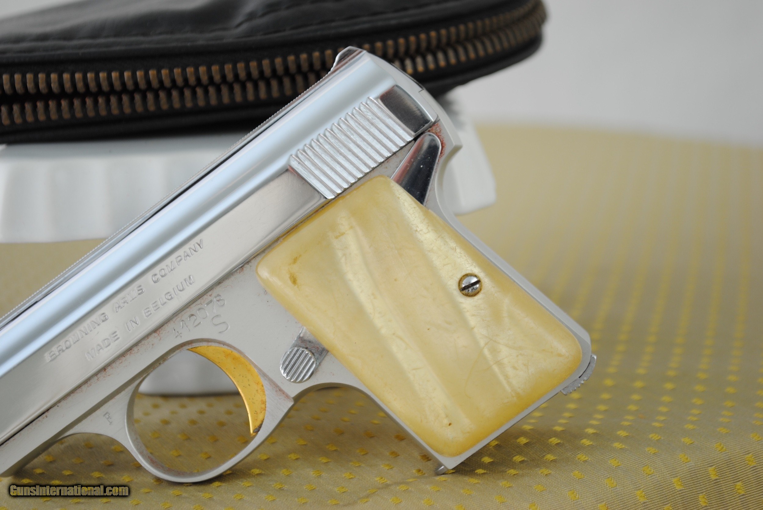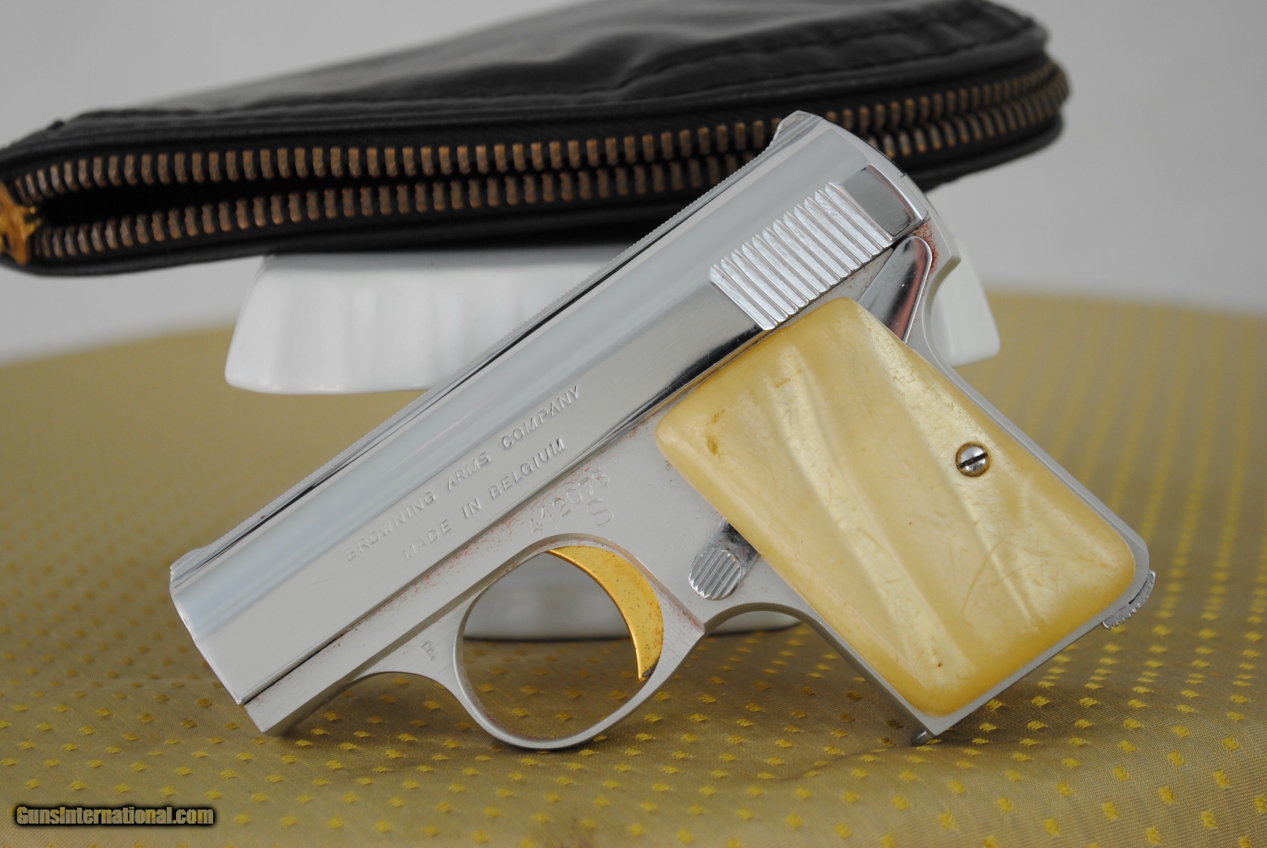 Description: SALE PENDING. Baby Browning Lightweight in collector condition with pearl grips and original pouch. One six shot mag is provided. Caliber is 25 ACP. Credit cards OK with no additional fee. Shipping is $50. SOLD Handgun Caliber: .25 ACP (6.35mm Browning, 6.35×16mmSR) |
