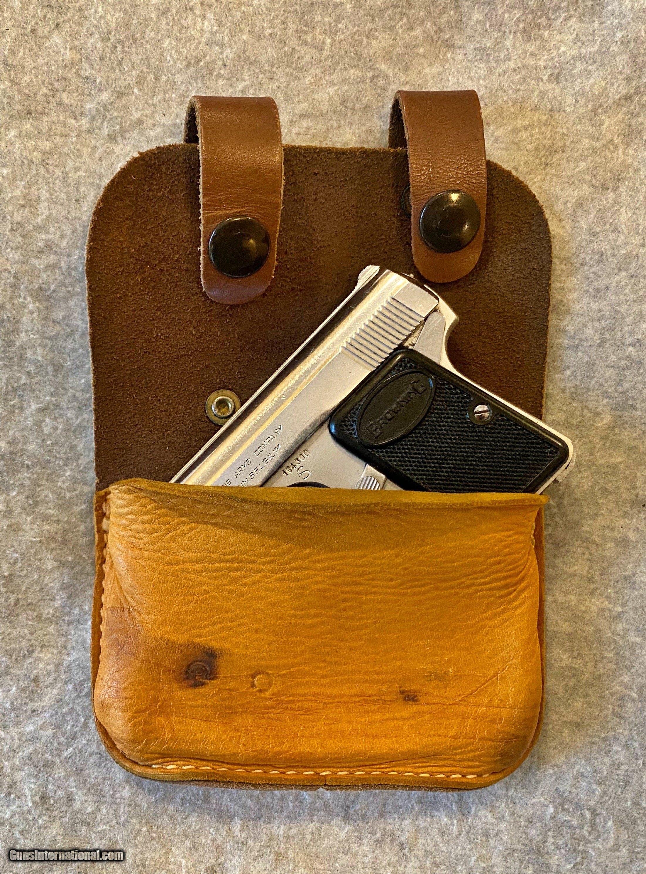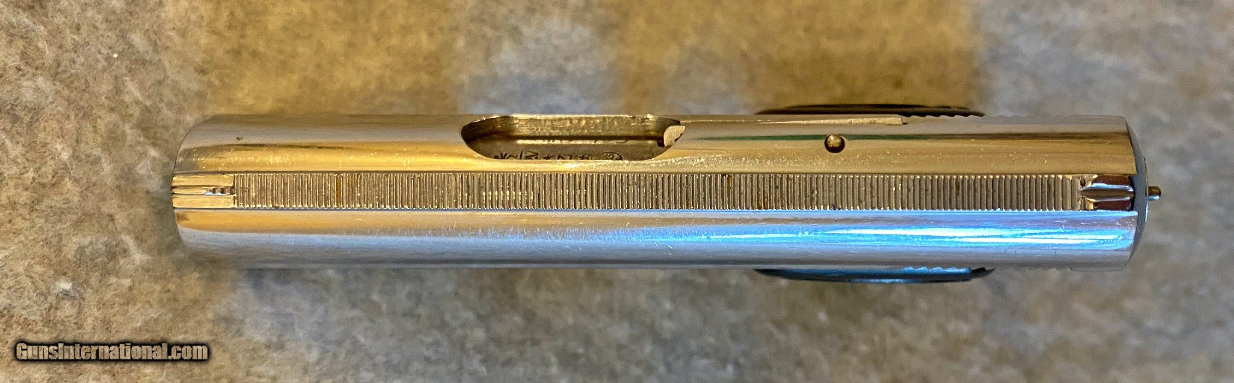 Description: THIS IS A NICE 1960 OR LATER BROWNING BABY WITH CASE. IT COMES WITH A 6 ROUND MAGAZINE AND WAS MANUFACTURED IN BELGIUM. THE PISTOL HAS A LEFT SIDE MANUAL THUMB SAFETY. THE CASE HAS REAR BELT LOOPS AND SNAPS IN FRONT. TERMS AND CONDITIONS PRICES SHOWN ARE FOR PAYMENT BY U.S.P.S. MONEY ORDER OR BANK ISSUED CASHIERS CHECK. CREDIT CARD PAYMENTS ARE 3% ADDITIONAL. UPON CLOSING OF THE SALE, YOU WILL BE EMAILED AN INVOICE FOR PAYMENT. PAYMENT MUST BE RECEIVED WITHIN 4 BUSINESS DAYS OF THE INVOICE DATE OR THE SALE WILL BE CANCELLED AND BUYER REPORTED AS “A NON-PAYMENT BUYER”. IF YOU HAVE NOT SELECTED A FORM OF PAYMENT WITH YOUR BUYERS ORDER, YOU WILL BE BILLED FOR CREDIT CARD PAYMENT. IT IS UP TO THE BUYER TO DETERMINE IF THE FIREARM AND OR MAGAZINES ARE LEGAL IN YOUR AREA PRIOR TO YOUR PURCHASE. THE FIREARM WILL BE SHIPPED TO THE FFL HOLDER THAT YOU SPECIFY. THEIR RELEASE TO YOU IS BASED ON YOUR PRIOR ARRANGEMENTS WITH THEM. PLEASE REVIEW THE PHOTOS AND IF YOU HAVE ANY QUESTIONS, PLEASE EMAIL US. WE TAKE DETAILED PHOTOS AND ADD DESCRIPTIONS, BUT THERE MAY BE SOMETHING UP CLOSE THAT YOU WANT TO SEE OR ASK ABOUT. SOMETIMES OUR ITEMS SELL LOCALLY. WE WILL NOT SELL AN ITEM WHEN A BUYER COMMITS TO PURCHASE VIA EMAIL. SHIPPING NORMAL INSURED SHIPPING TO CONTIGUOUS UNITED STATES: LONG GUNS $45.00 HANDGUNS $35.00 HAWAII AND ALASKA: PRICE UPON REQUEST SALES TAX IF YOU ARE A RESIDENT OF NORTH CAROLINA, WE ARE REQUIRED TO COLLECT A 7% STATE SALES TAX BUY IT NOW WE FREQUENTLY RECEIVE MESSAGES AFTER HOURS FROM BUYERS THAT WANT TO KNOW IF A FIREARM IS STILL AVAILABLE. IF IT IS ONLINE IT IS AVAILABLE UNTIL SOMEONE CLICKS THE BUY IT NOW BUTTON. IT IS NOT UNUSUAL TO HAVE MORE THAN ONE INQUIRY FOR THE SAME FIREARM. IT IS AVAILABLE UNLESS STATED OTHERWISE WITH THE PRICE, OR SOMEONE CLICKS THE BUY IT NOW BUTTON. IF YOU SEE A FIREARM THAT YOU WANT, CLICK THE BUY IT NOW BUTTON. THE FIREARM IS NOW YOURS PENDING PAYMENT. IT WILL BE REMOVED FROM THE LISTINGS. WE WILL CONTACT YOU TO MAKE THE ARRANGEMENTS FOR PAYMENT AND SHIPPING. SOLD Manufacturer: BROWNING Model: BABY Serial Number: 194XXX Caliber Info: 25 ACP Finish: NICKEL Sights: FIXED |