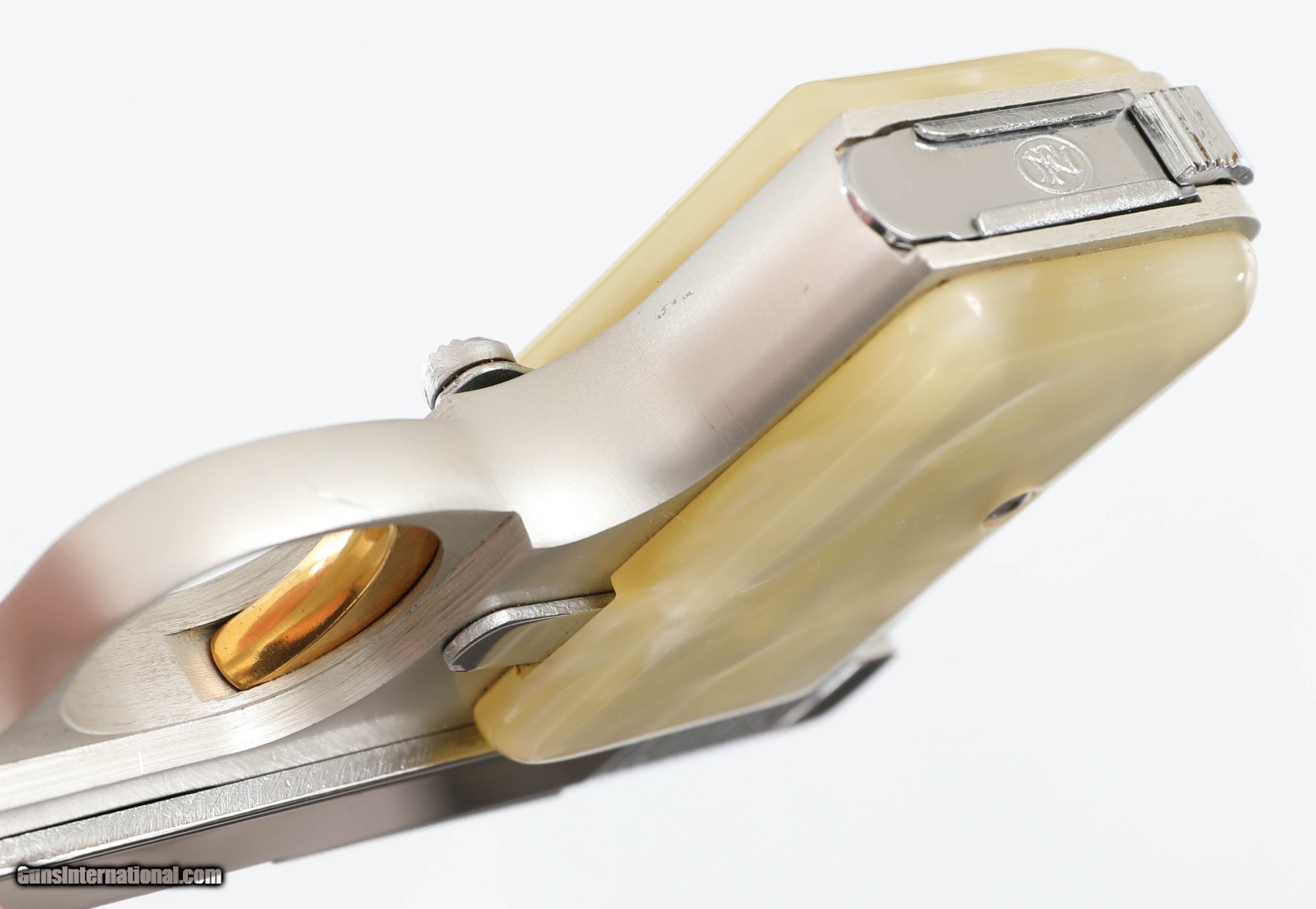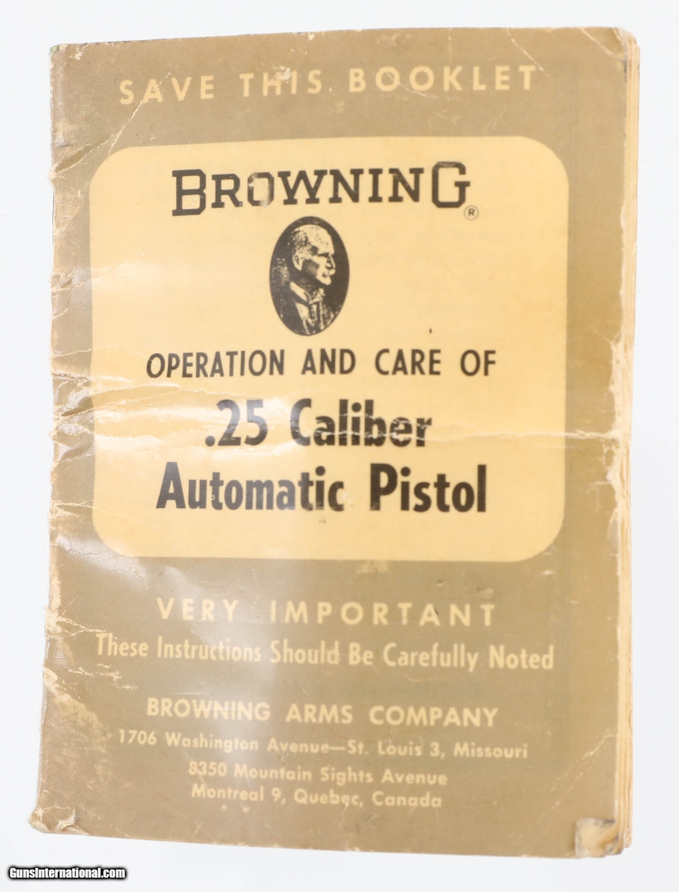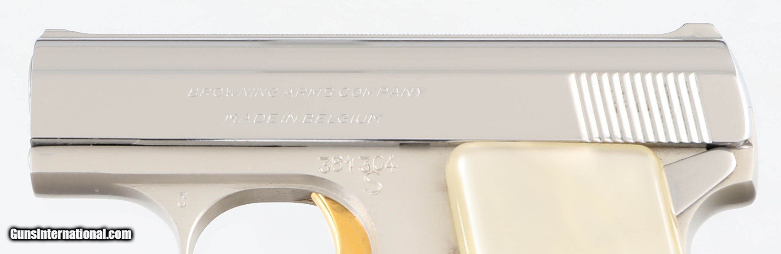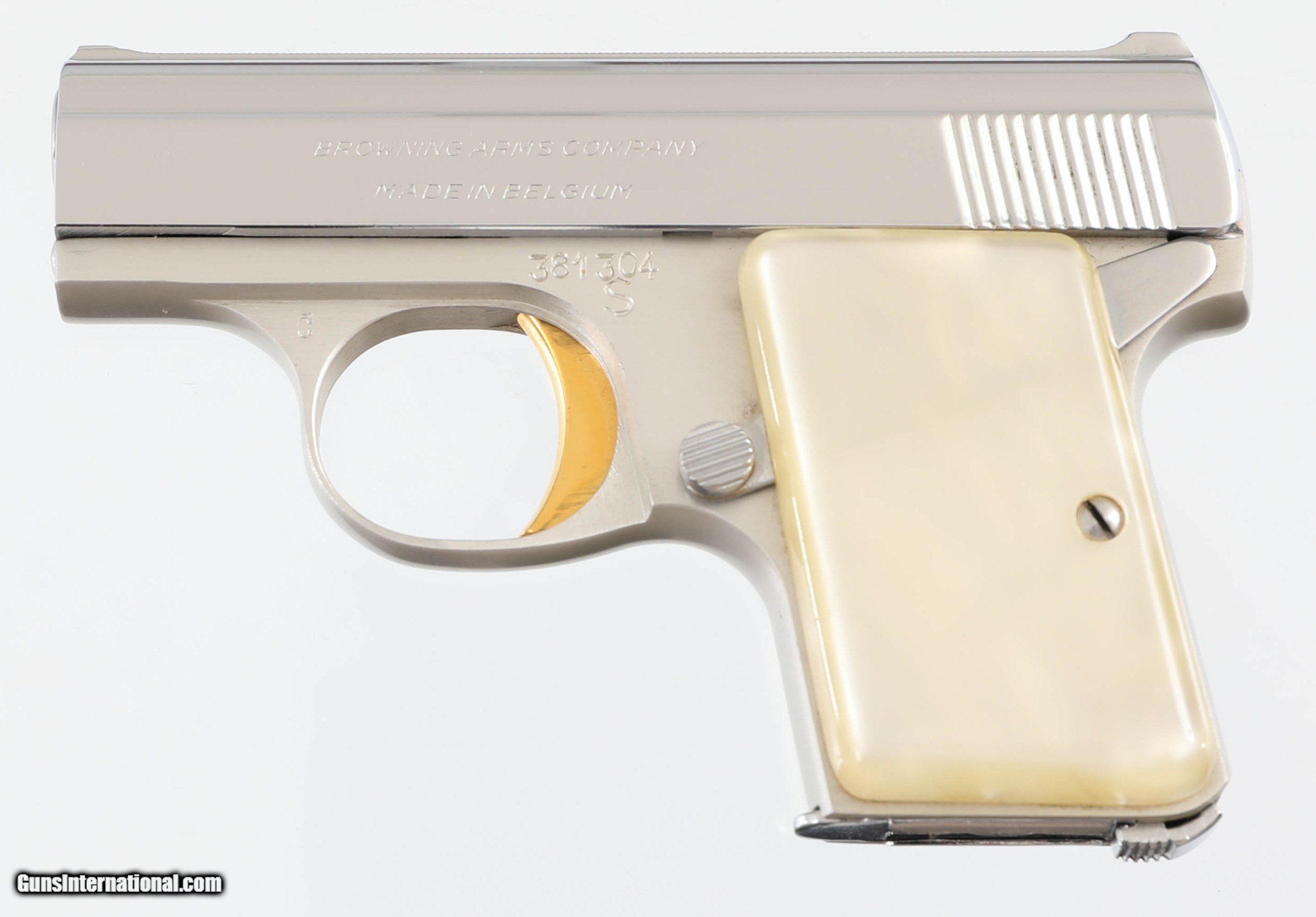 SOLD Curio/Relic: Yes Handgun Caliber: .25 ACP (6.35mm Browning, 6.35×16mmSR) Manufacturer: BROWNING Model: BABY Serial Number: 3813?? Barrel Length: 2 Condition: EXCELLENT |