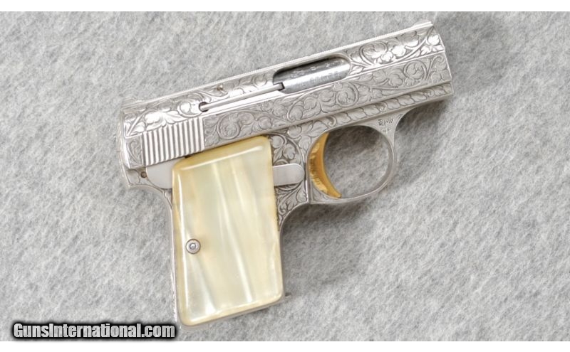 Description: SOLD Caliber Info: .25 AUTO Metal Condition: Very Good Bore Condition: Very Good Barrels: 2 Weight: 10 oz. Sights: Factory Iron Extras: Soft Case Item Location: Dundee, MI |