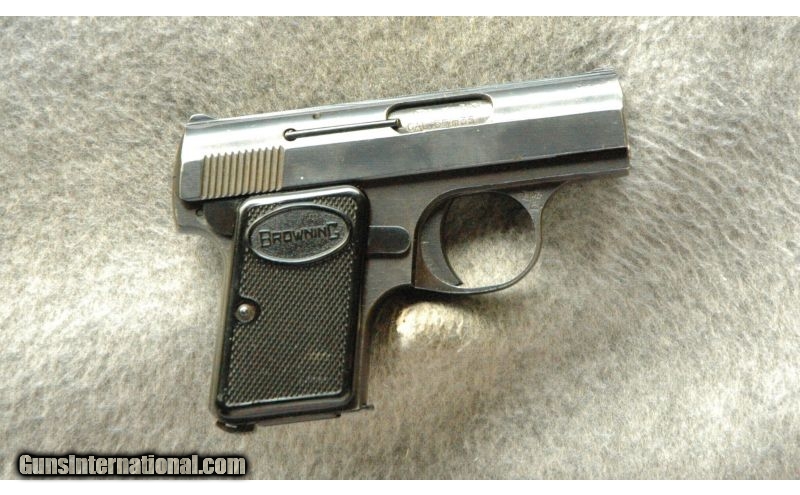 Description: Browning Baby pistol .25 Auto. Very good condition, with one mag and soft case. Very small handgun in a very light caliber. SOLD Manufacturer: 1964 Caliber Info: .25 Auto (6.35mm) Metal Condition: Very Good, Some Finish Wear, Small Nicks & Scratches Wood Condition: Grips are in Very Good Condition Bore Condition: Bright Barrels: 2 Stock: Factory Grips Weight: 15 Ozs Sights: Fixed Iron Sights Extras: With one mag and soft case Item Location: La Vista, NE |
