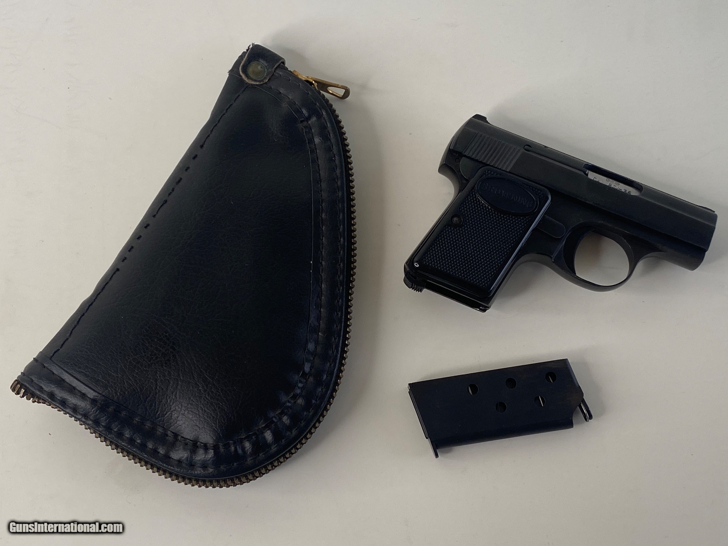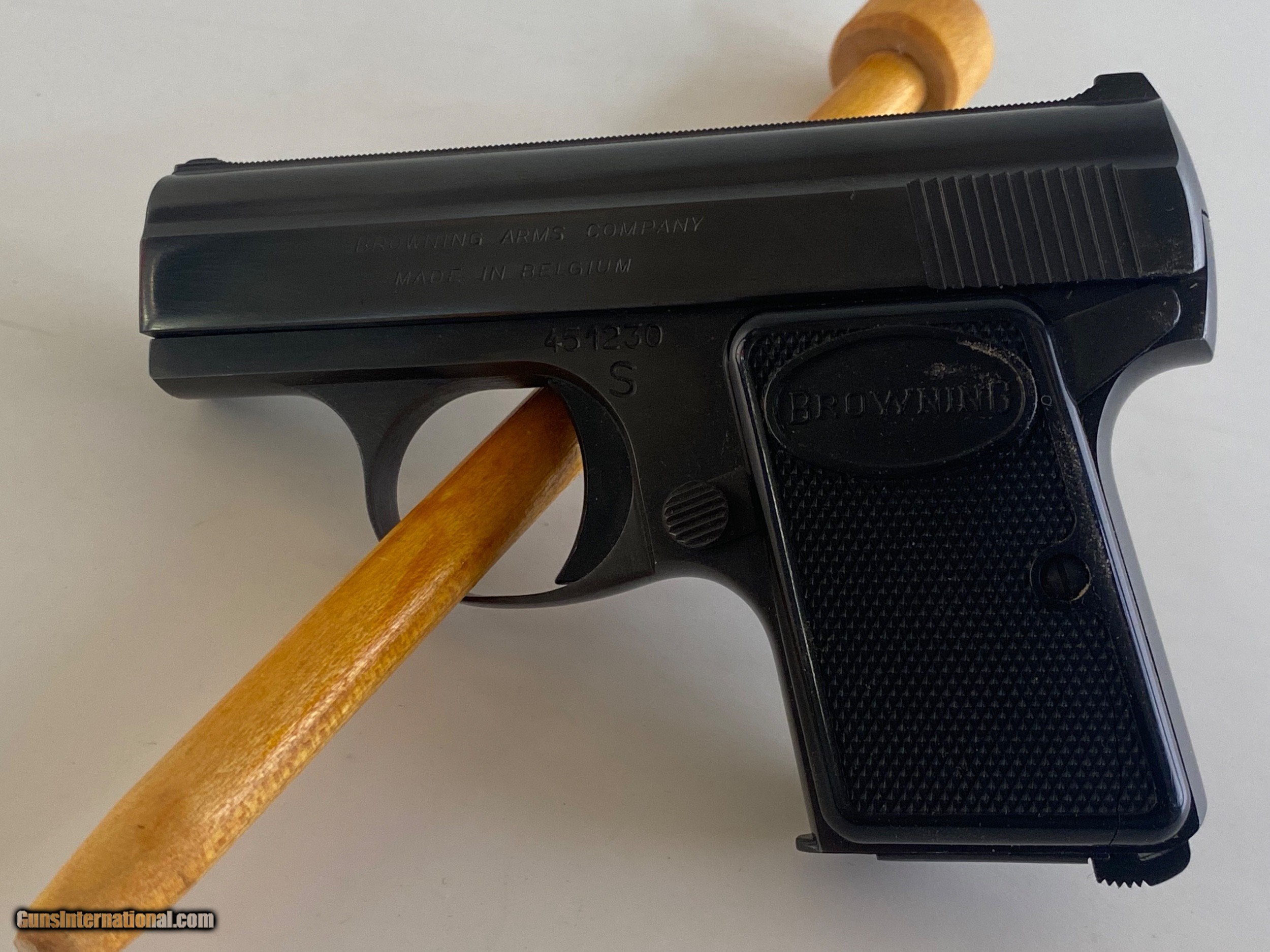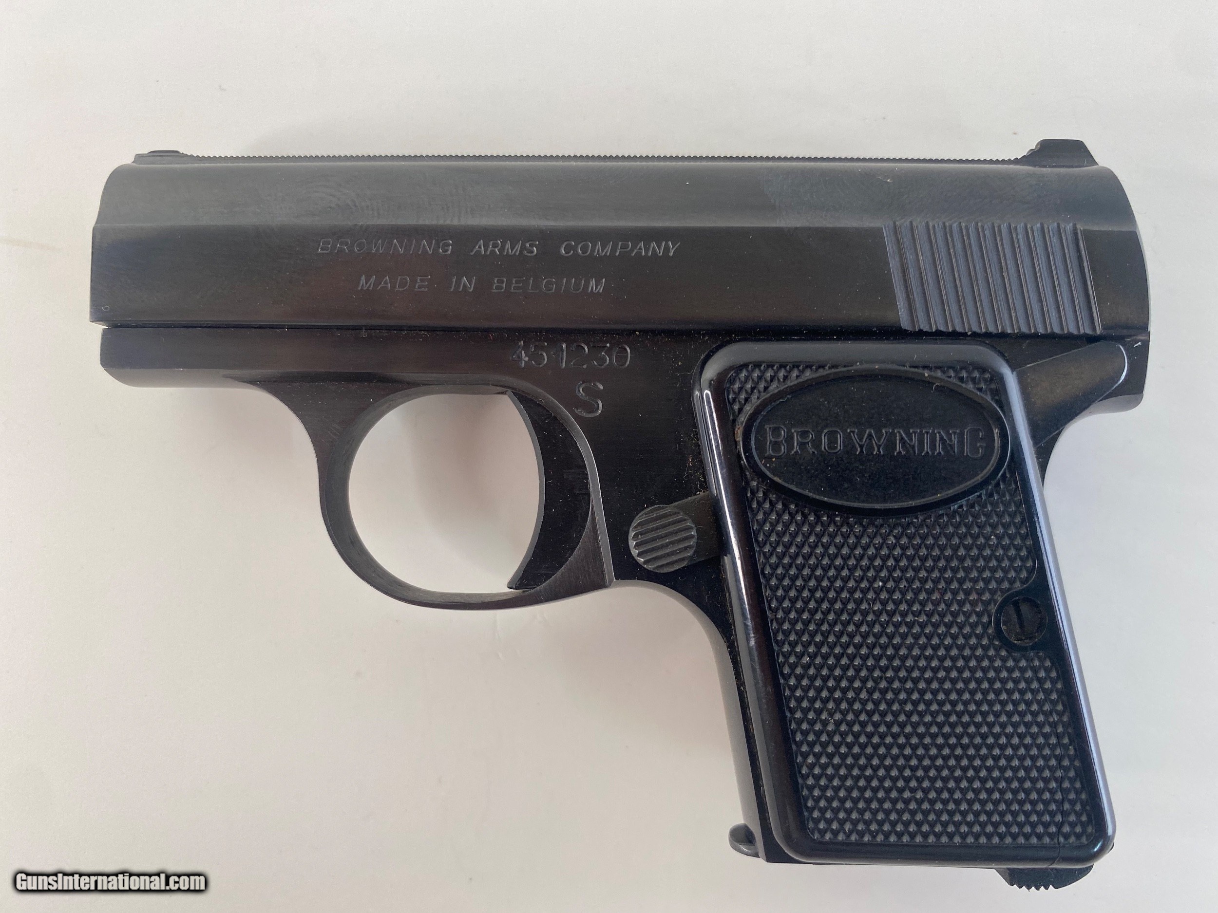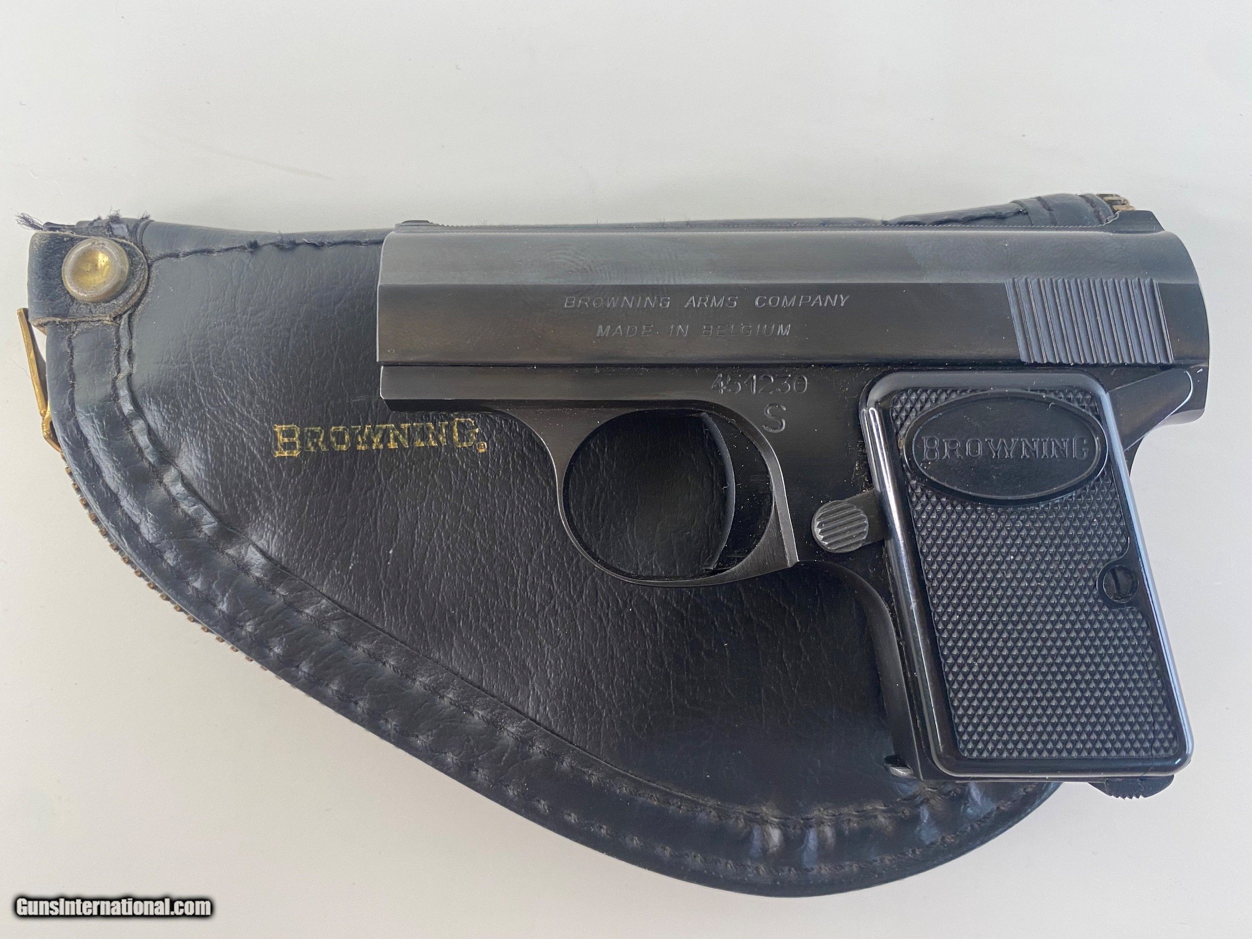 Description: Sale pending. Very nice 1968 Browning Baby 25 in excellent condition. Includes Browning pouch. SOLD Handgun Caliber: .25 ACP (6.35mm Browning, 6.35×16mmSR) |