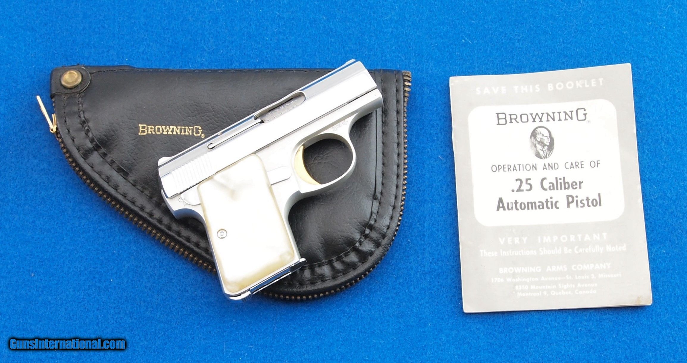 Browning Baby Belgium Nickel MFG 1967 .25 ACP WCase