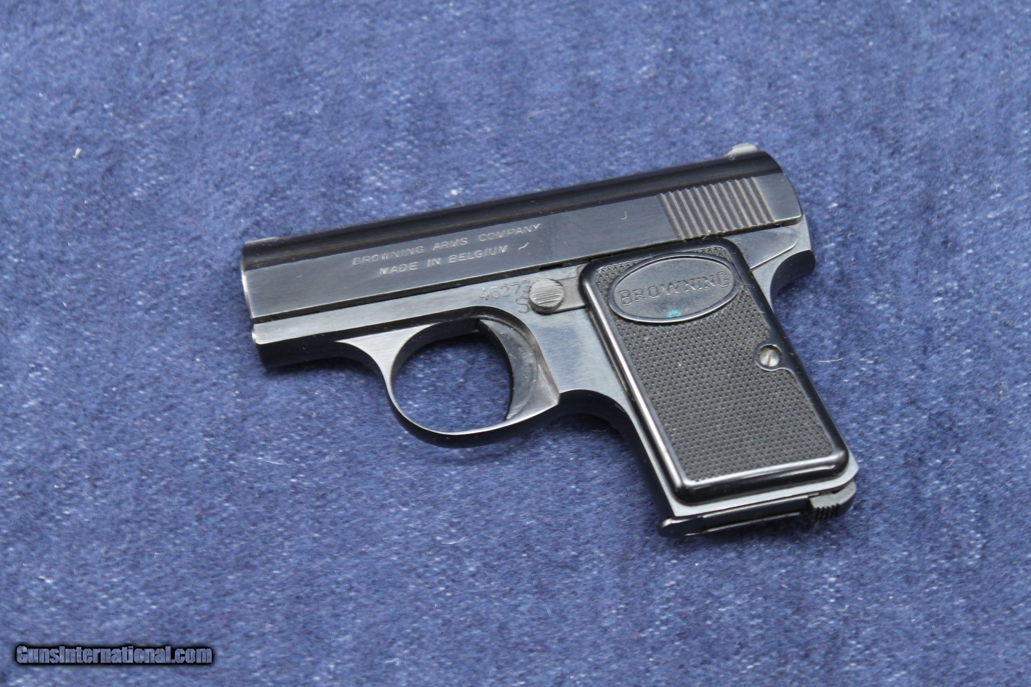 Description: Guns Listing ID: 536506 Super clean Baby Browning 25 ACP SN 462738, one magazine and original Browning Pouch. SOLD Manufacturer: BROWNING Model: Baby Browning Caliber Info: .25 ACP Condition: Used - Non-Certified Barrels: 2.0 BARREL Action: SEMI AUTOMATIC Finish: blue |