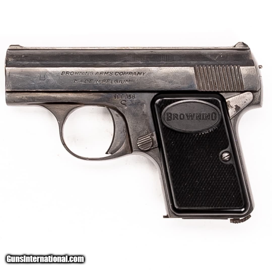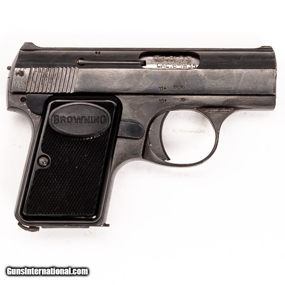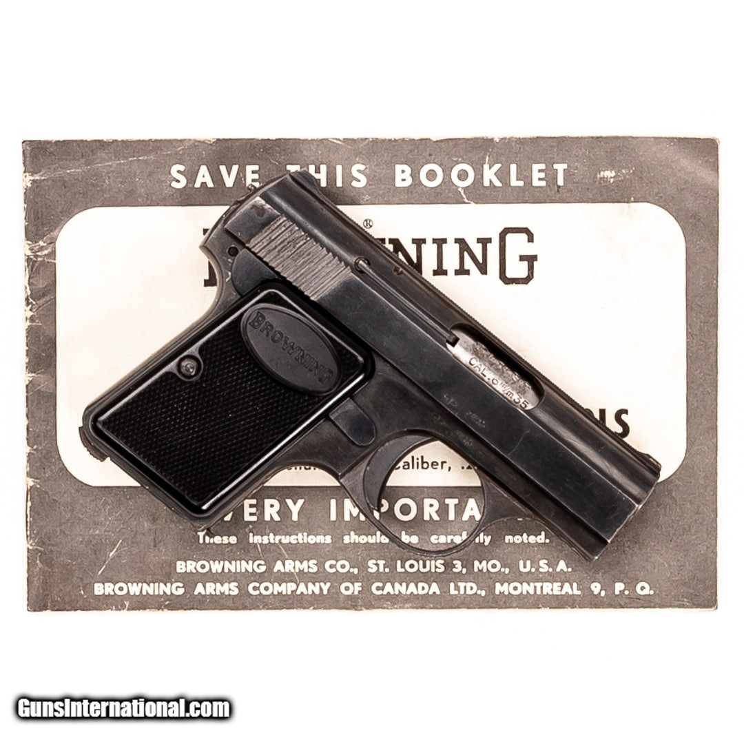 Description: Guns Listing ID: 327986 This \"Baby Browning\" is a Belgian made semi auto handgun chambered in 25 ACP. It was first designed in 1927 and was the ideal conceal carry sidearm at the time. This is a great piece of firearms history that‚‚s cool to own and fun to shoot. Serial number: 199056 Made in Belgium. There is finish wear and a couple of minor rust spots. 1-6 round magazine, the original box, and a manual are included SOLD Curio/Relic: Yes Manufacturer: BROWNING Model: "BABY BROWNING Caliber Info: .25 ACP Condition: Used - Certified Barrels: 2 BARREL Finish: BLUE |
