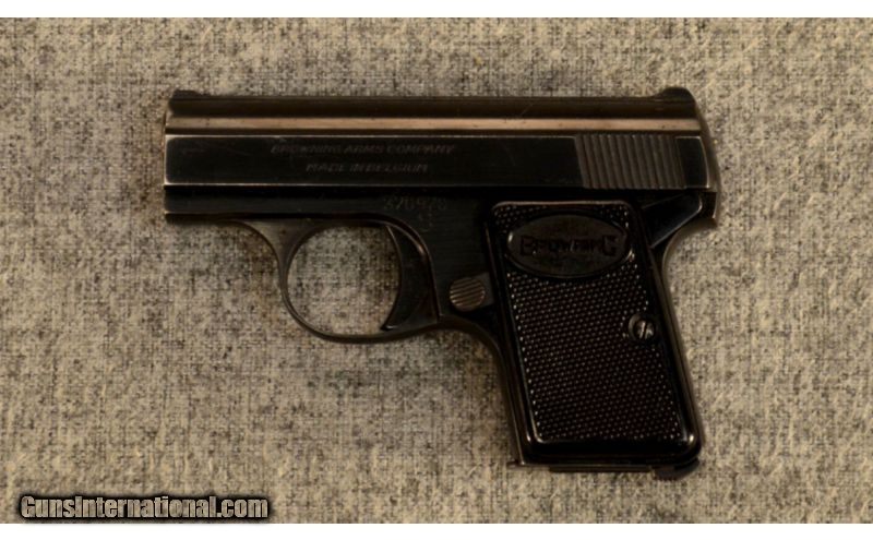 Description: This is a pre-owned Browning "Baby" model automatic in .25 ACP SOLD Curio/Relic: Yes Manufacturer: 1967 Caliber Info: .25 ACP Metal Condition: Quite good overall with a number of small scratches and light freckling on the backstrap and slide Wood Condition: Very good with some handling marks Bore Condition: Clean with bright lands Barrels: 2 Triggers: SA Stock: Checkered plastic Weight: 0.5 Lb. Sights: Blade front, U-notch rear Item Location: Glendale, AZ |
