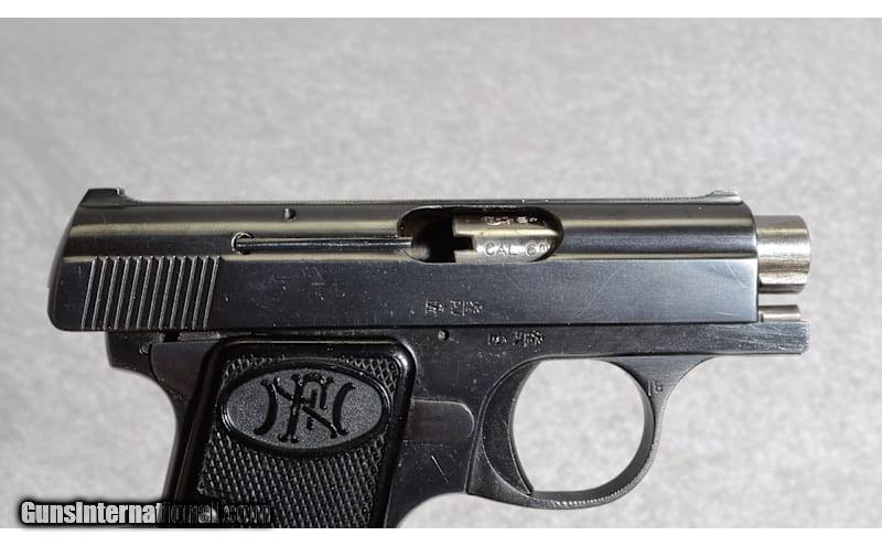Description: The Browning Baby .25 ACP is a small, blowback-operated semi-automatic pistol designed by Dieudonné Saive and based on John Browning's 1908 Vest Pocket pistol. Manufactured from 1931 until 1979, with a total of about 550,000 units were made. It is chambered in .25 ACP (6.35x15 mm) and features a six-round magazine capacity. The pistol is a striker-fired, single action, blowback mechanism, and the manual thumb-operated safety locks the slide in the closed position. The Baby Browning is known for its small size, reliability, and high quality of manufacture, making it a popular choice for concealed carry and personal protection. Popular for its compact size and reliability, it was sold under the Browning banner until the Gun Control Act of 1968 banned its importation into the U.S.. The Baby Browning is known for its aesthetic appeal and practicality, making it a classic among pocket pistols. .25 ACP SOLD Chambers: Semi-Auto Metal Condition: Very Good Bore Condition: Very Good Barrels: 2 1/8 Inch Barrel Weight: 7/8 lbs. Sights: Front Blade Sight with Fixed Notched Rear Sight Item Location: Tulalip, WA |