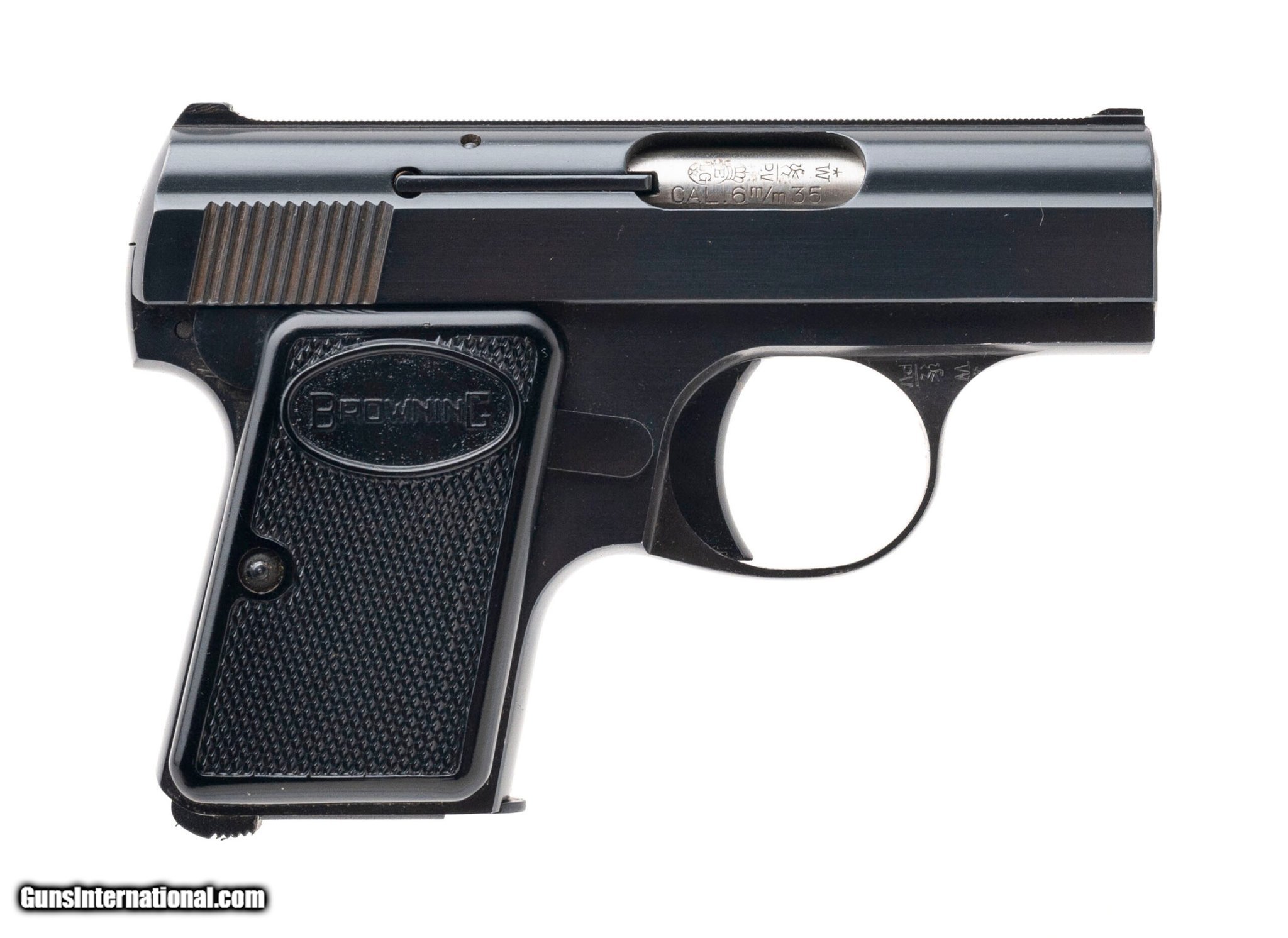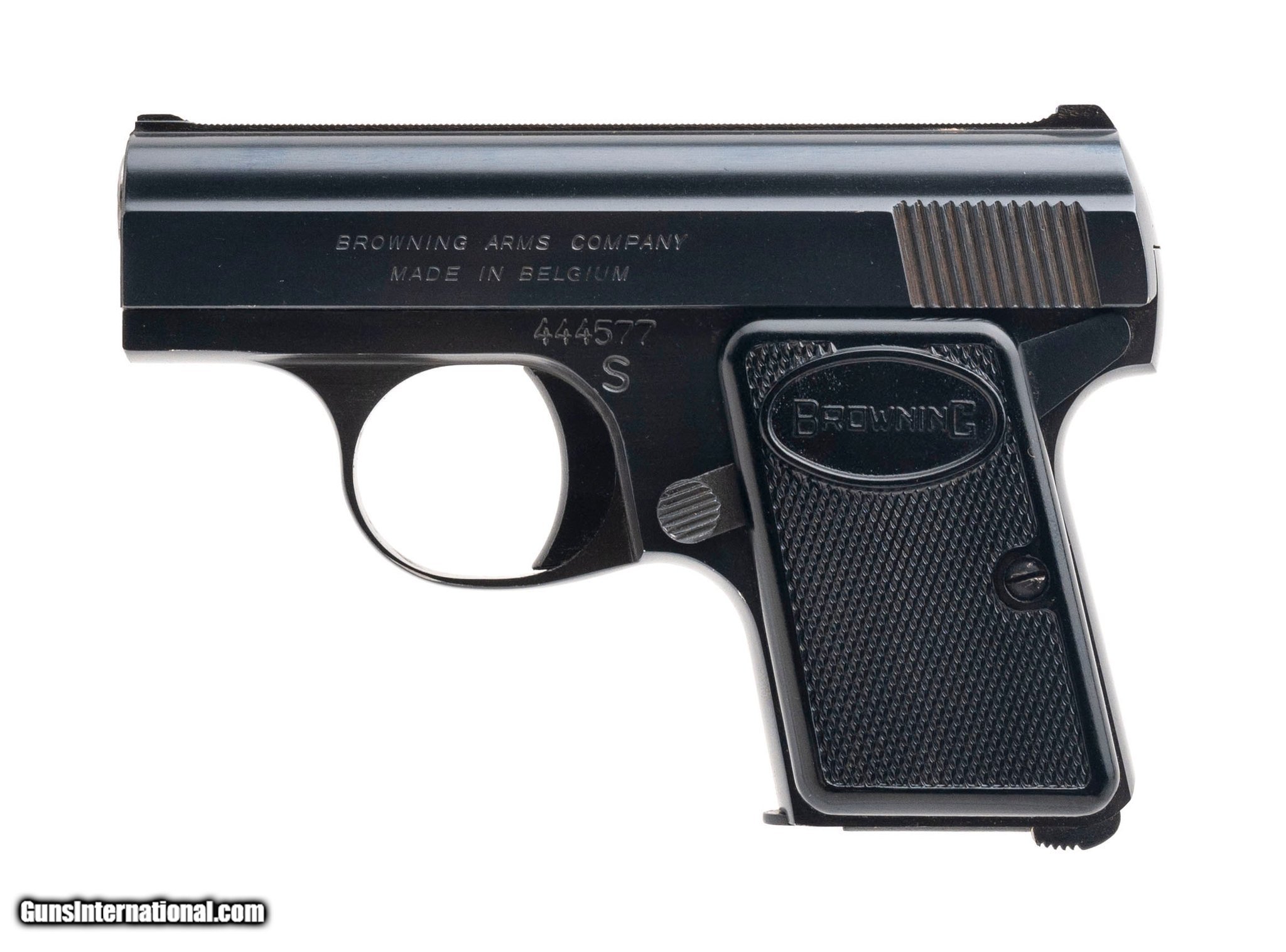 Description: Guns Listing ID: 505205 SN: 444577. 1960‚‚s vintage .25 ACP with a 2.1\" barrel. Belgian made pocket pistol in excellent condition with pouch and instruction manual SOLD Manufacturer: BROWNING Model: Baby Pocket Pistol Caliber Info: .25 ACP Condition: Used - Non-Certified Barrels: 2.1 Action: SEMI AUTOMATIC Finish: blued |