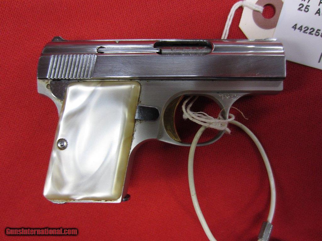 Description: Browning Belgium Baby Auto Nickel 25acp w/ Pouch -- Very good condition overall w/ Browning soft pouch. SOLD |
