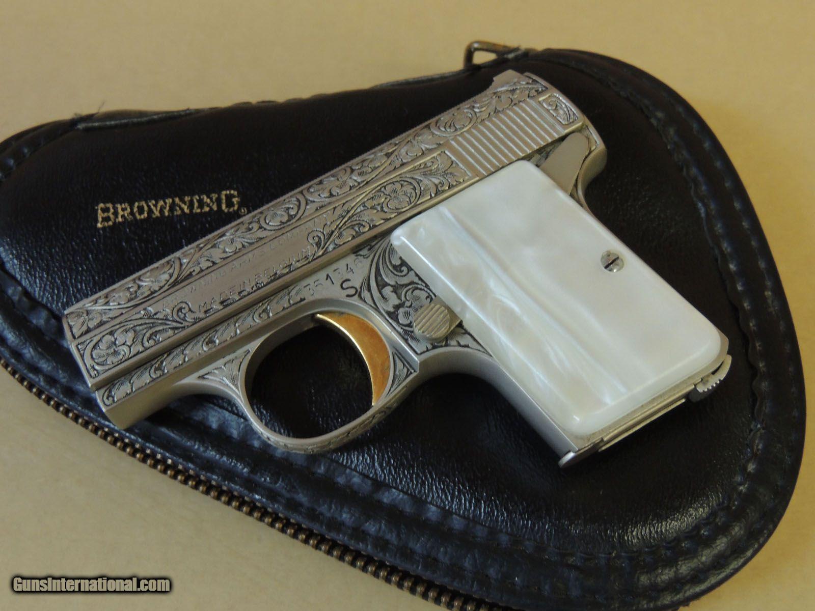 Description: BROWNING RENAISSANCE BABY .25 ACP PISTOL IN POUCH, BELGIAN MANUFACTURE CIRCA 1966, WITH THE CORRECT RENAISSANCE STYLE POUCH 99% CONDITION CURIO & RELIC ELIGIBLE $2199 ******* (PLEASE REFERENCE OUR INVENTORY NUMBER) (PAYMENT OPTIONS) (Postal Money Order) (Cashiers Checks) (Personal Checks (Item held until Check Cleared) ***(Layaway 120 days-(No Interest)-(Pay any way, any time you like over the term) -(Deposit required)*** (Credit Cards Visa or Master Card 3% fee added to total sale) (GA residents 7% sales Tax Applies) (FAX 888-597-1394) (BEST PHONE/TEXT 229-424-8450) (Shipping $35.00) SOLD |