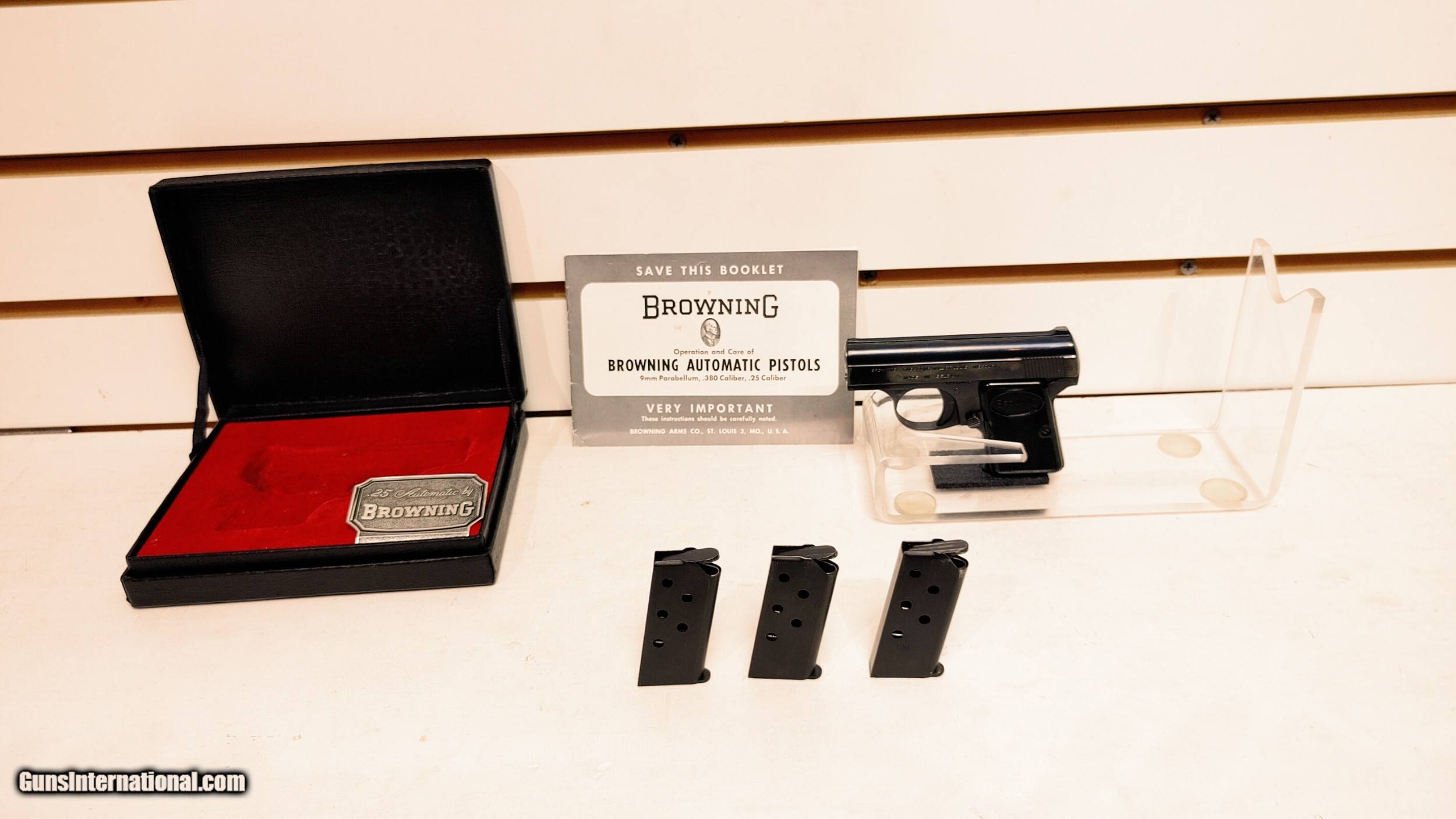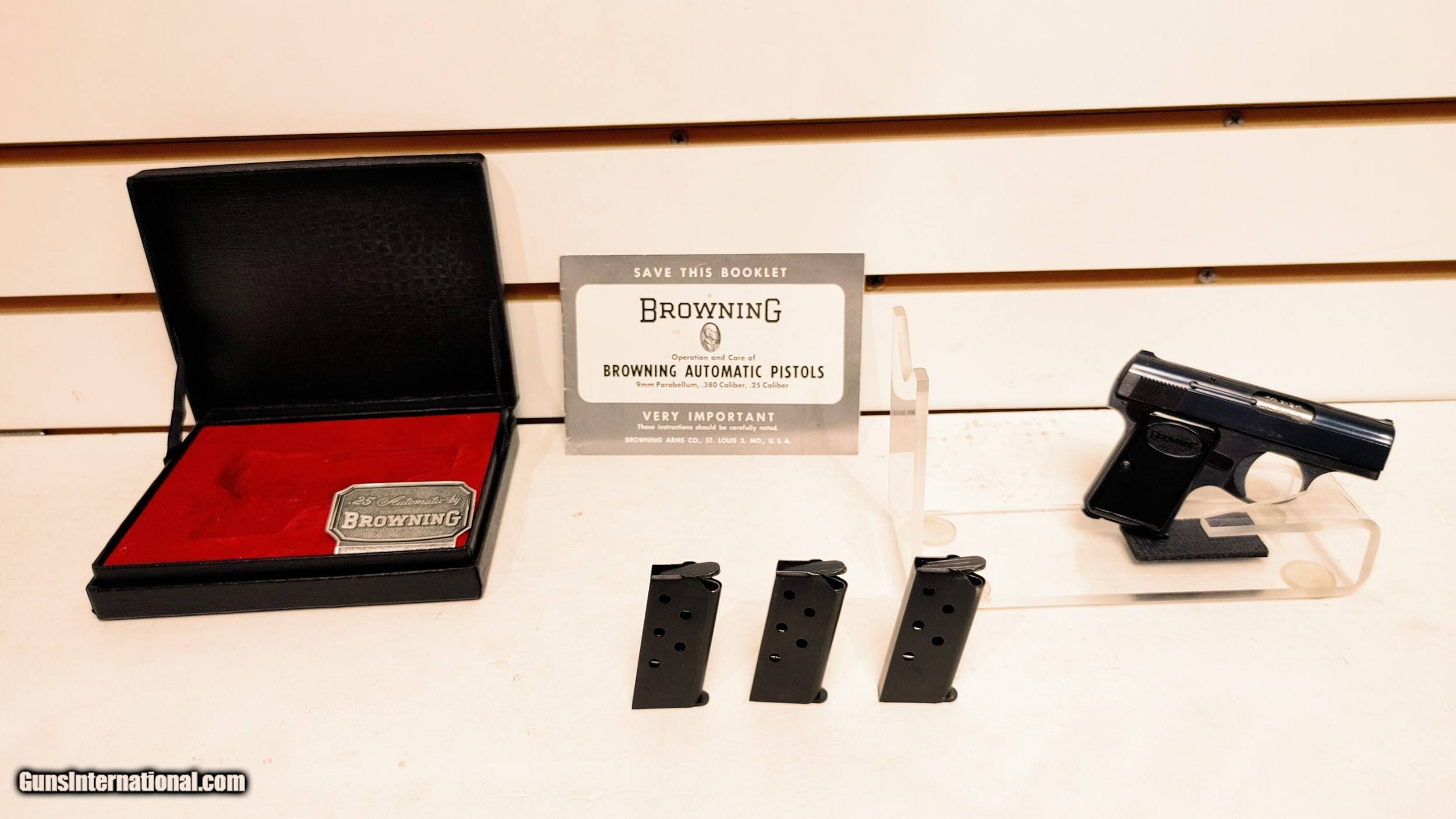 Browning Automatic Pistol .25 4 factory magazines velvet case very good condition