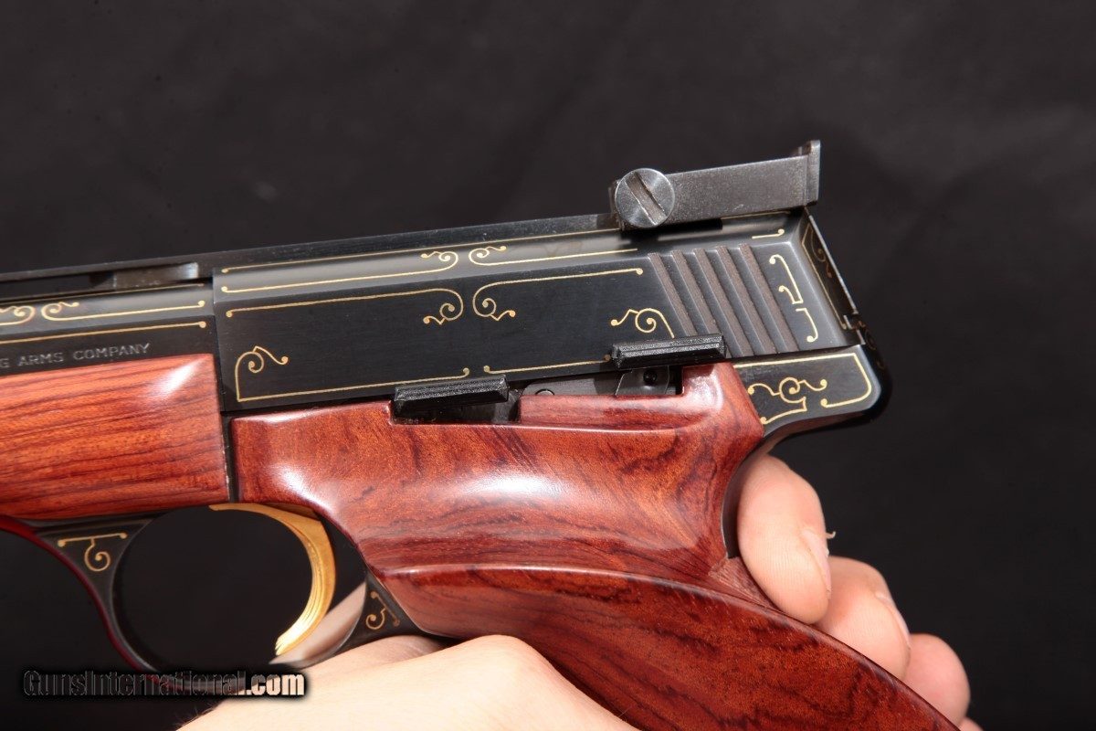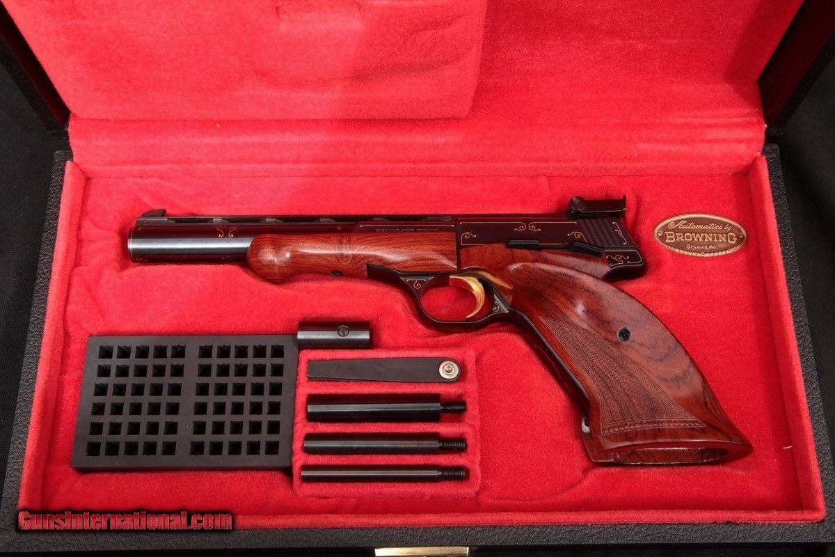 Description: BROWNING GOLD LINE MEDALIST WITH THE FACTORY ISSUED PRESENTATION CASE, WEIGHTS, AND TOOL. VIEW PICTURES FOR CONDITION AS THIS PISTOL IS CONSIDERED TO BE IN VERY HIGH AND COLLECTIBLE CONDITION. THE PICTURES ARE BORROWED FROM THE PREVIOUS OWNER FROM WHOM I PURCHASED THE MEDALIST; COMES FROM A PERSONAL COLLECTION OF QUALITY RIMFIRES. SHIPS INSURED TO CONUS FOR $50 FROM A NON-FFL. THREE DAY NON-FIRING AND NON-DISASSEMBLING PERIOD WHERE BUYER PAYS RETURN SHIPPING AND 10% RELIST AND HANDLING FEE. SOLD |