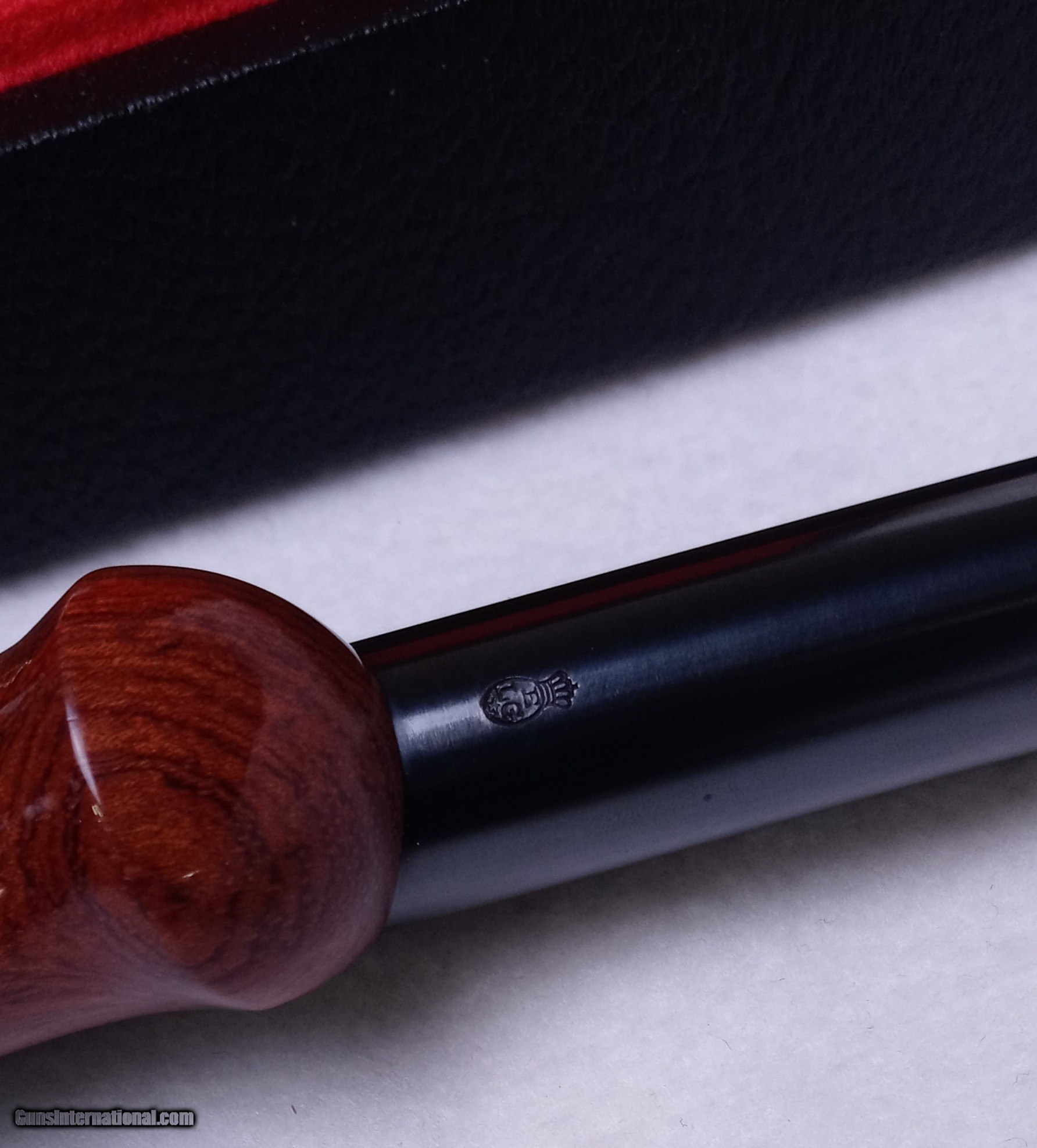 Made in Belgium, heavy barrel, beautiful checkered wood grip and smooth forearm, and a blued finish that is in very good condition. These pistols were only produced in the period 1964-1975 in Belgium by Fabrique Nationale (FN). This firearm was imported from Canada, and bears a discreet import mark. Please see photos for condition, and feel free to contact us with any questions or offers. Payment Methods: Payment can be made by Cashier’s Check (ships upon receipt of payment). For most purchases we can also accept VISA, MasterCard, American Express and Discover cards, subject to a 3% charge. On some purchases we will accept a Personal Check, subject to prior approval, with an additional hold of 7-10 business days to fully clear our bank. Sales Policy: Any questions or concerns you may have should be resolved by contacting us before committing to purchase. Some items may not be legal in every state, thus it is up to you, the buyer, to know and comply with your local and state laws. While we do our best to visually inspect all firearms, the Buyer is responsible for determining if a used gun is safe to shoot. The firearms offered have not been test fired, and we recommend that you should have any used firearm inspected by a gunsmith prior to shooting. We strive to provide top quality service along with fair and competitive prices. All of the information provided on each firearm is as accurate as possible. SOLD Curio/Relic: Yes Handgun Caliber: .22 Long Rifle Manufacturer: Browning Arms Model: Medalist Serial Number: 33587T3 Condition: Fine Metal Condition: Good Wood Condition: Good Bore Condition: Good Action: Semi Auto |