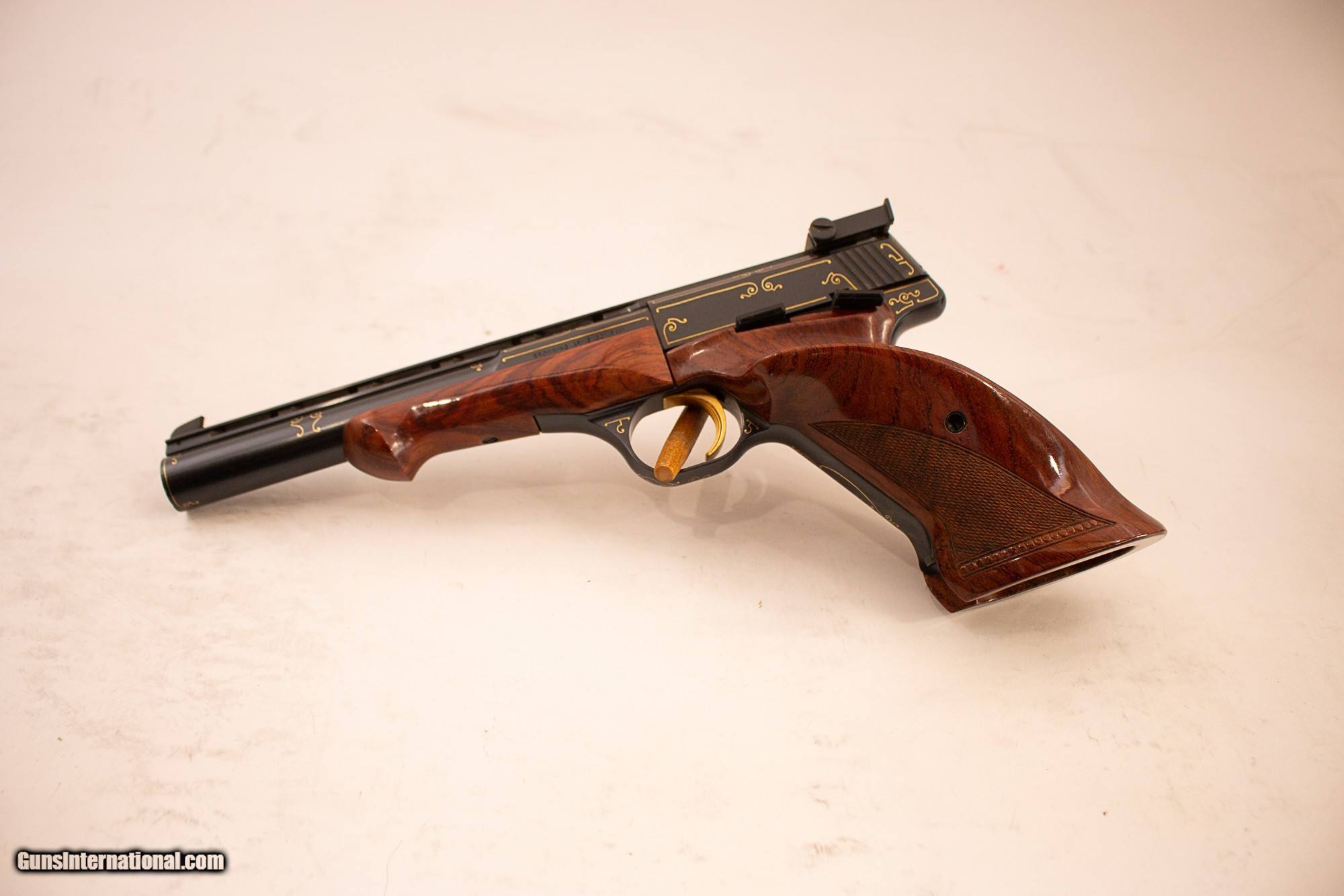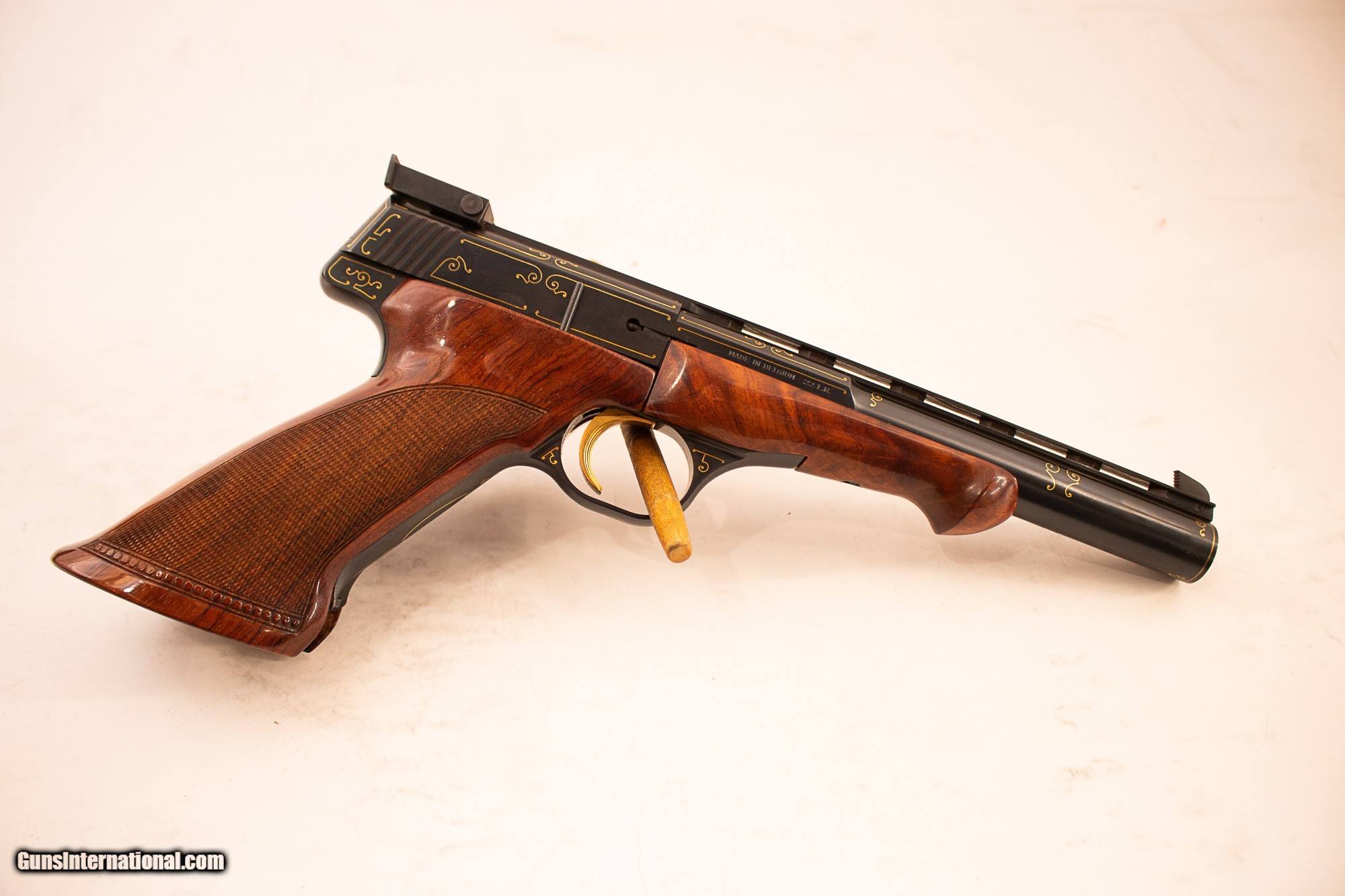 Description: MADE IN BELGIUM IN 1963. UNFIRED WITH FACTOR LETTER. INCLUDES CASE, WEIGHTS, KEY, AMMO BLOCK AND SCREWDRIVER. PLEASE ADD $50 FOR SHIPPING. SOLD Curio/Relic: Yes |