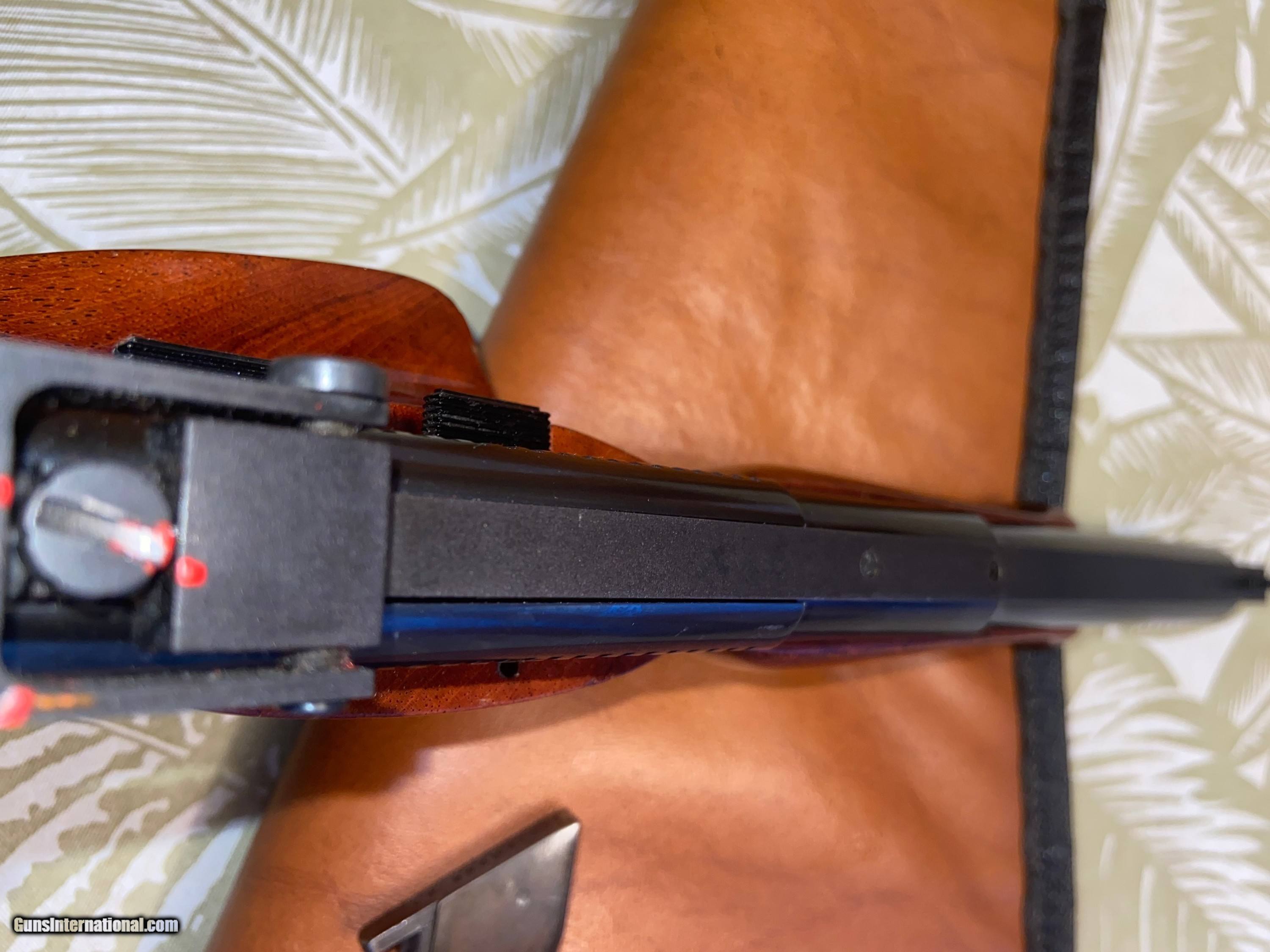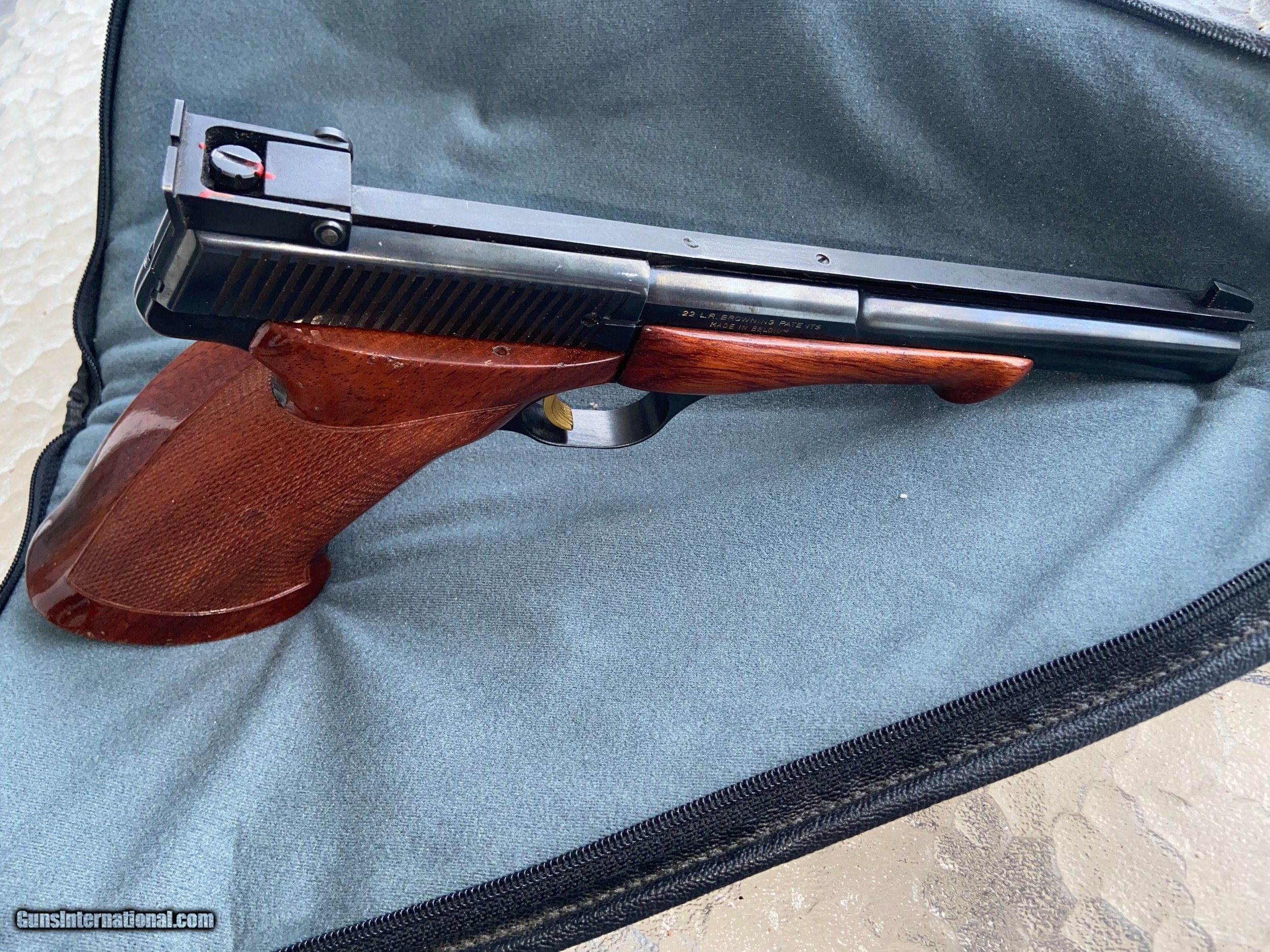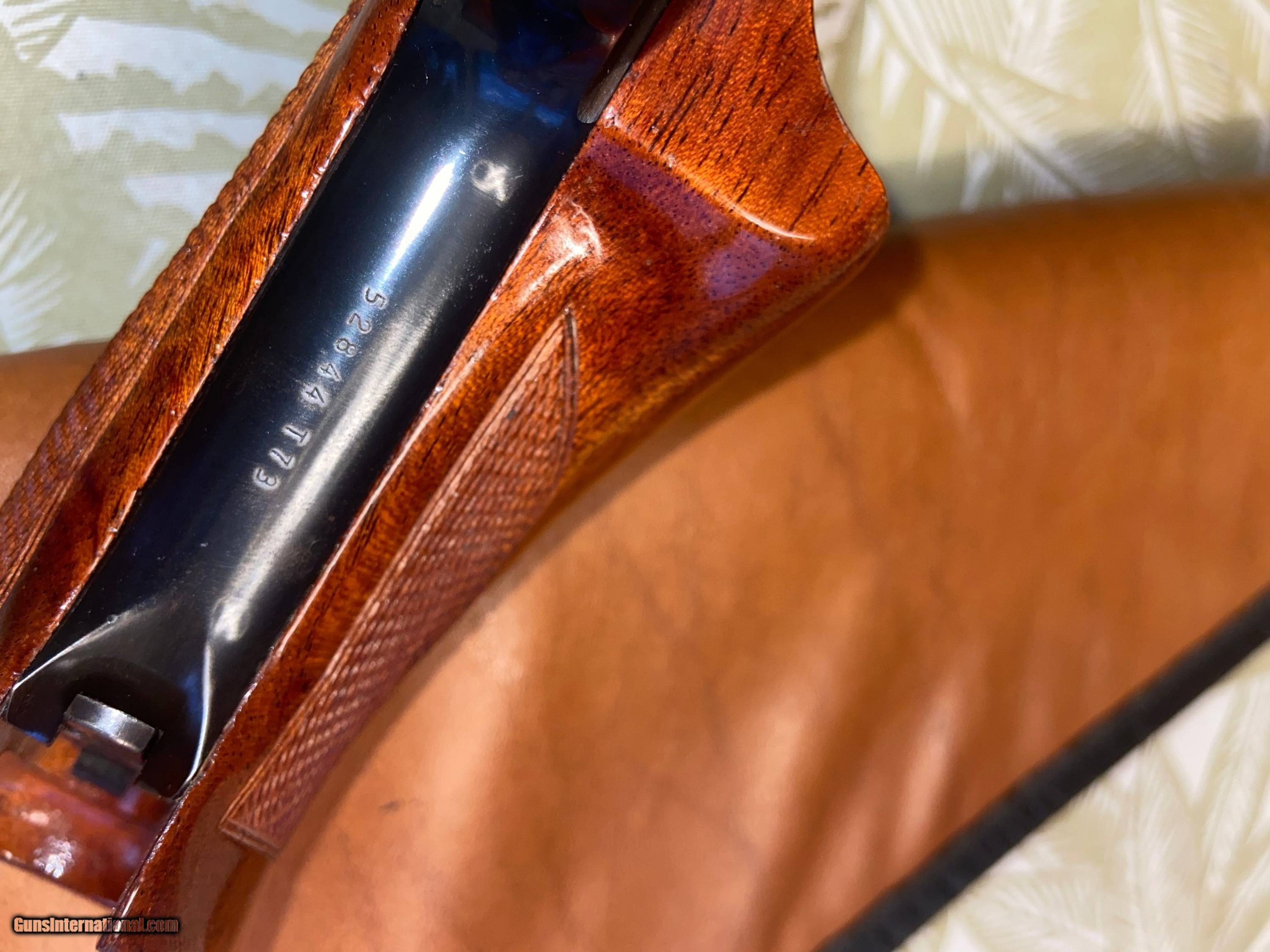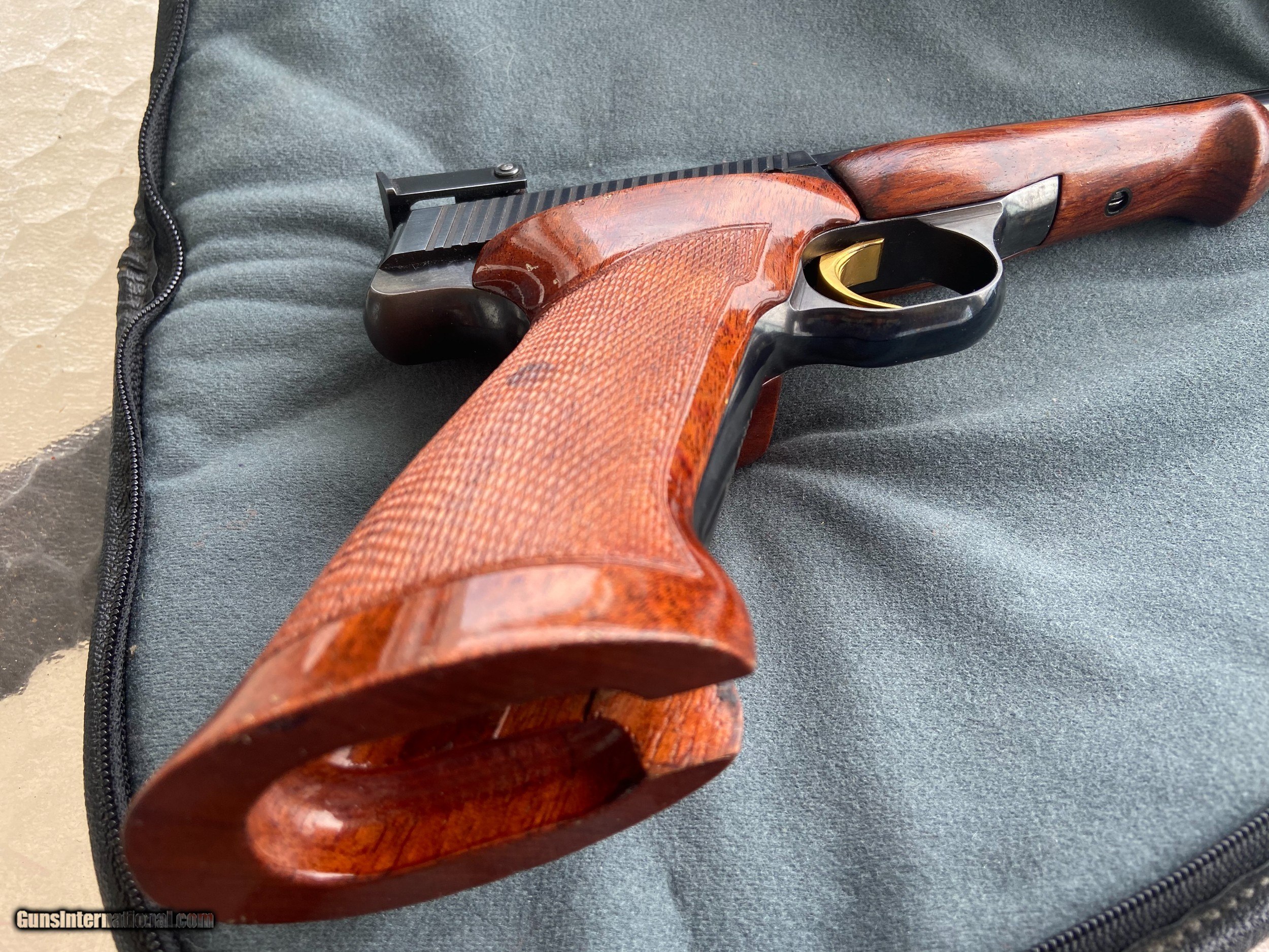 Description: FOR SALE IS A BROWNING ARMS, Belgium made. MEDALIST- TARGET PISTOL IN .22LR CALIBER. THE PISTOL FEATURES A 6 3/4 IN. HEAVY BARREL WITH VENT RIB. THE BORE IS IN MINT LIKE NEW CONDITION. GRIPS ARE FANTASTIC Beautiful polished WALNUT WITH CHECKERING & thumb grip. Gun has adjustable sights. THE BLUE FINISH IS EXCELLENT. THE ORIGINAL MAGAZINE IS PRESENT. SERIAL NUMBER IS -53844T73. Gold TRIGGER IS VERY CRISP AND LIGHT. THIS IS A VERY FINE 1970"S BELGIUM BROWNING PISTOL. IN LIKE NEW CONDITION. Comes with extra original clip and soft carry bag. QUESTIONS call Sandy 305 342 2768 There is a 3 DAY EXAM PERIOD, FFL REQUIRED FOR TRANSFERS. SOLD Manufacturer: Browning Model: Medalist Serial Number: 52844T73 Barrel Length: 6 3/4 Condition: Very Very Nice Metal Condition: Very very nice Wood Condition: very very nice Bore Condition: Verry very nice Sights: adjustable |