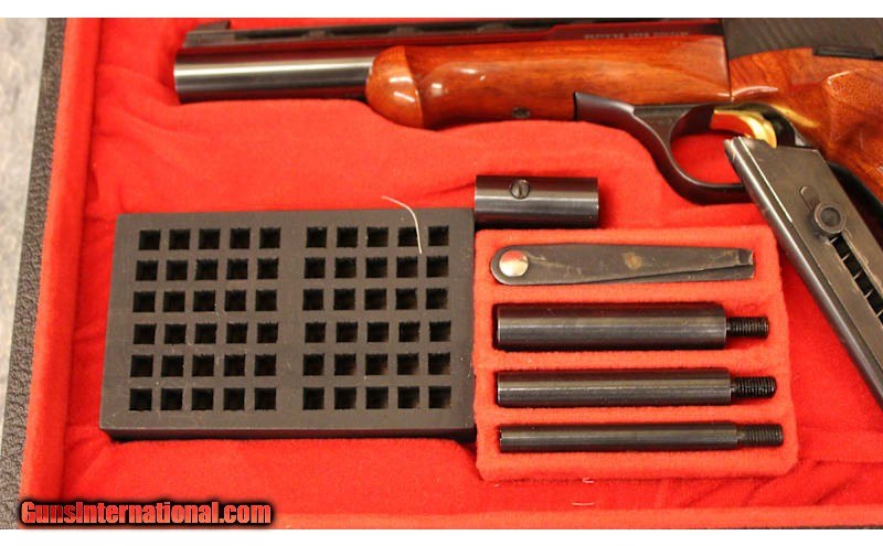 Description: Locking case, soft case, 2 magazines, manual, original grips, counterbalance and weights .22 Long Rifle SOLD Barrels: 6.5 Weight: 3 lbs Item Location: Gurnee, IL |