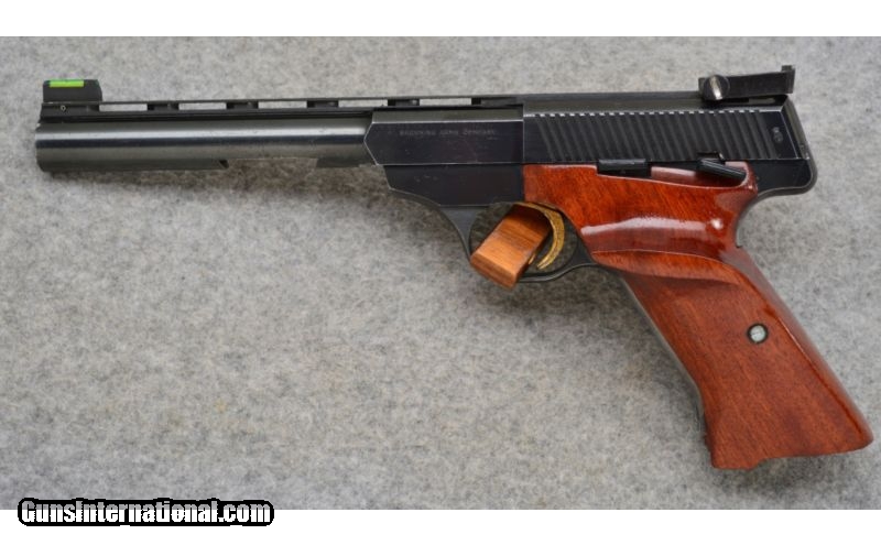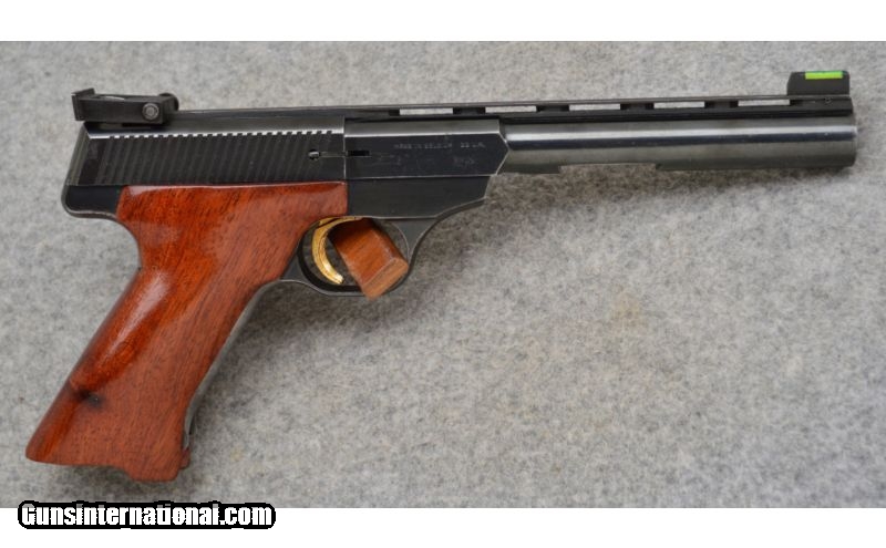 Description: Good condition overall with handling wear. Manufactured in Belgium with a 10 round capacity magazine. SOLD Manufacturer: Circa: 1968 Caliber Info: .22 Long Rifle Rimfire Metal Condition: Good Wood Condition: Good Bore Condition: Very Good Barrels: 6 3/4" Heavy Barrel with Ventilated Rib Triggers: Single Action Stock: Molded Wood Target Grips Weight: 2 lbs. 12 ozs. Sights: Adjustable Rear Target Sight with a Fiber Optic Front Sight Item Location: Hamburg, PA |